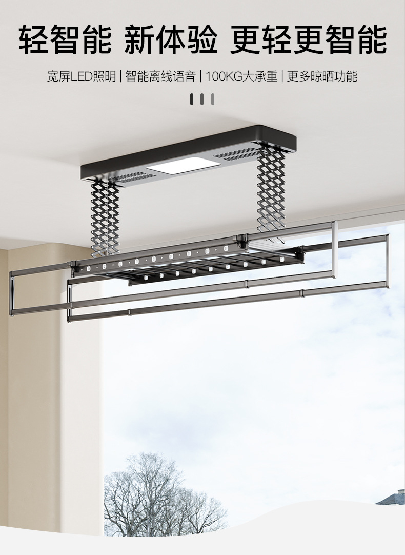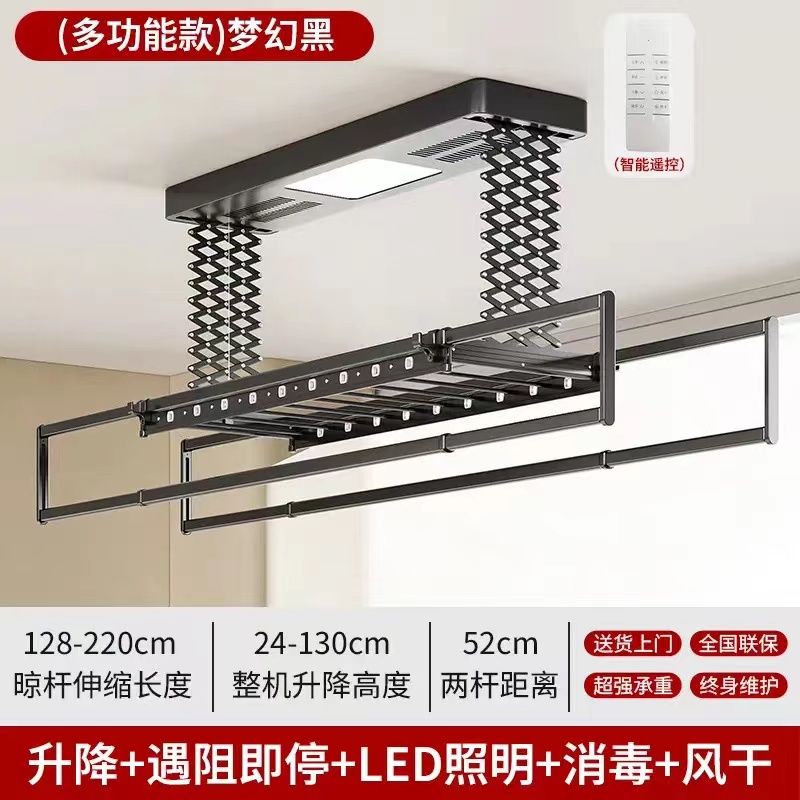 • [2열 가위걸이, 이중 내하중] 판타지 블랙 공기 건조 음성 모델 (음성 제어 + 공기 건조 + 소독 + 조명 + 리프팅 + 크로스바)