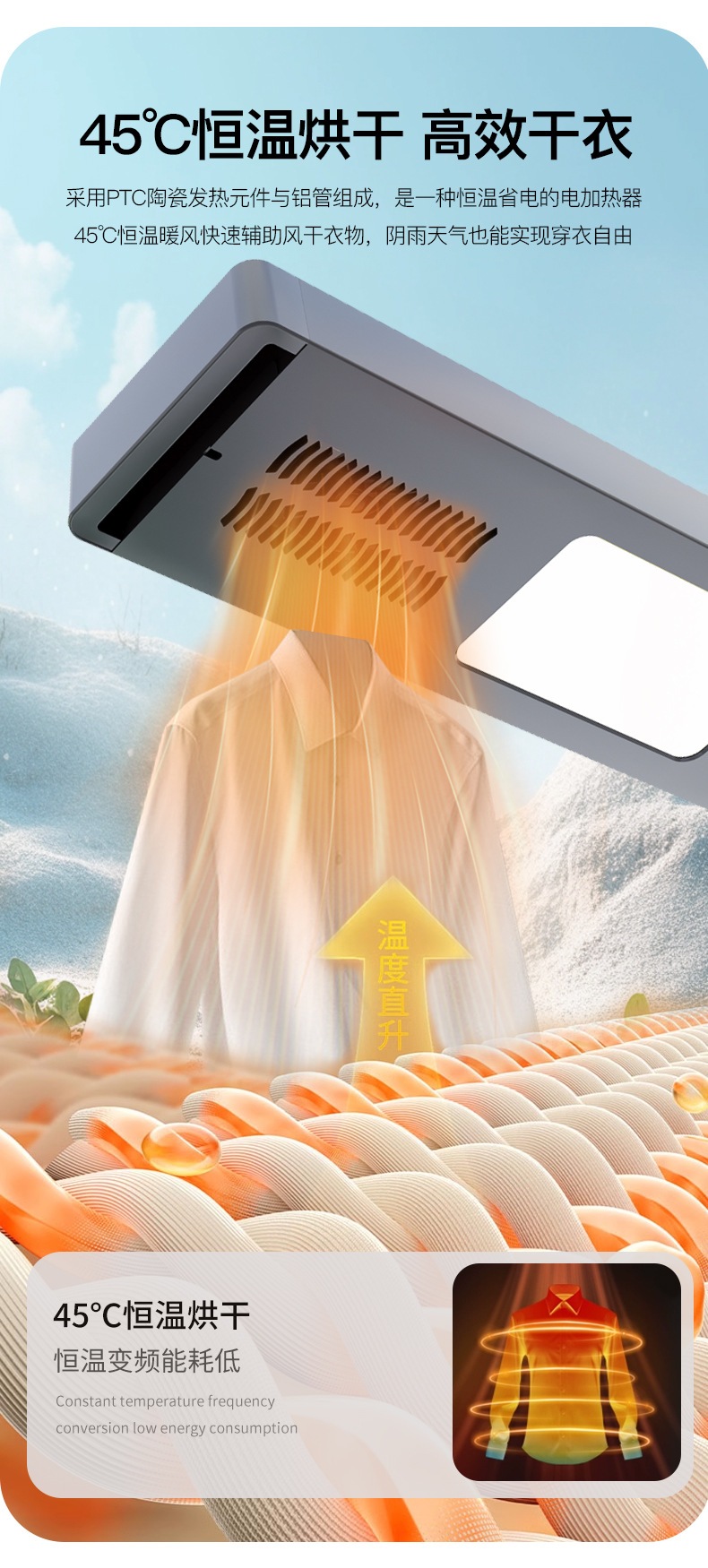 • 별이 빛나는 하늘 실버 공기 건조 음성 모델(음성 제어 + 공기 건조 + 소독 + 조명 + 리프팅 + 크로스바)