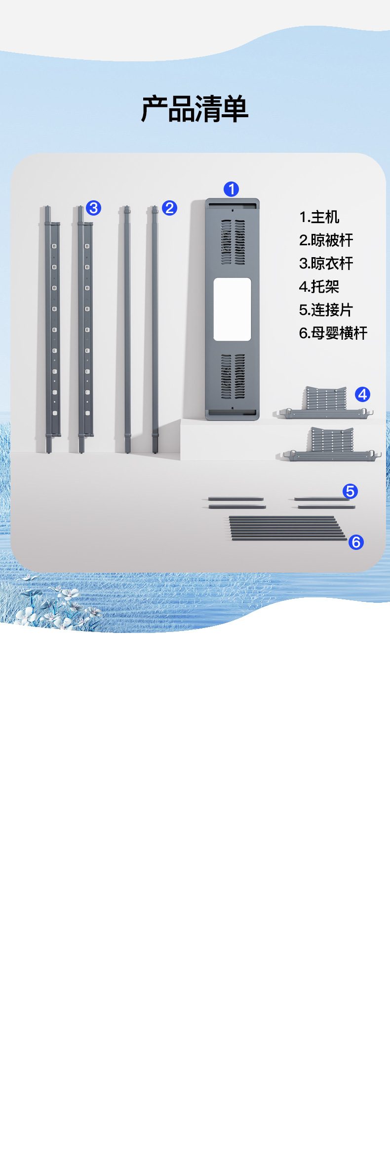 • [2열 가위걸이, 이중 내하중] 초승달 화이트의 모든 기능(음성 제어 + 건조 + 소독 + 조명 + 리프팅 + 크로스바)