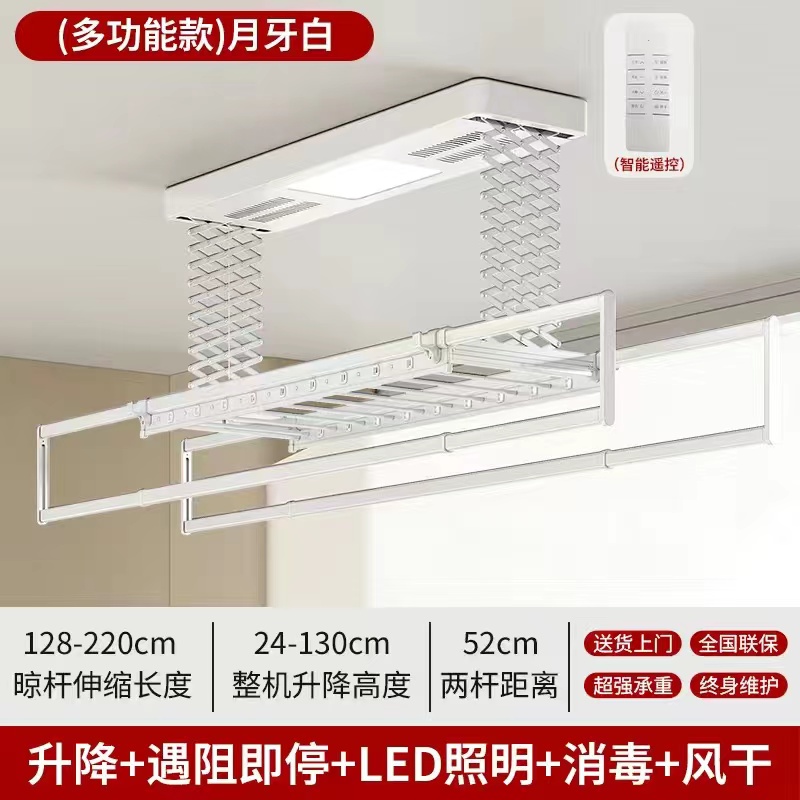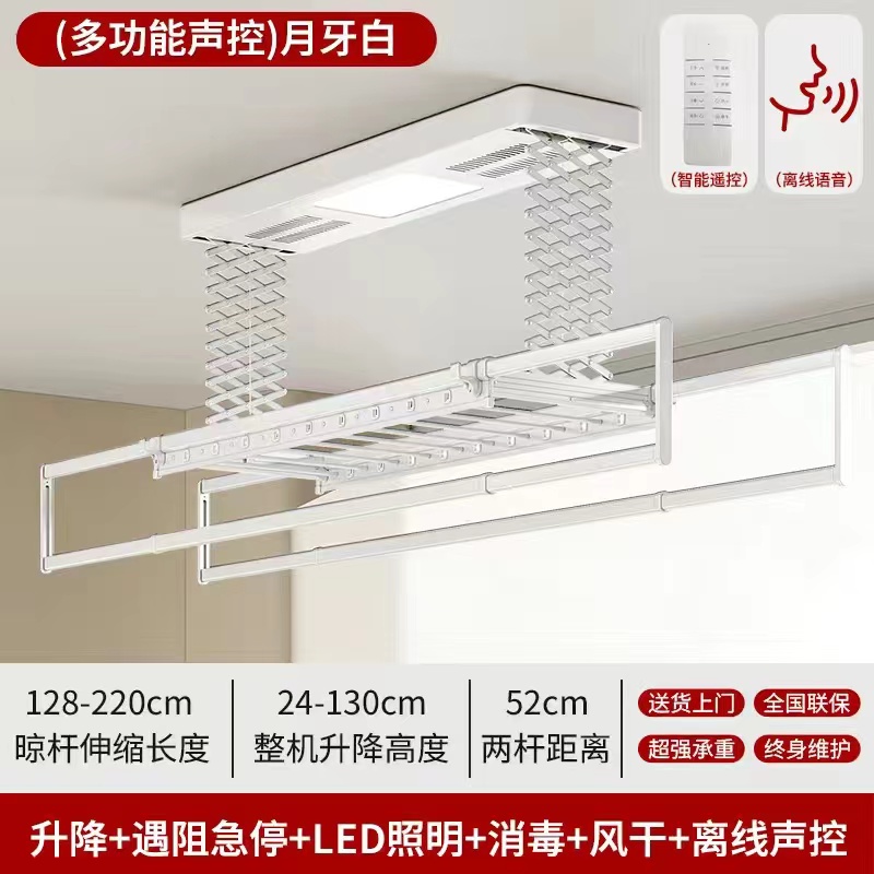 • [2열 가위걸이, 이중 내하중] 초승달 백색 공기 건조 음성 모델(음성 제어 + 공기 건조 + 소독 + 조명 + 리프팅 + 크로스바)