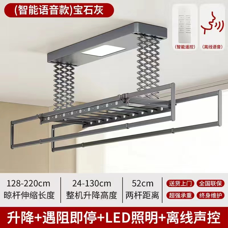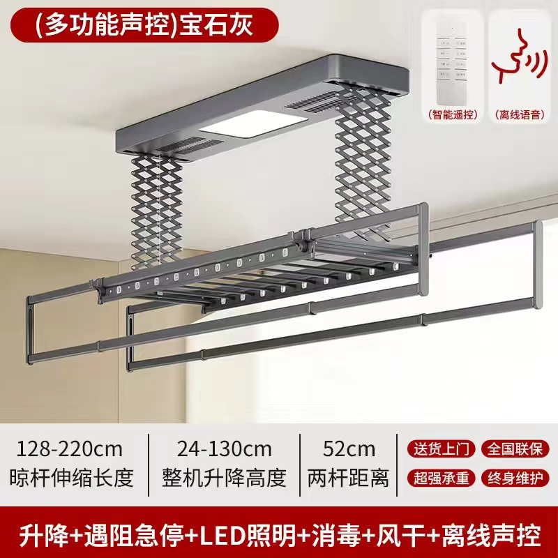 • [2열 가위걸이, 이중 내하중] 쥬얼 그레이 공기 건조 음성 모델 (음성 제어 + 공기 건조 + 소독 + 조명 + 리프팅 + 크로스바)