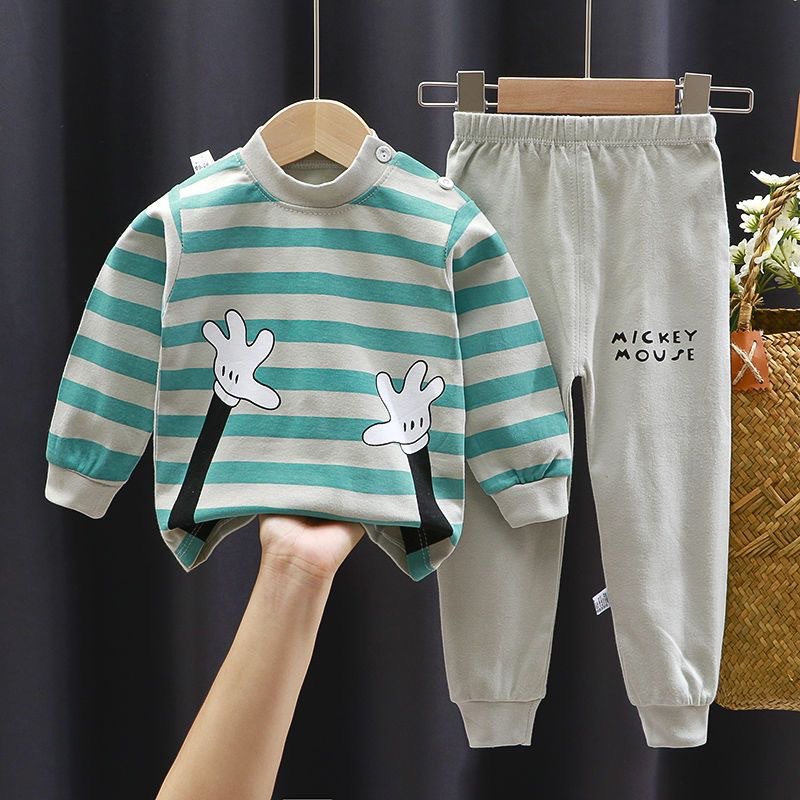 소년과 소녀의 잠옷 봄과 가을 순면 아기의 가을 옷과 바지 세트 어린이 속옷 순면 어린이 유아 유아 의류 남성용 의류