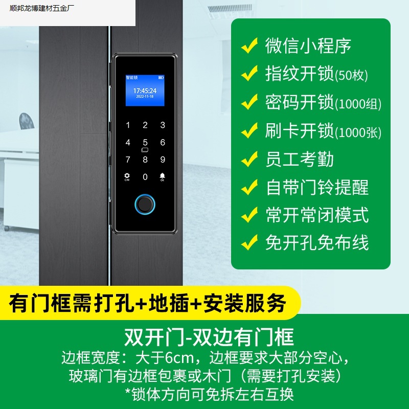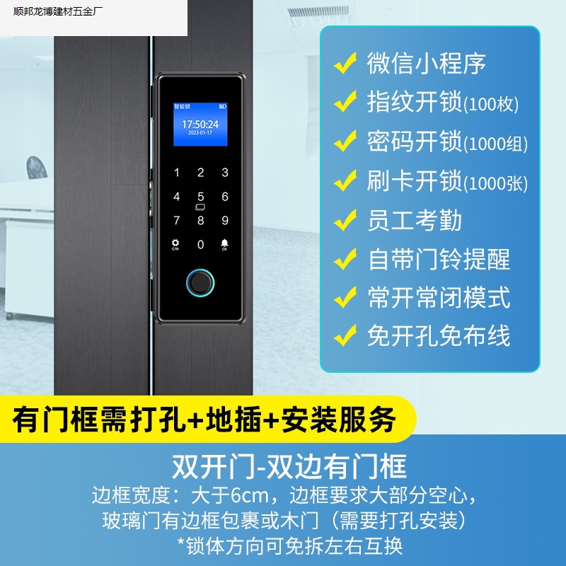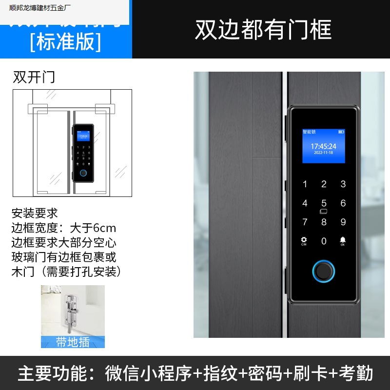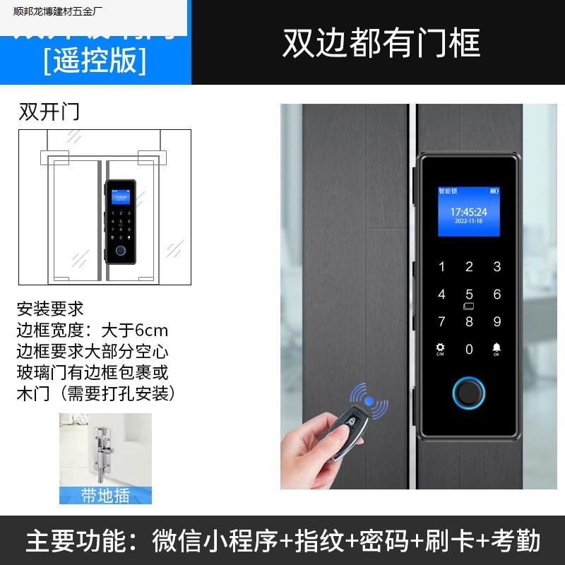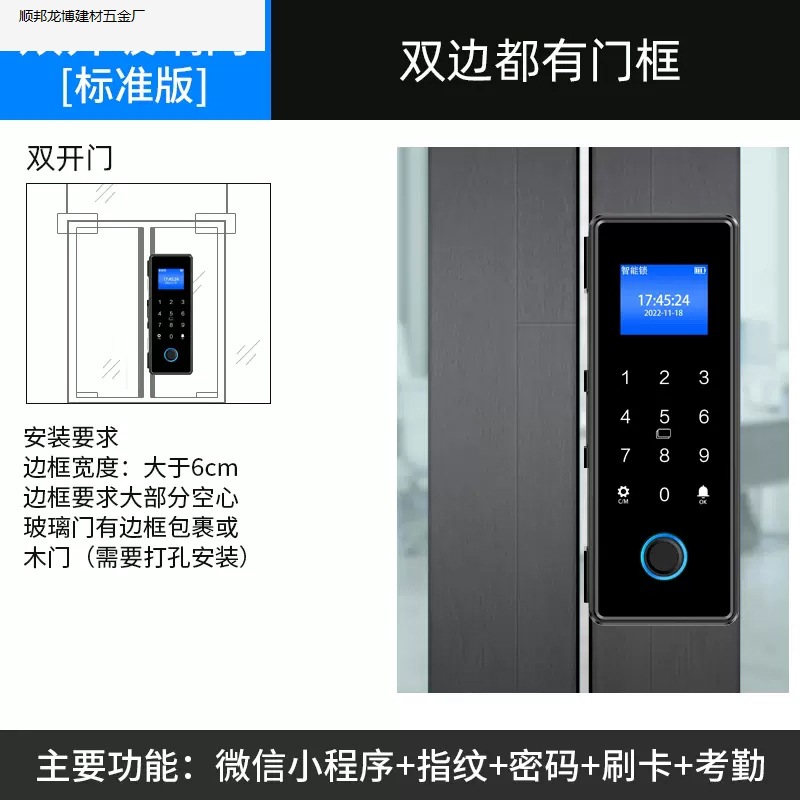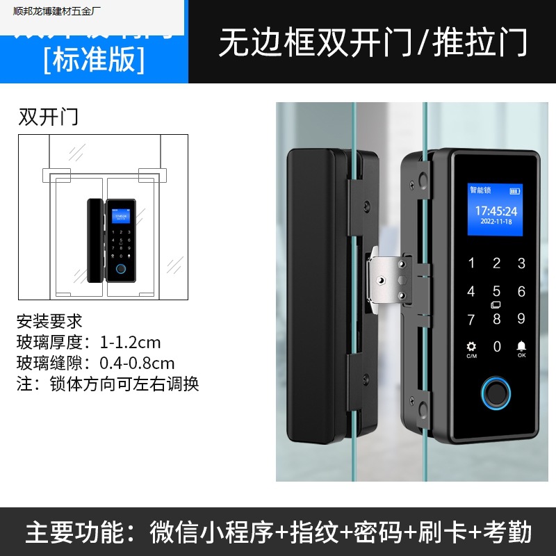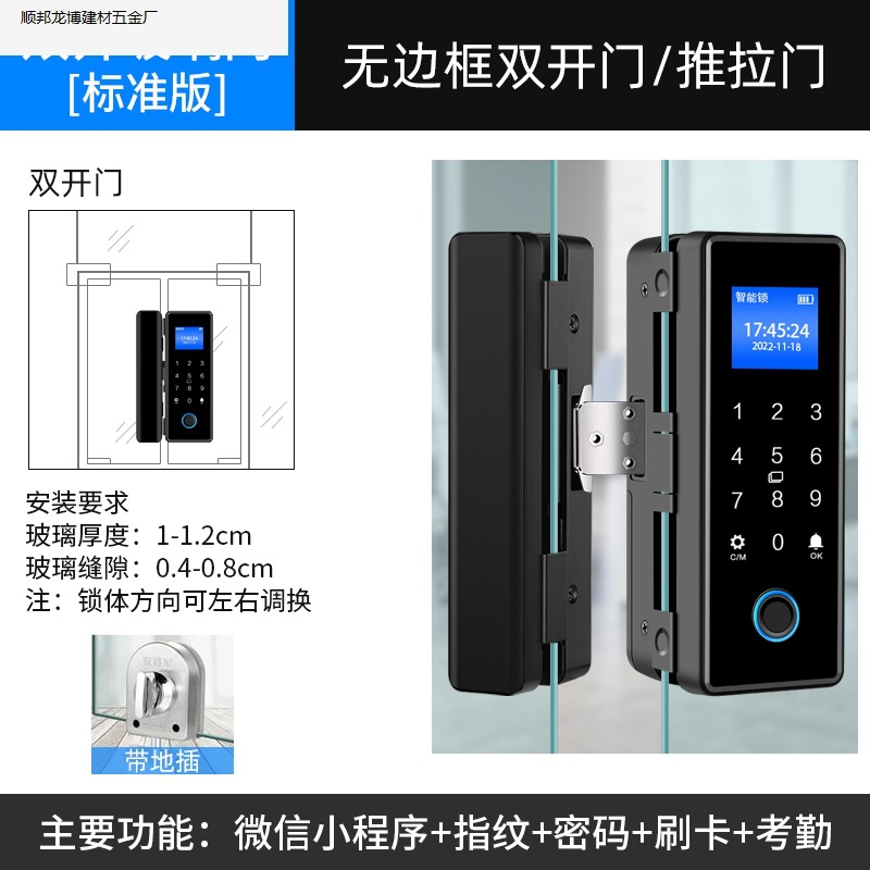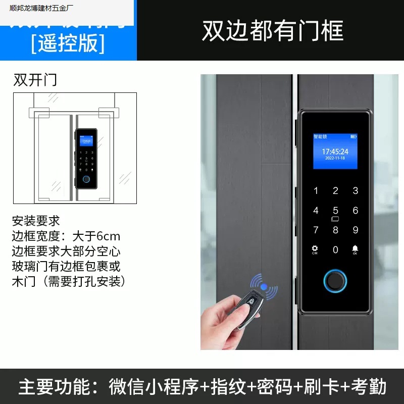 일반 유리 문 지문 잠금 더블 오픈 더블 도어 싱글 도어 오피스 회사 매장 액자 스마트 암호 도어 잠금