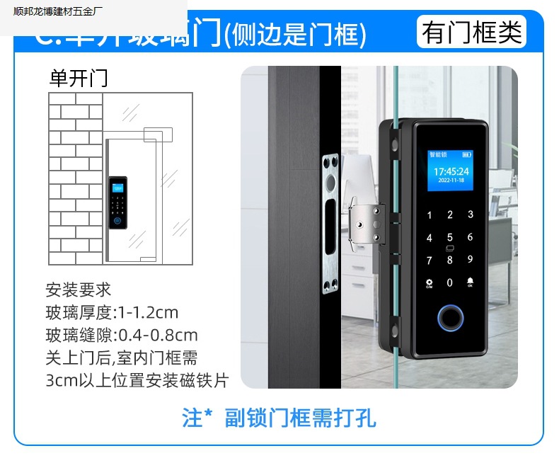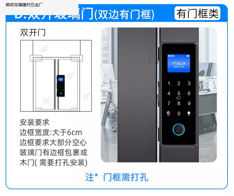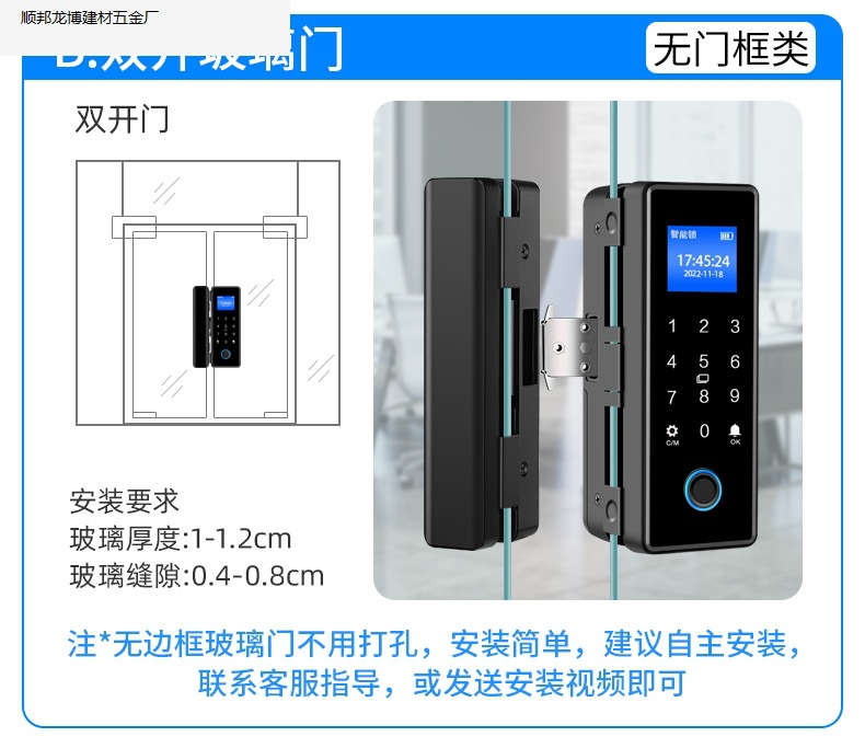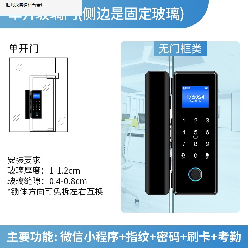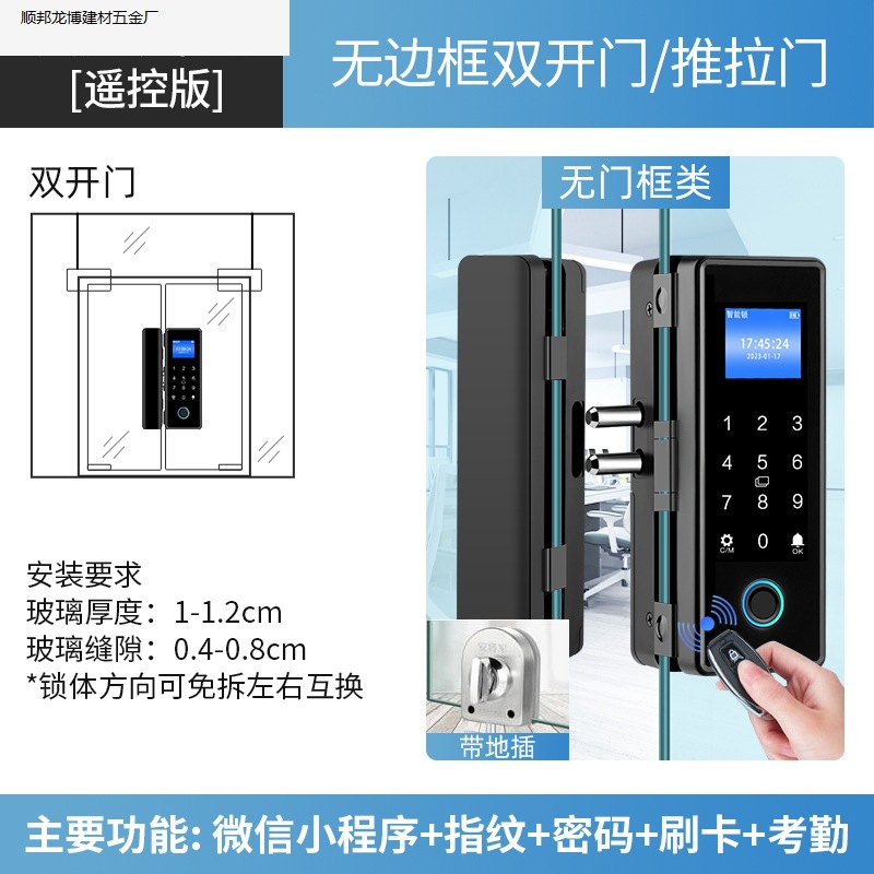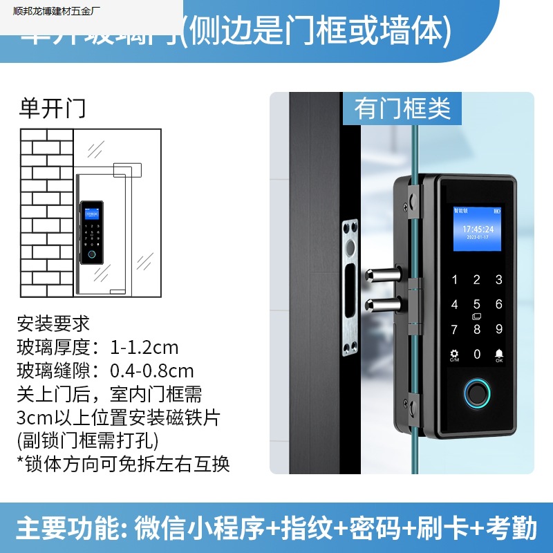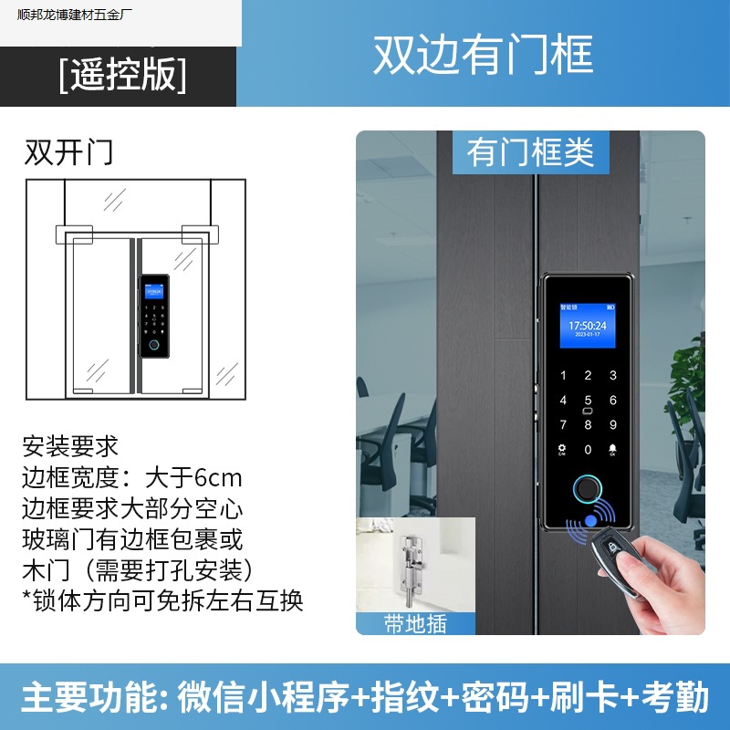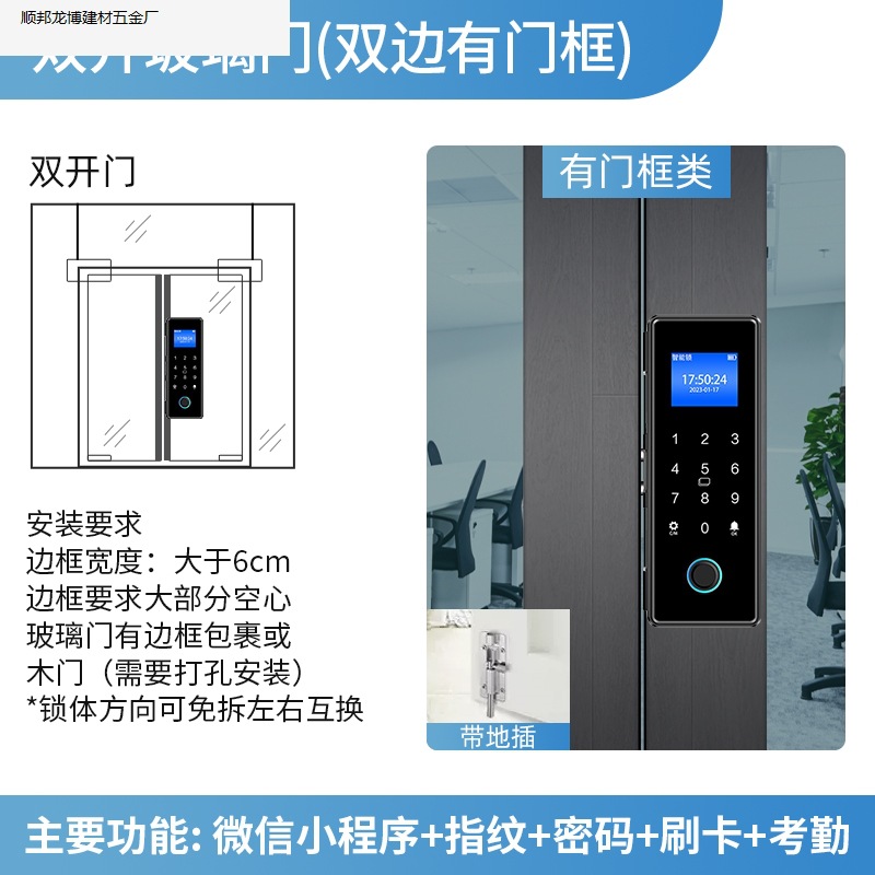 일반 유리 문 지문 잠금 더블 오픈 더블 도어 싱글 도어 오피스 회사 매장 액자 스마트 암호 도어 잠금