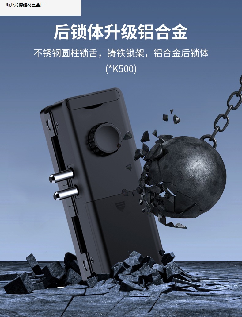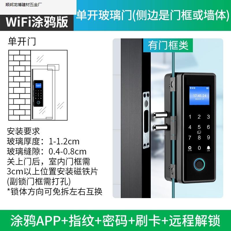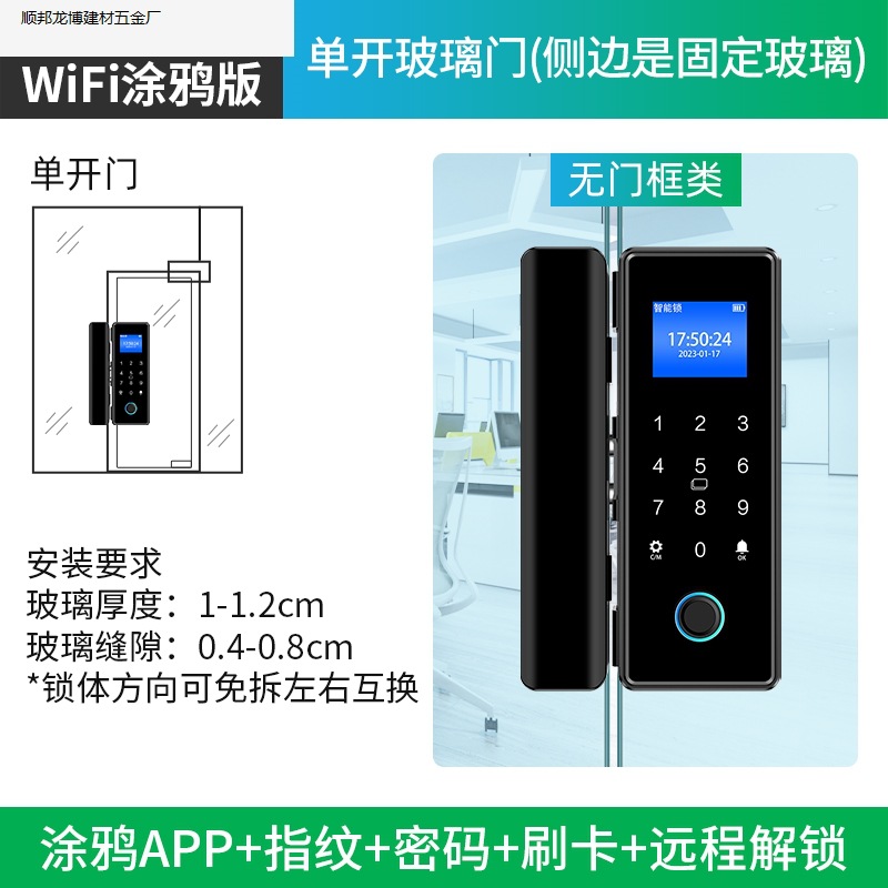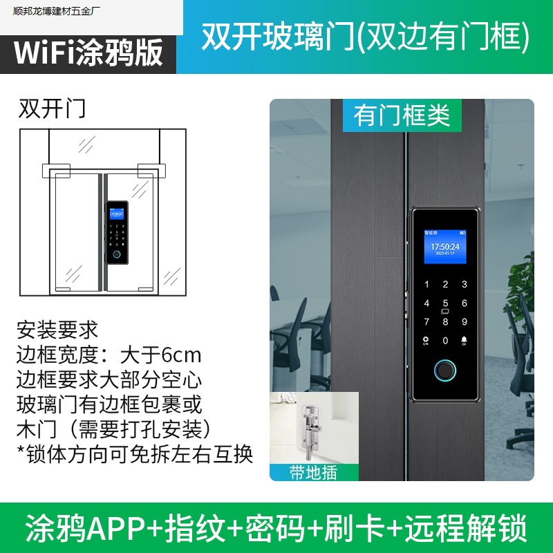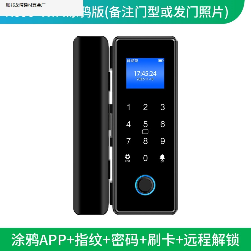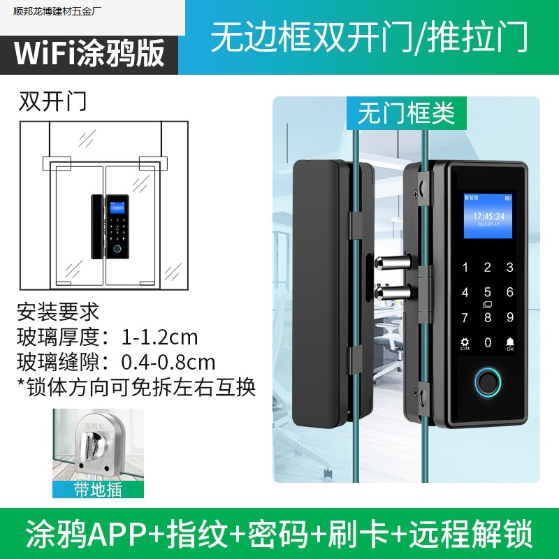 • K500 업그레이드 버전 wifi Tuya APP 검정색 이중 개방형 + 접지 래치(프레임리스 유리 도어)