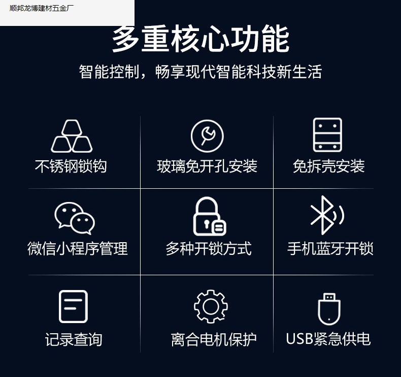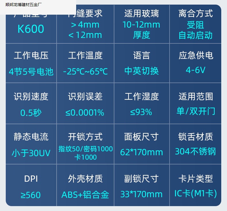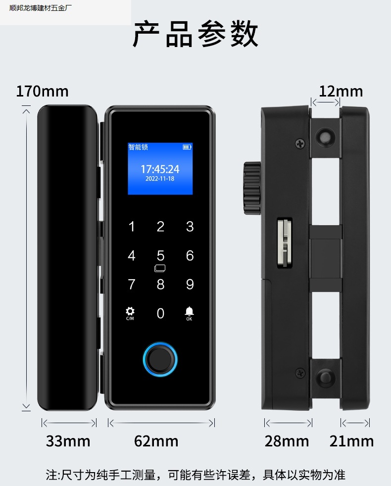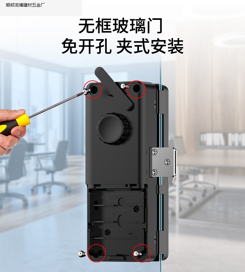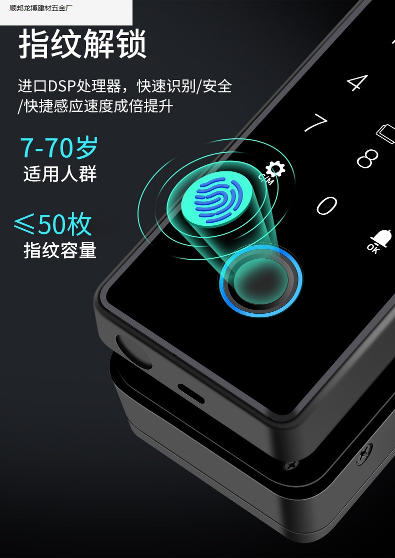 • K500 업그레이드 버전 wifi Tuya APP 검정색 이중 개방형 + 접지 래치(프레임리스 유리 도어)