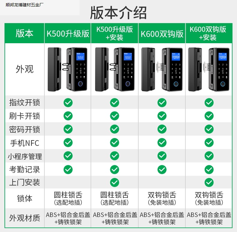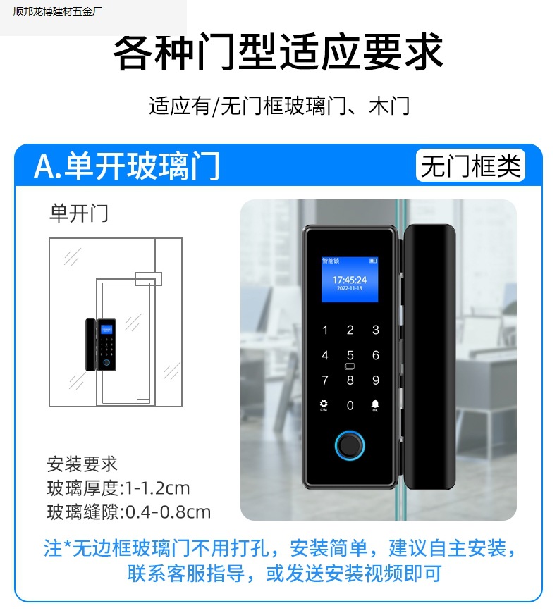 • K500 업그레이드 버전 검정색 단일 개구부 + 도어 펀치 설치(유리 도어 측면에 프레임 또는