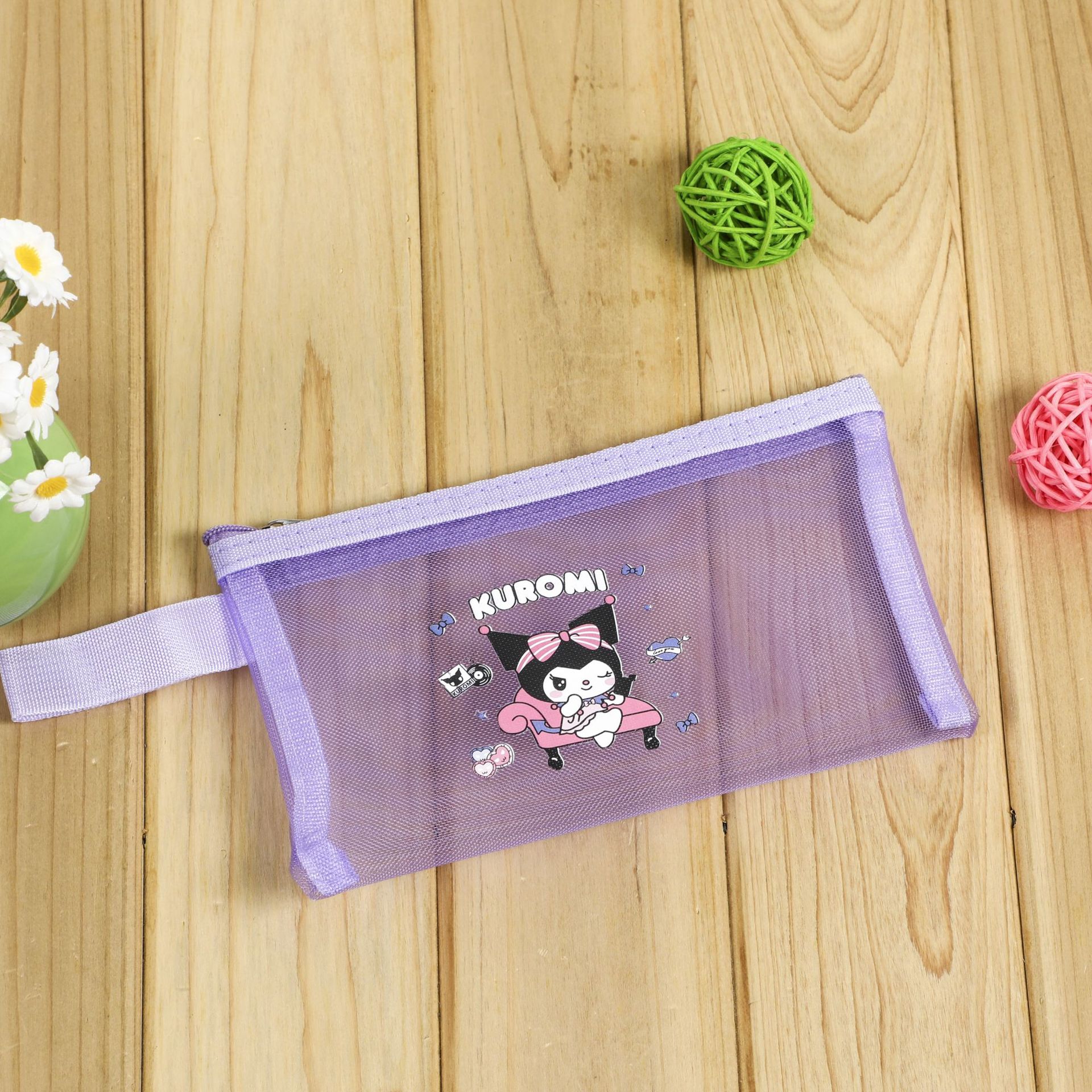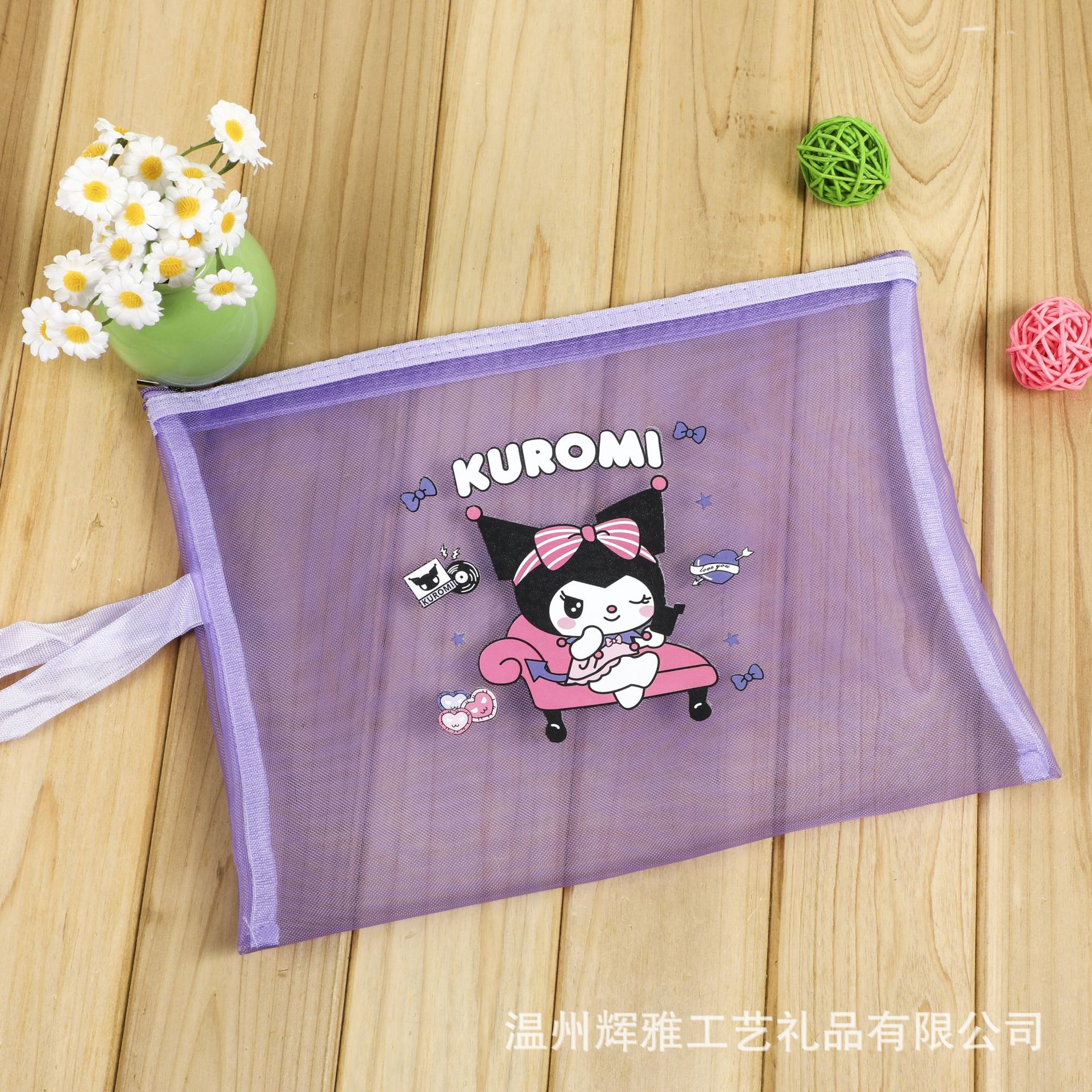 Sanrio Kulomi 멜로디 a4 투명 나일론 메쉬 파일 가방 지퍼 저장 가방 학생 정보 가방 b6스토어 가기