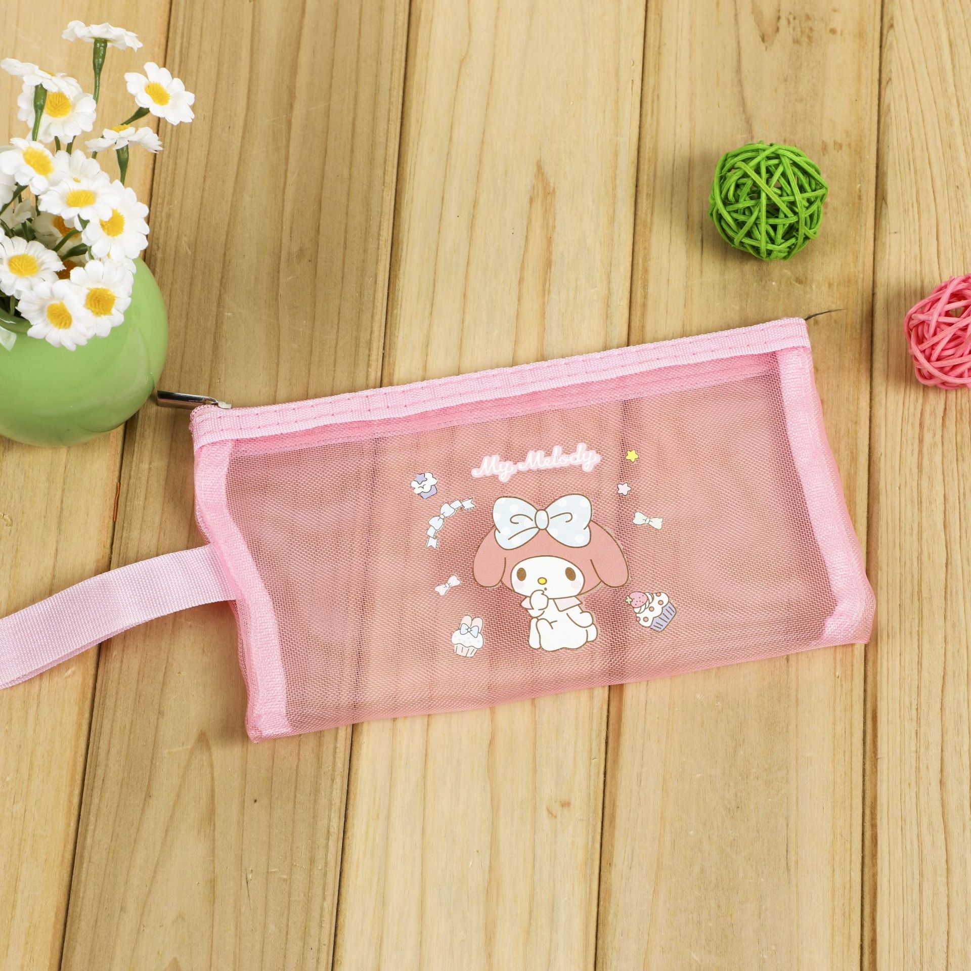 Sanrio Kulomi 멜로디 a4 투명 나일론 메쉬 파일 가방 지퍼 저장 가방 학생 정보 가방 b6