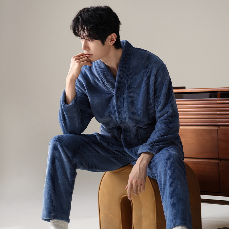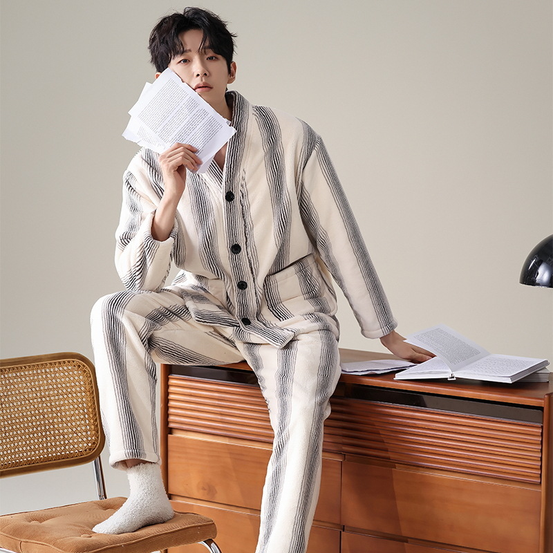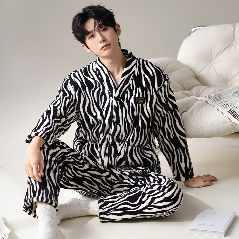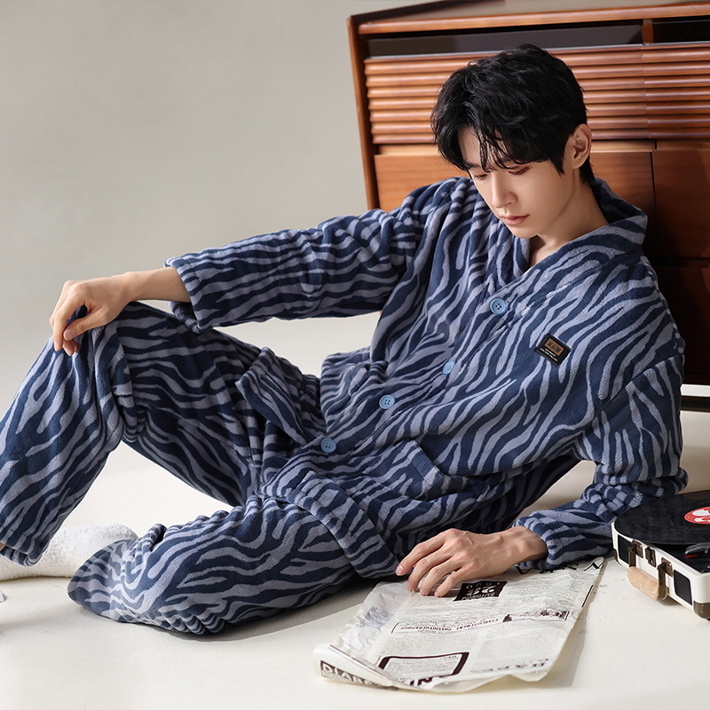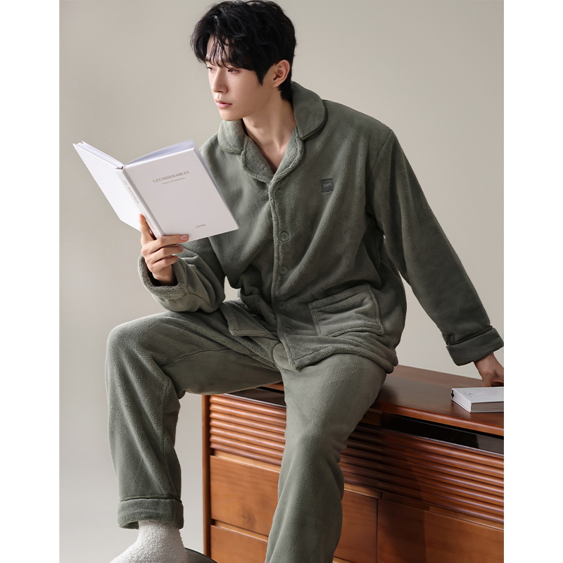 사슴 시간 산호 양털 파자마 남자 가을과 겨울 두꺼운 남자 세트 기모 플란넬 남자 집 옷 봄과 가을스토어 가기