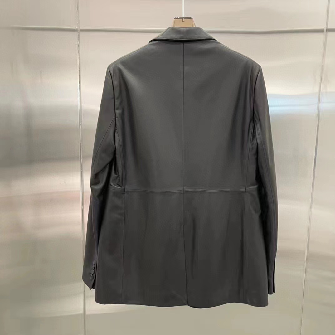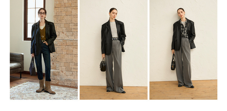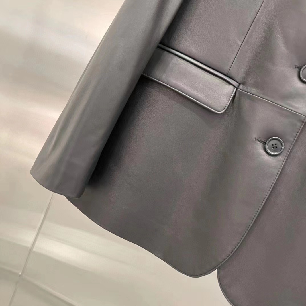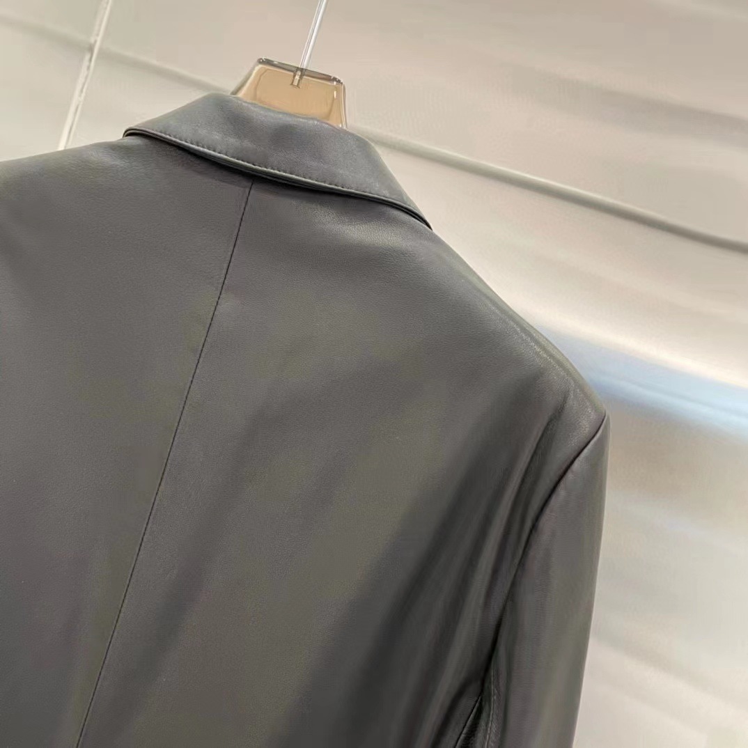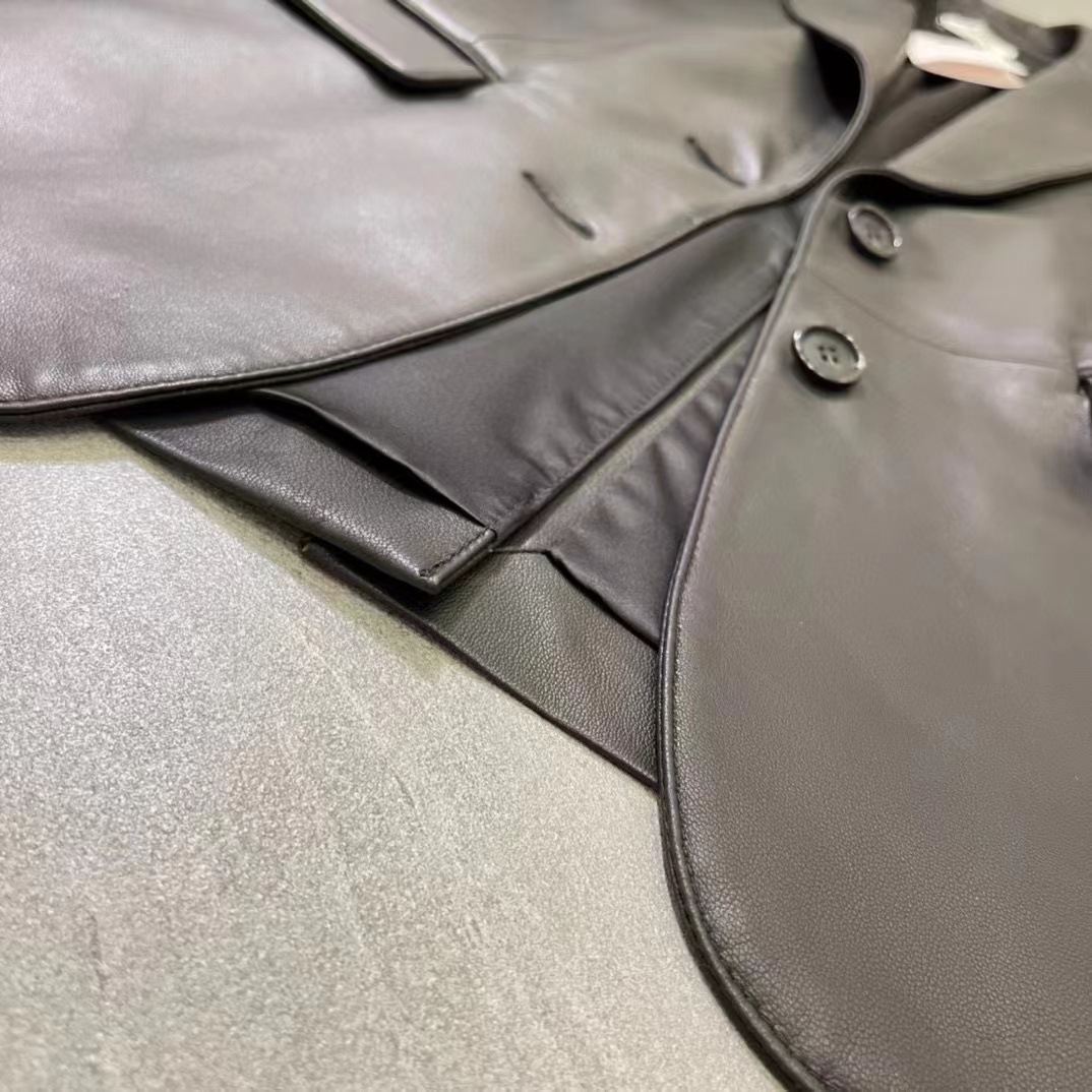빈티지 실루엣 플랫 바지선 칼라 얇은 H 자형 가죽 가죽 세트 코트 여성의 가을 2024 새로운 양 가죽 코트스토어 가기