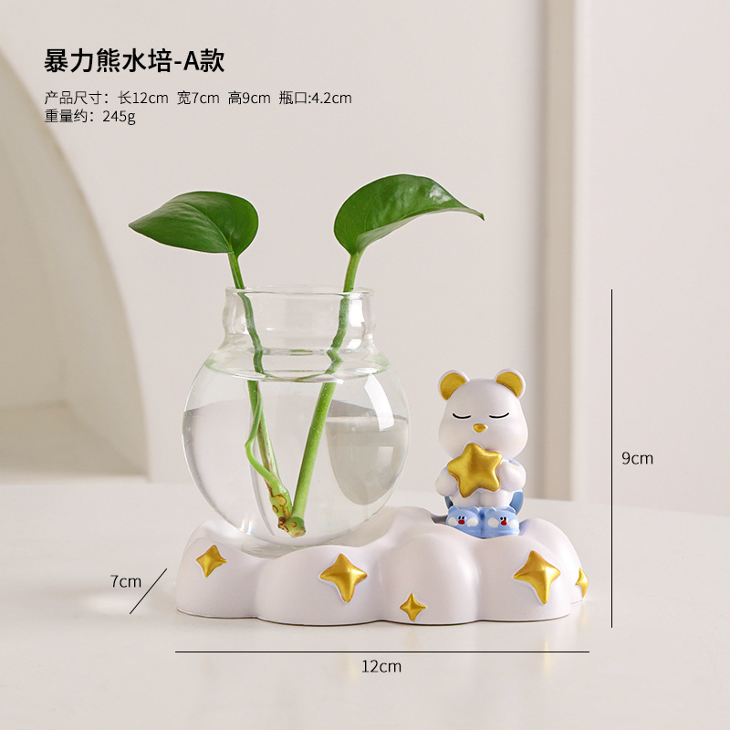 귀여운 팬더 오피스 데스크탑 장식 작은 장식품 수경기구 입구 꽃병 거실 꽃-배열 홈 액세서리