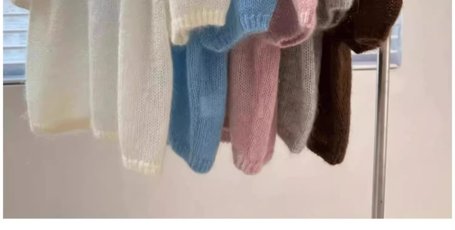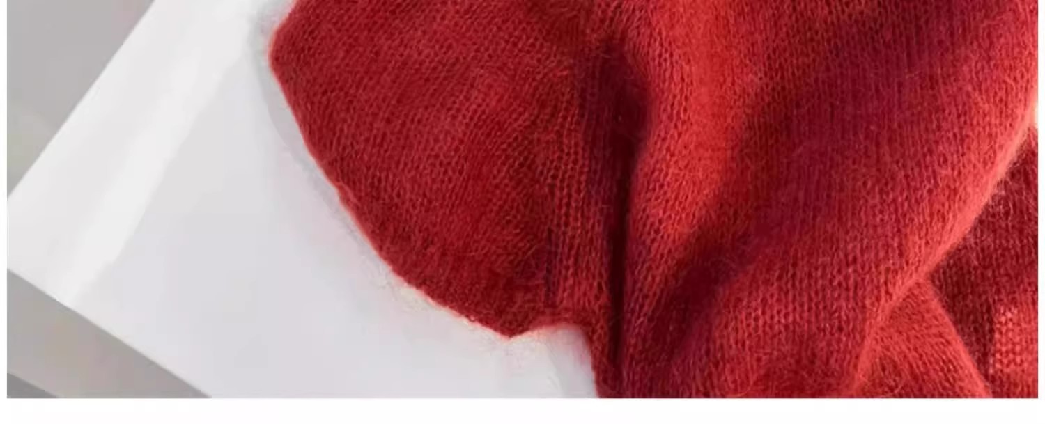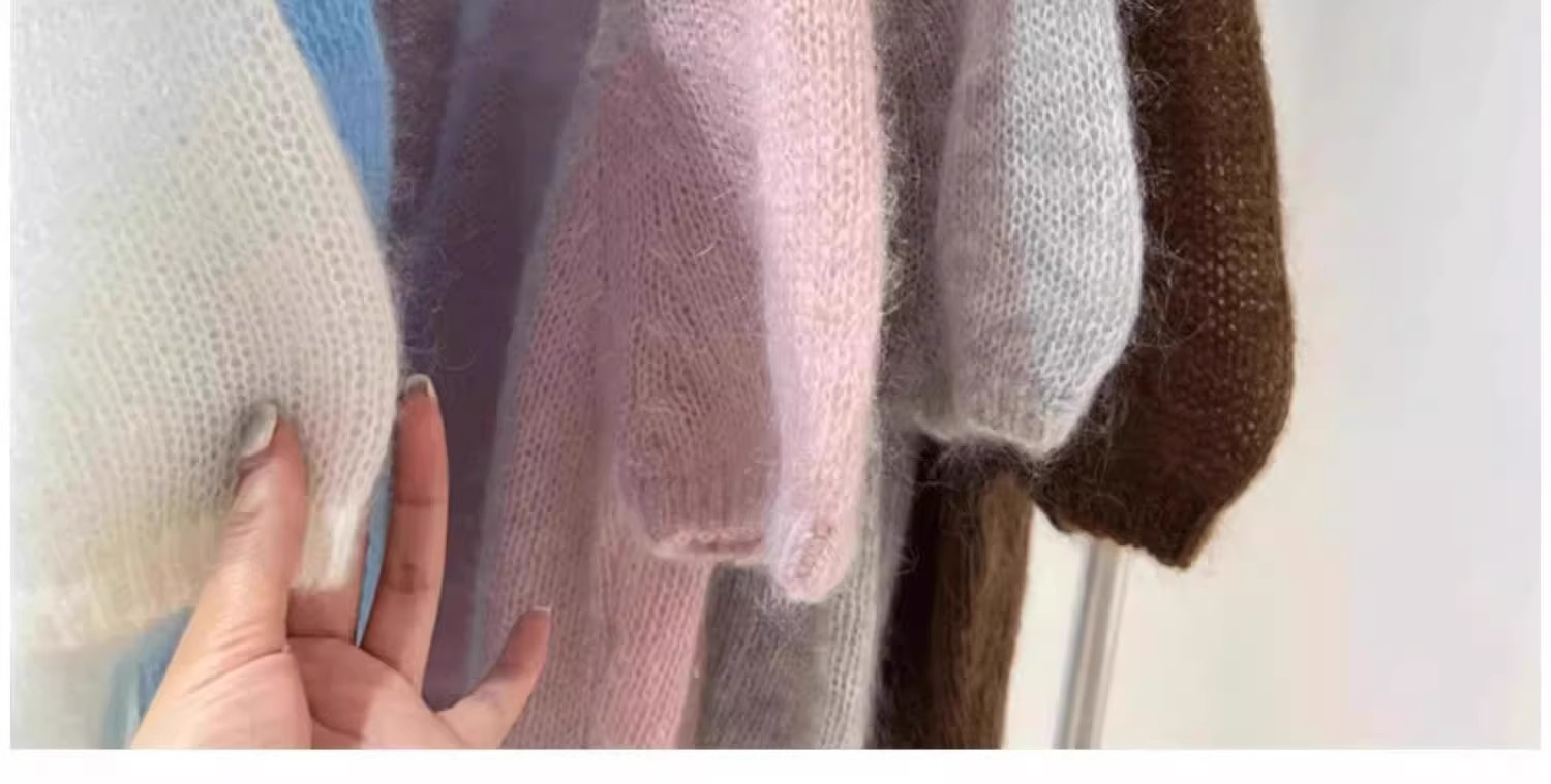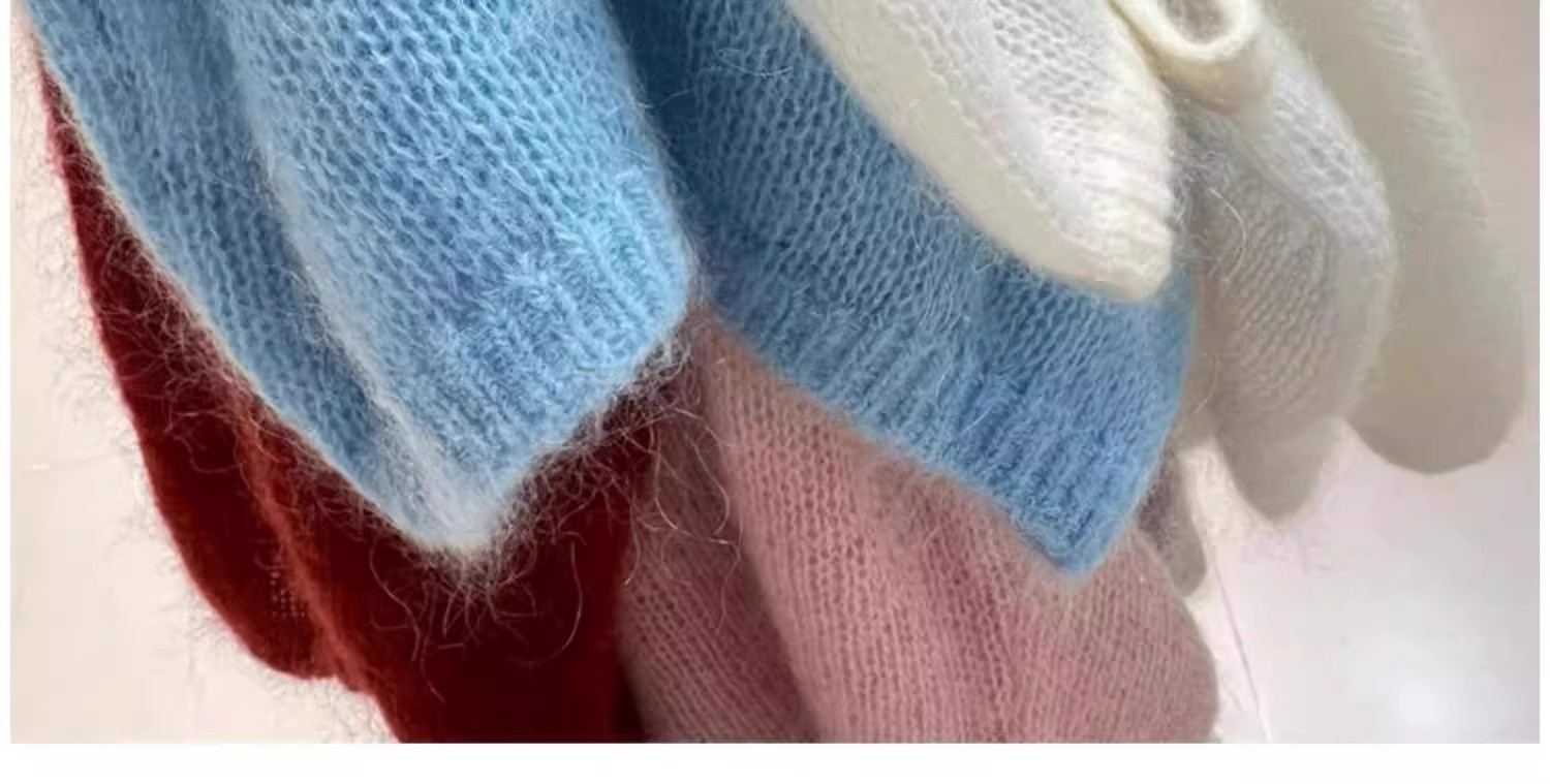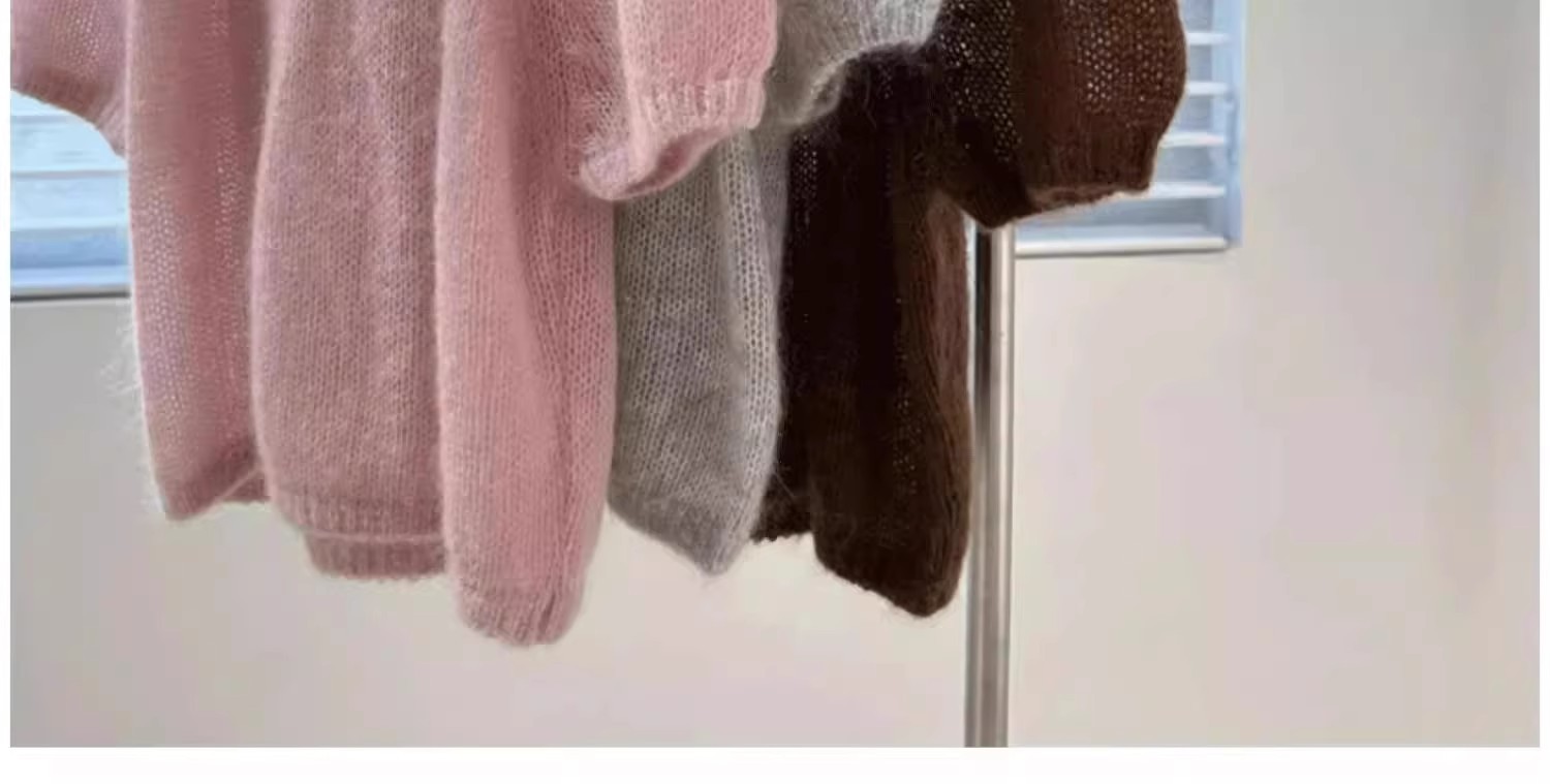 가을 겨울 여성용 새로운 스타일의 퍼프 슬리브 모헤어 반팔 스웨터 하이 엔드 라운드 넥 풀오버 스웨터 탑스토어 가기