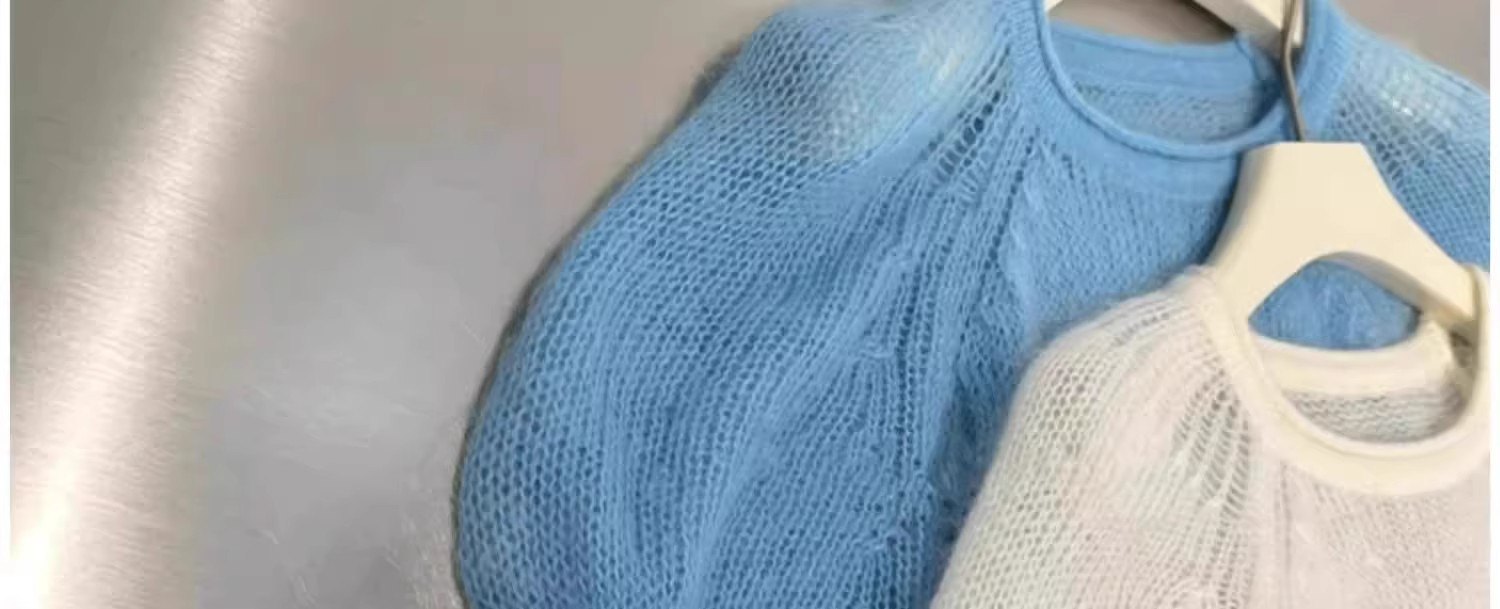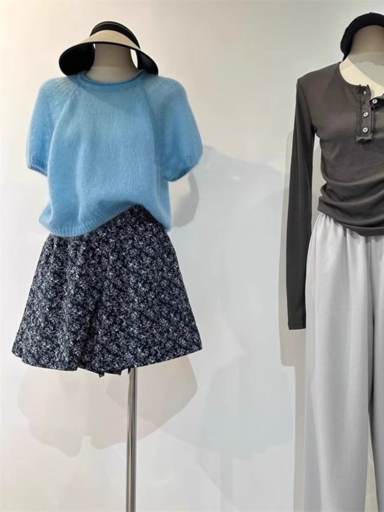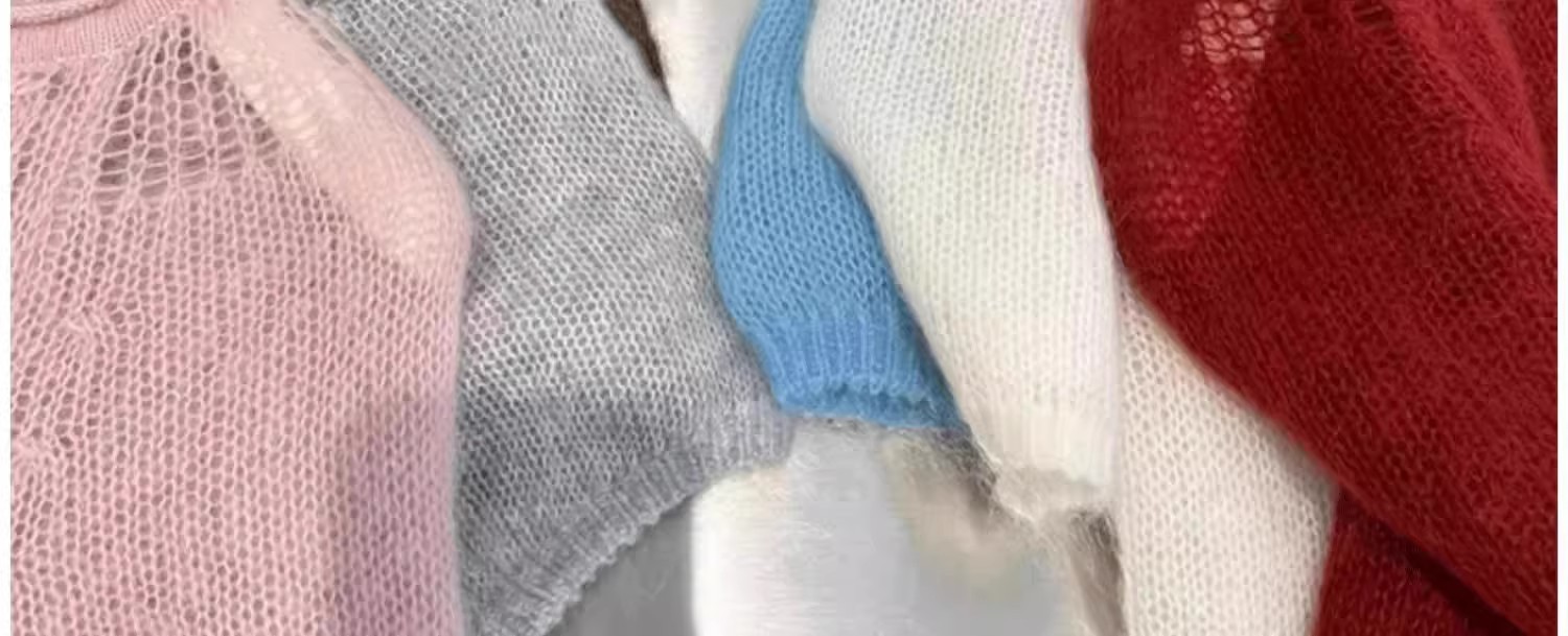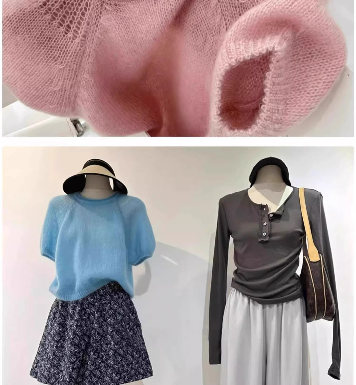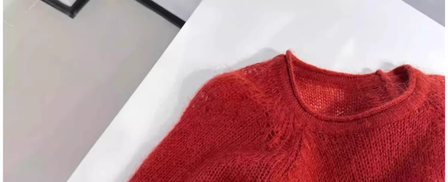 가을 겨울 여성용 새로운 스타일의 퍼프 슬리브 모헤어 반팔 스웨터 하이 엔드 라운드 넥 풀오버 스웨터 탑스토어 가기