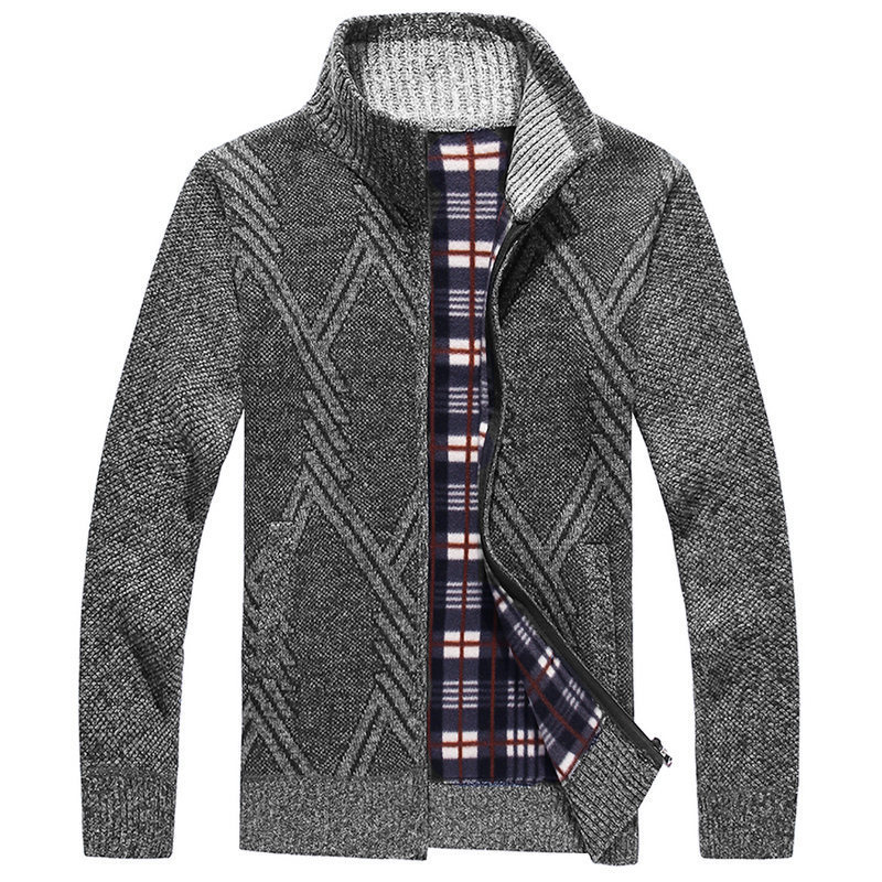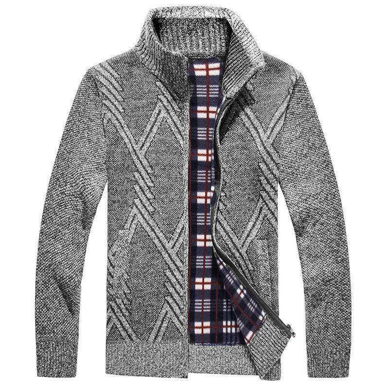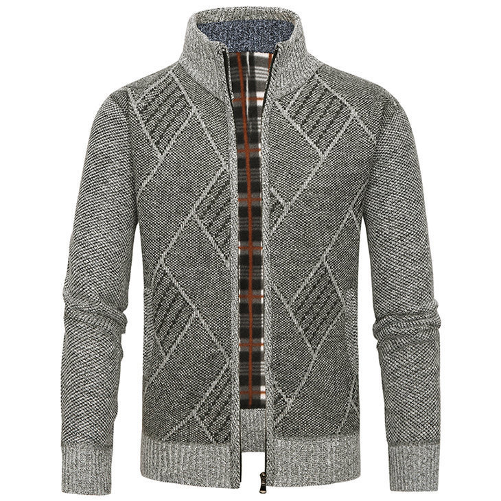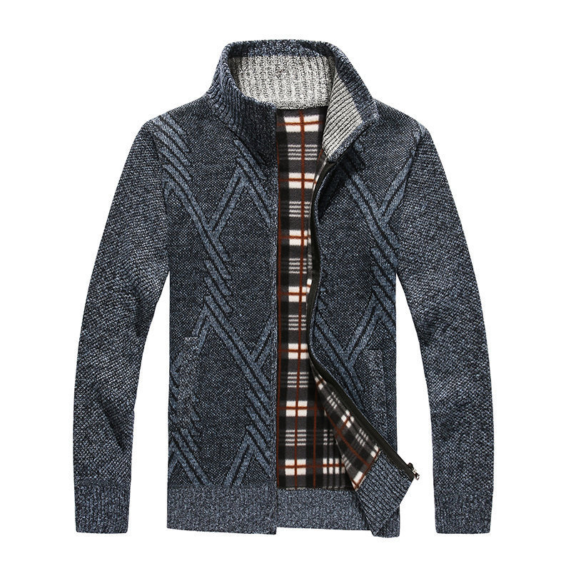 국경 간 뉴 기모 스웨터 남자 칼라 다이아몬드 니트 지퍼 가디건 가을 겨울 남자 스웨터 코트 재킷