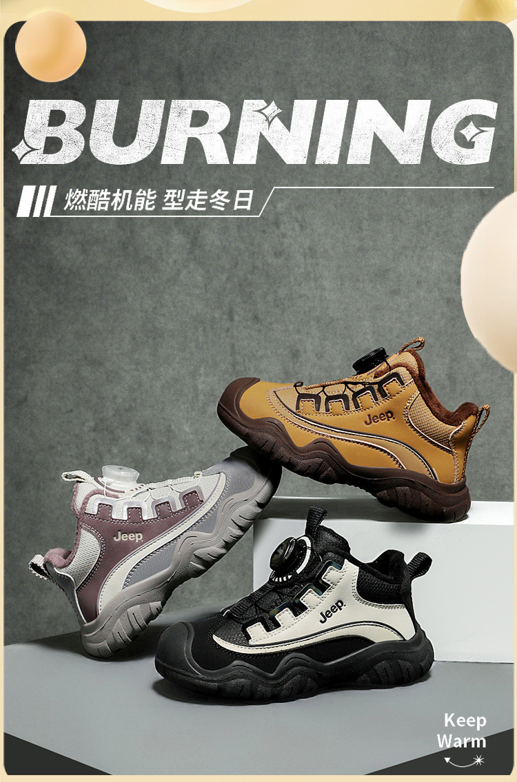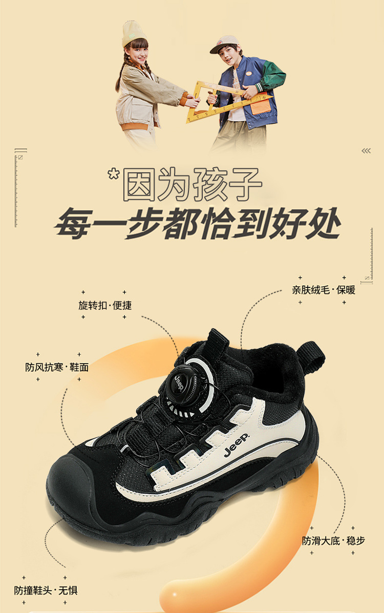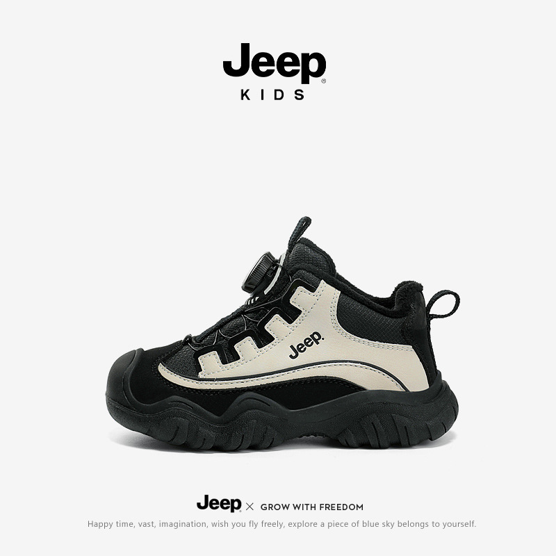지프 어린이 신발 겨울 면화 방수 2024 새로운 따뜻한 플러스 벨벳 러닝 어린이 신발 소년 검은 스포츠 신발스토어 가기