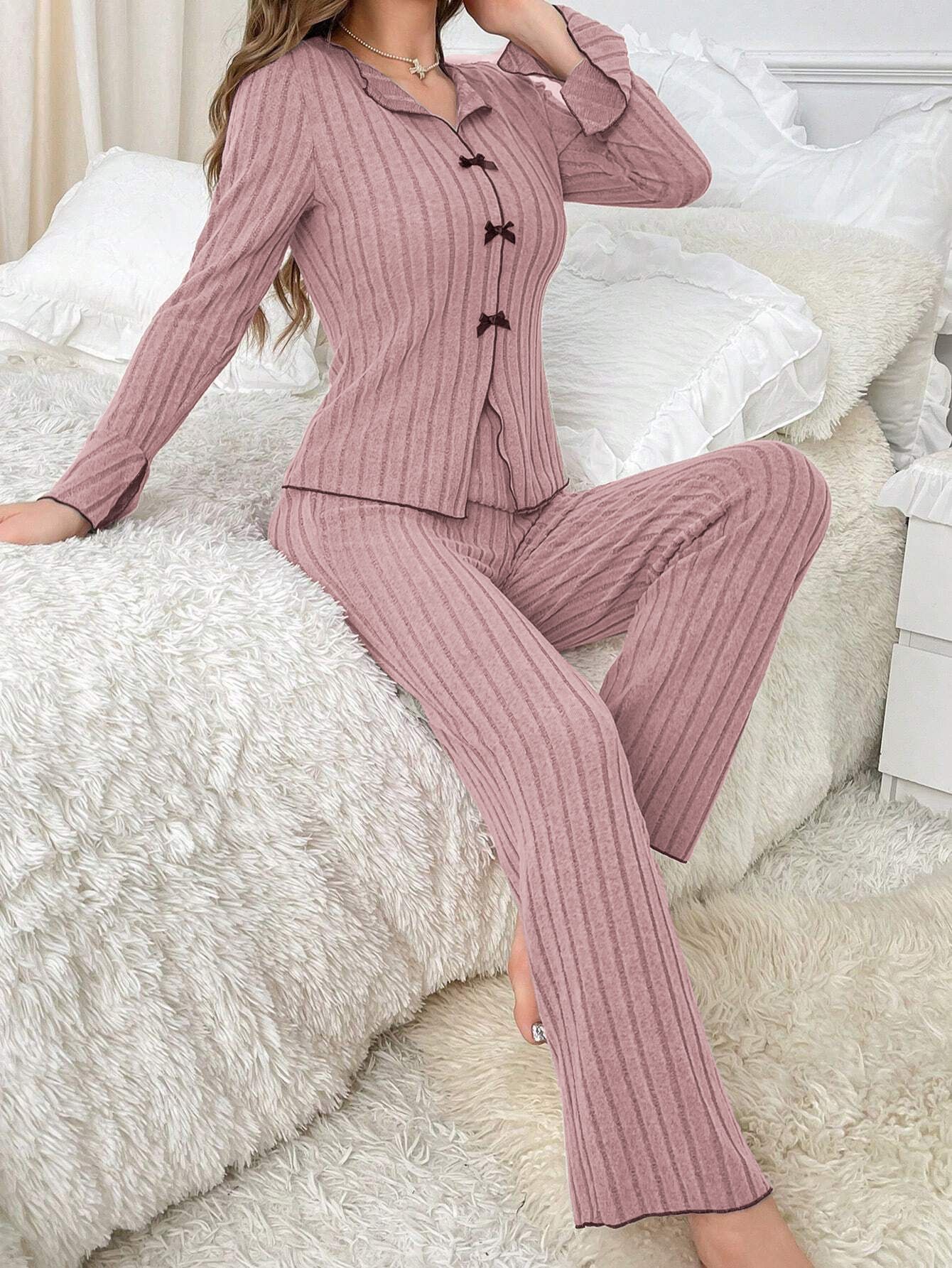 대외 무역 국경을 넘는 유럽과 미국의 가을 겨울 잠옷 여성 옷깃 활 패션 섹시한 긴 소매 바지 홈 의류 세트 여성스토어 가기
