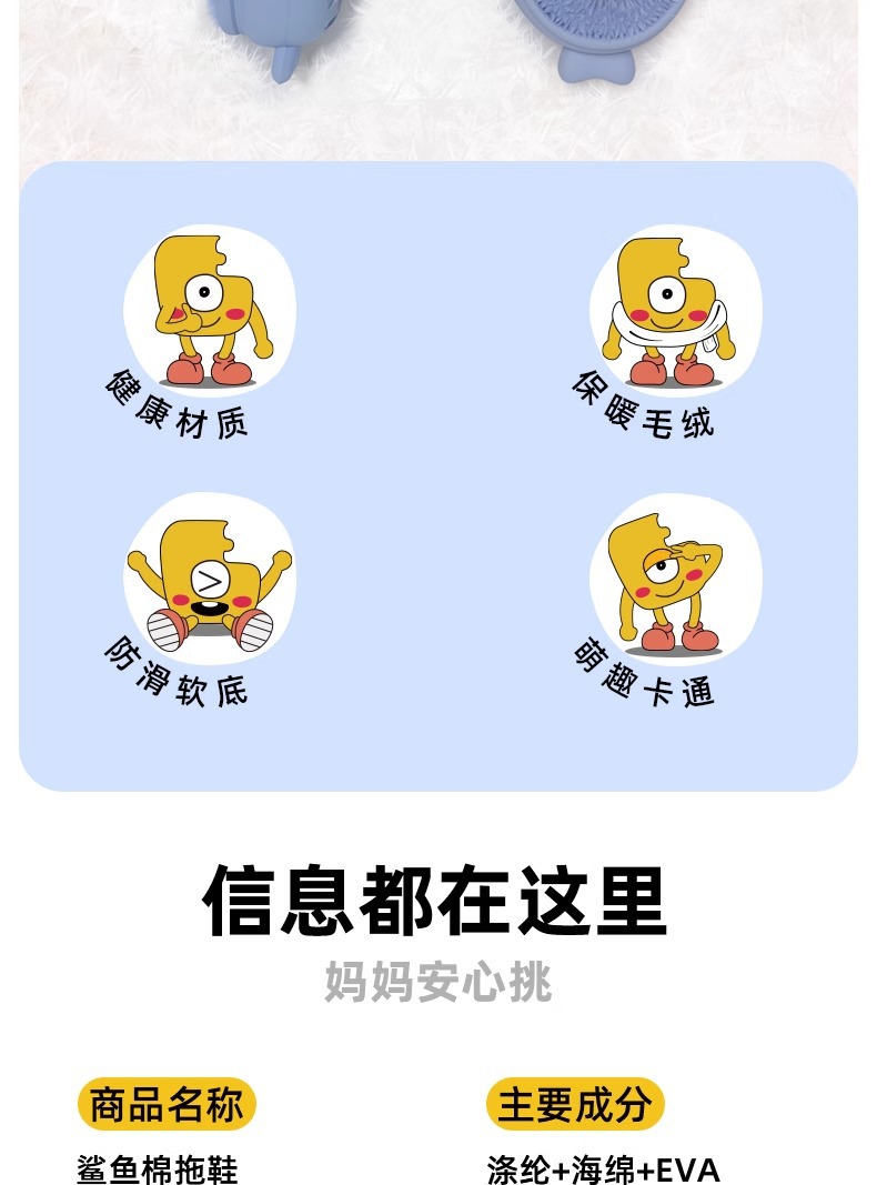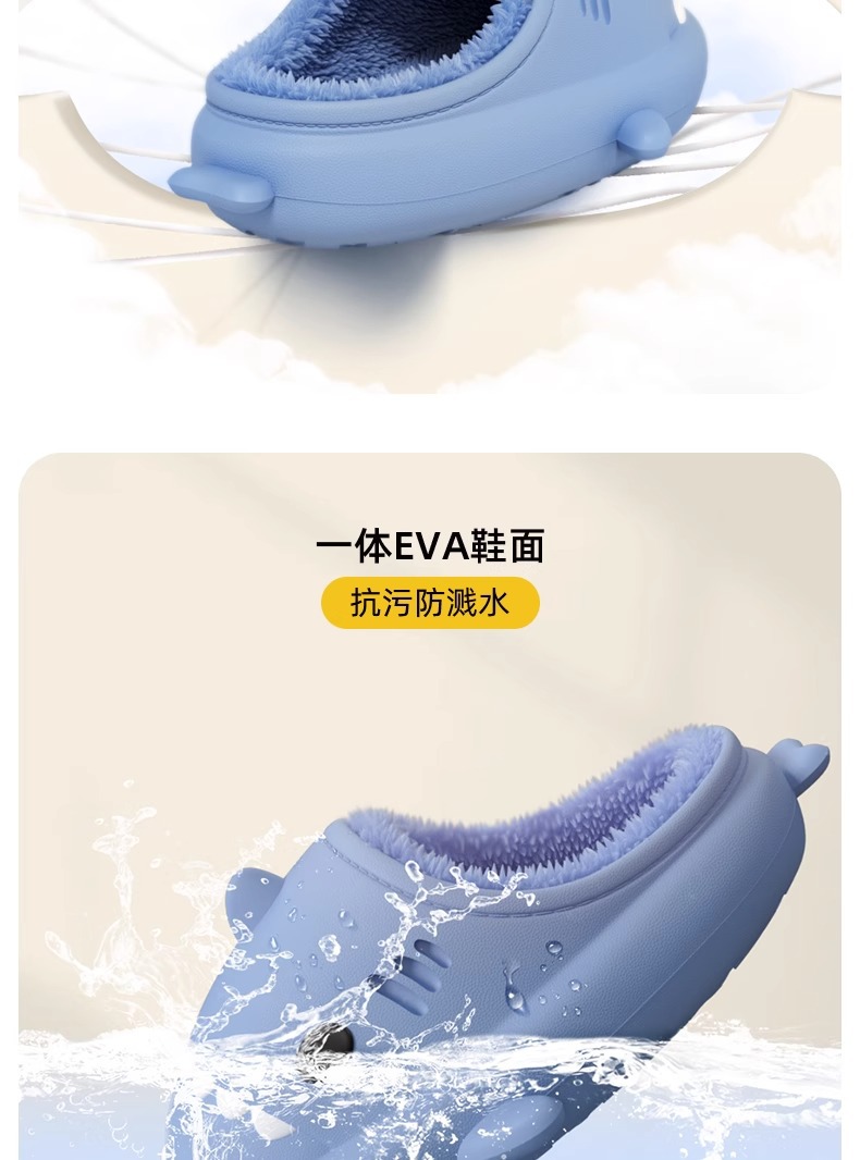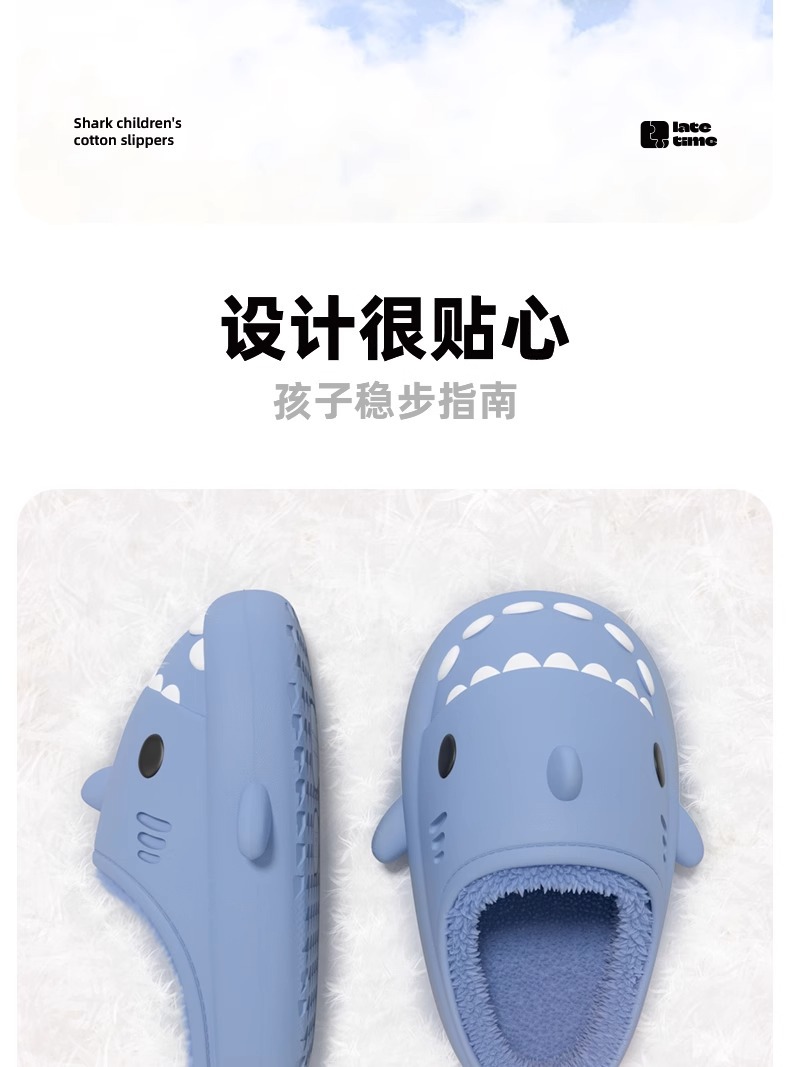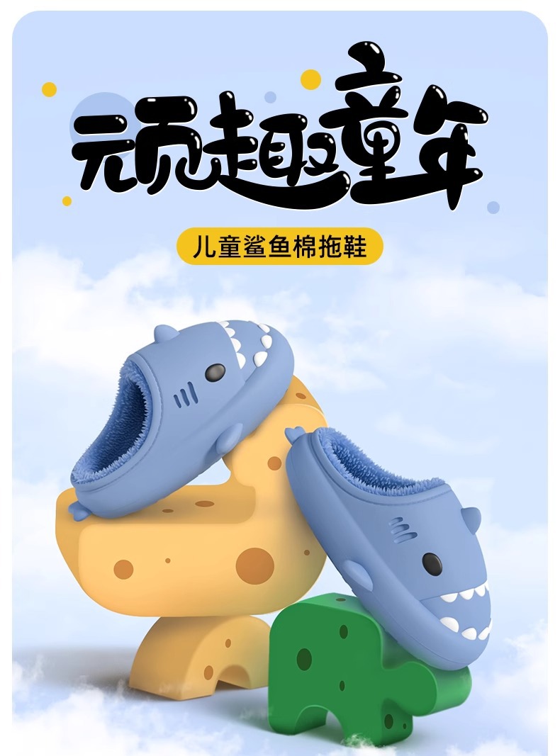 방수 상어 어린이 면 슬리퍼 소년과 소녀 가을 겨울 만화 실내 미끄럼 방지 홈 부모-자식 아기 면화 신발스토어 가기