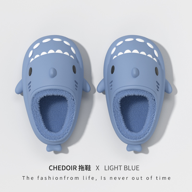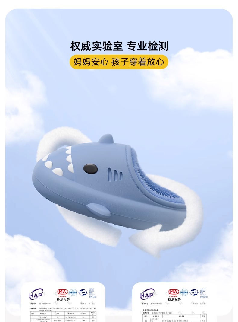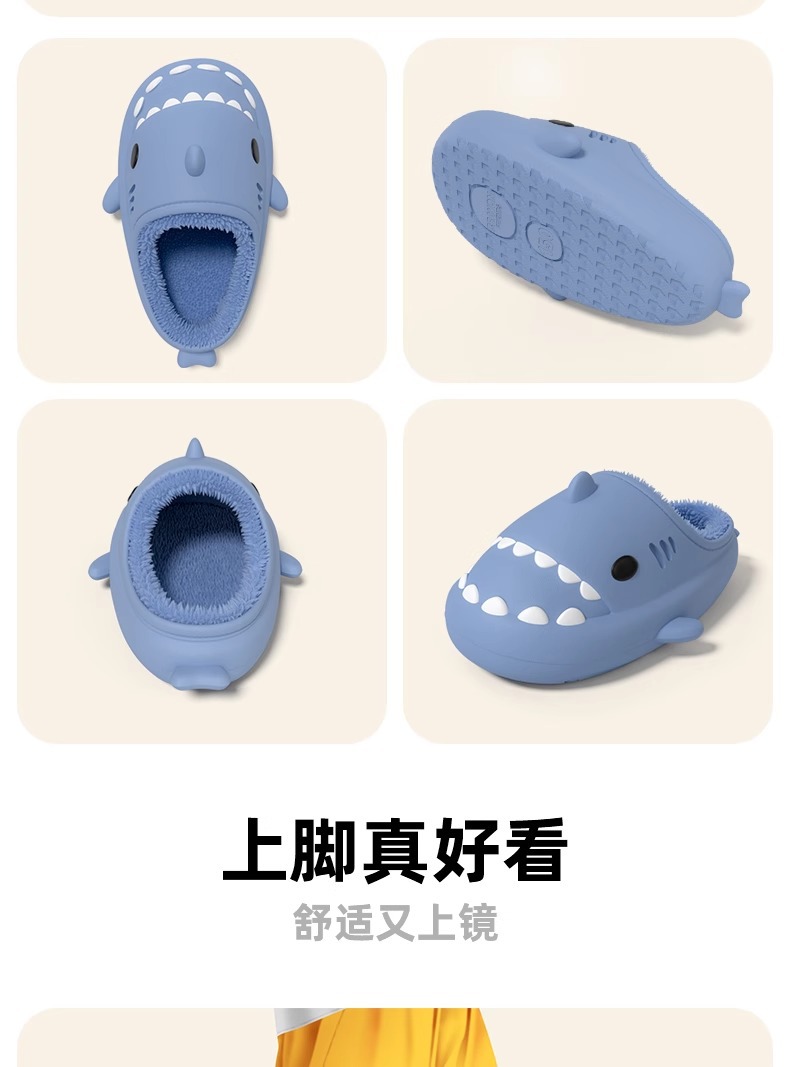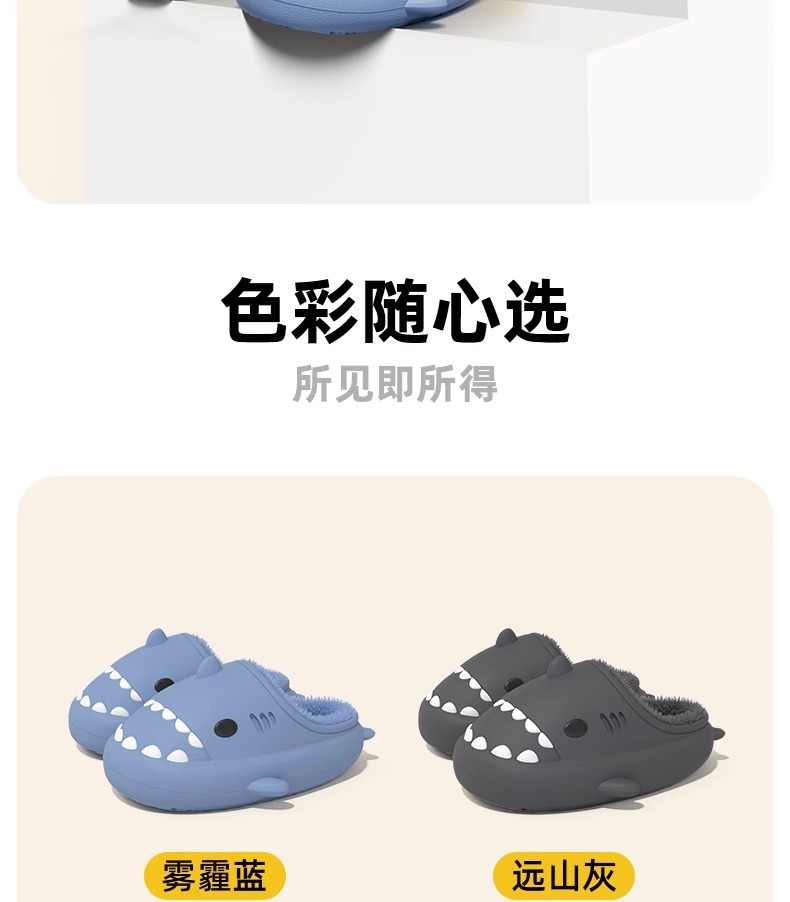 방수 상어 어린이 면 슬리퍼 소년과 소녀 가을 겨울 만화 실내 미끄럼 방지 홈 부모-자식 아기 면화 신발스토어 가기
