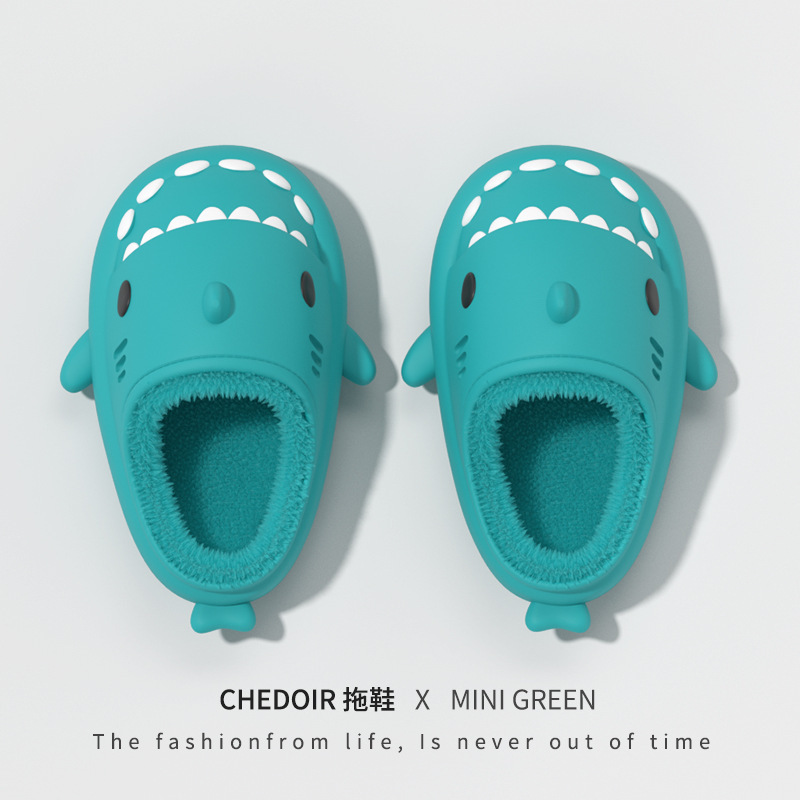 방수 상어 어린이 면 슬리퍼 소년과 소녀 가을 겨울 만화 실내 미끄럼 방지 홈 부모-자식 아기 면화 신발