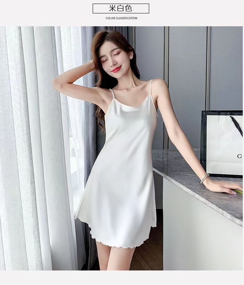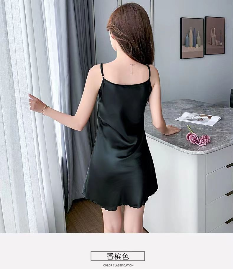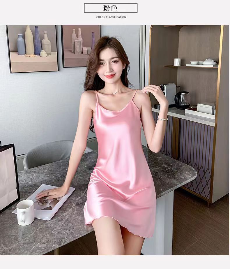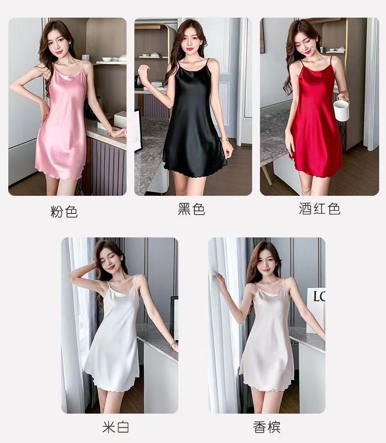 섹시한 나이트 드레스 여성의 여름 2024 얇은 아이스 실크 파자마 여름 순수한 욕망 백리스 칼라 슬립 스커트 홈 옷스토어 가기