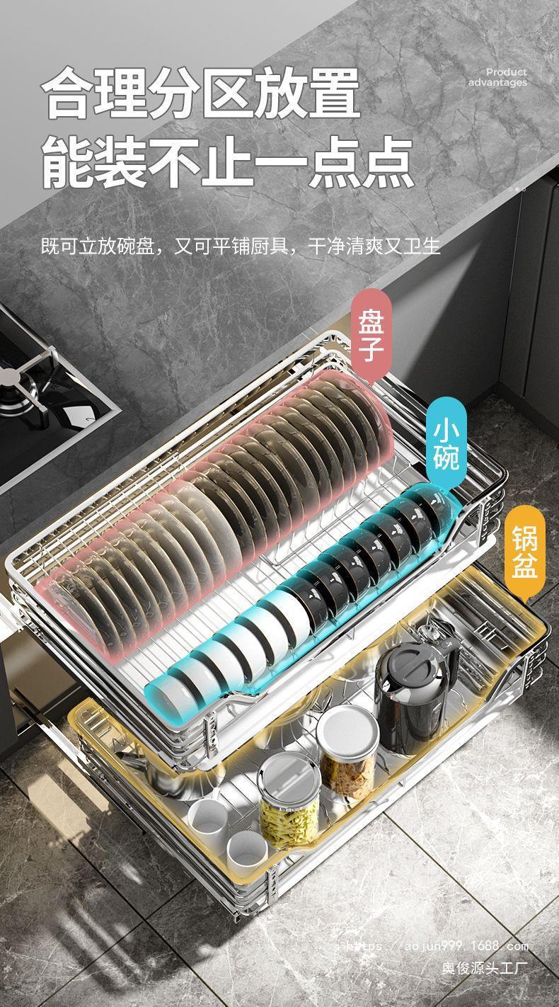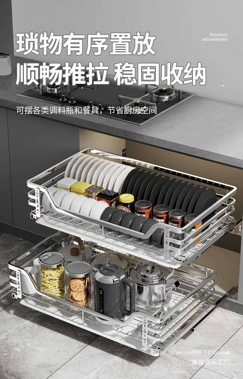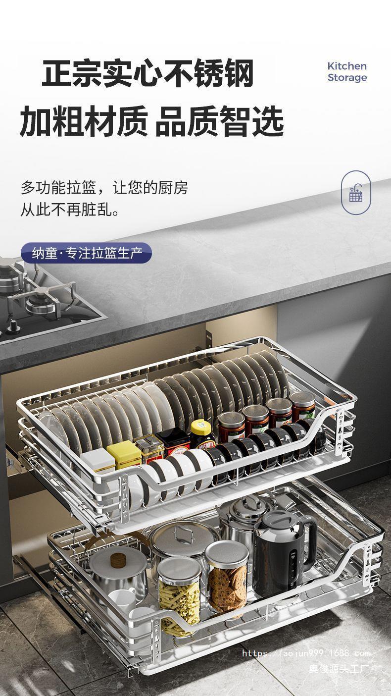 더블 레이어 304 스테인레스 스틸 바구니 캐비닛 서랍 접시 바구니 주방 접시 랙 버퍼 레일 보관 조미료 바구니스토어 가기