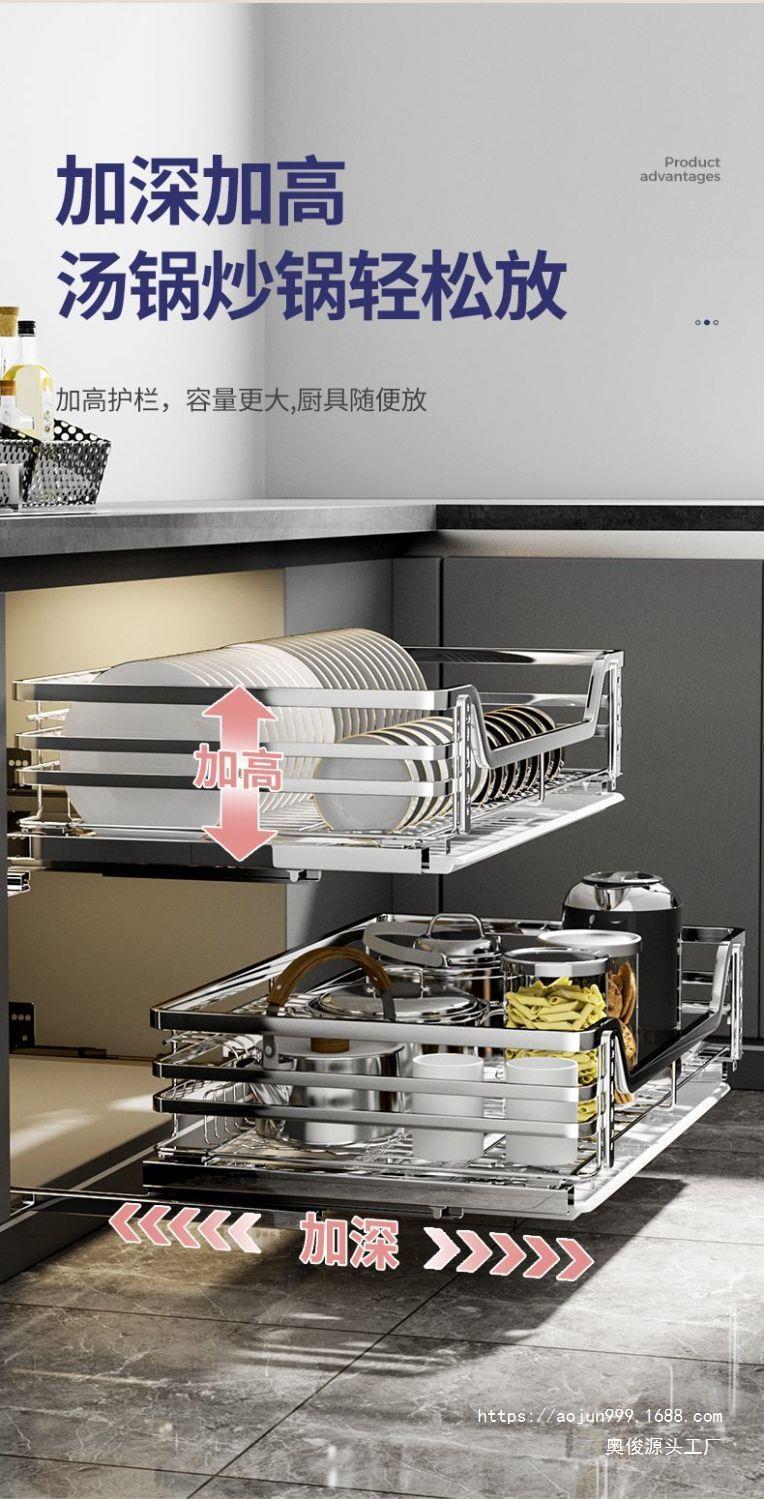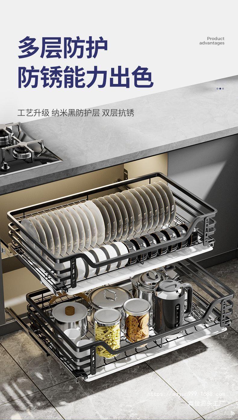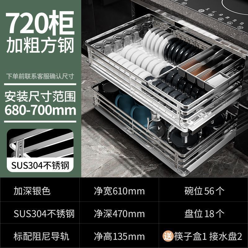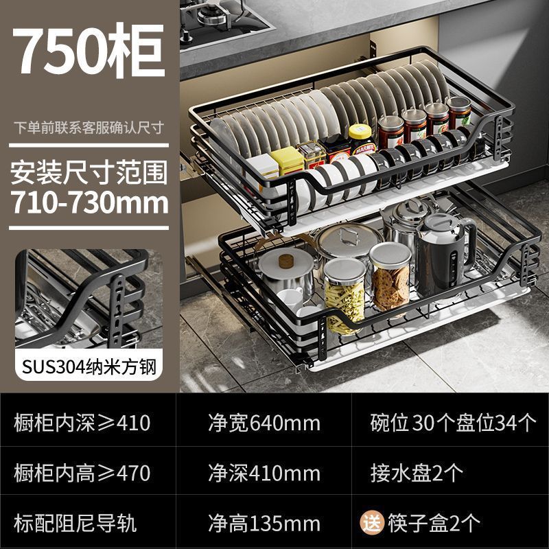 더블 레이어 304 스테인레스 스틸 바구니 캐비닛 서랍 접시 바구니 주방 접시 랙 버퍼 레일 보관 조미료 바구니스토어 가기