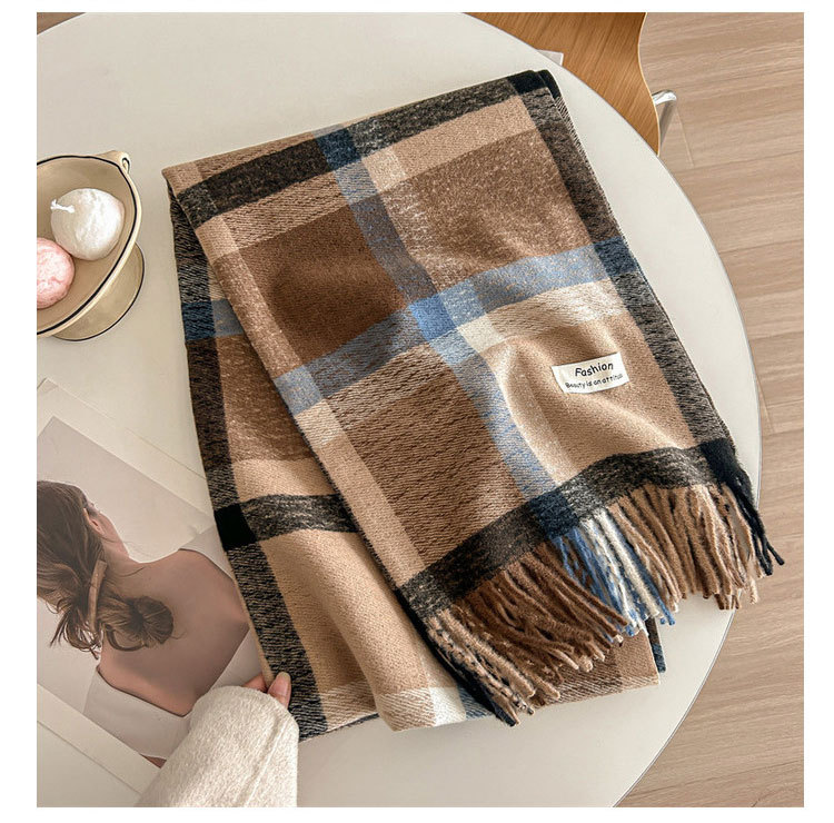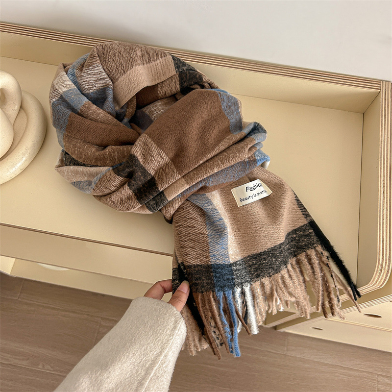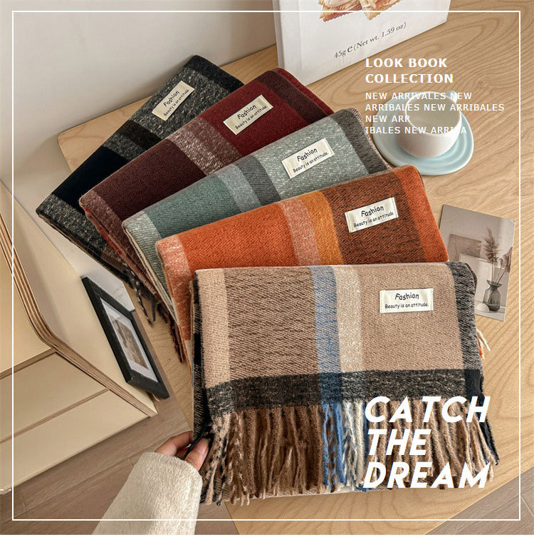 뉴 콘트라스트 컬러 캐시미어 체크 스카프 여성 가을 겨울 한국 스타일 패션 하이 엔드 센스 올매치 커플 따뜻한 목도리스토어 가기