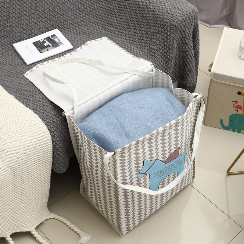 만화 말 캔버스 큰 가방 쇼핑백 어깨 가방 저장 가방 홈 잡화 더러운 옷 양동이 0955C