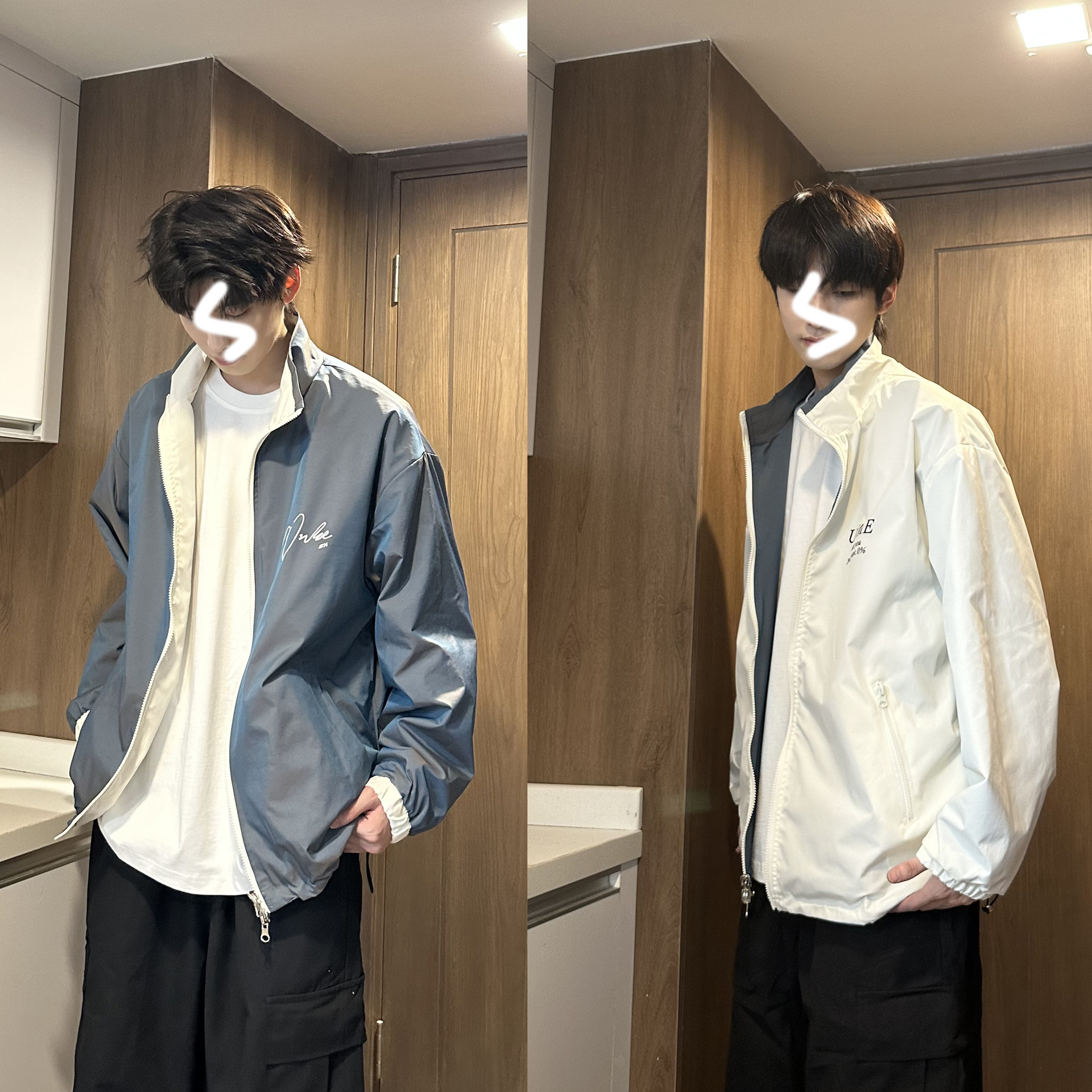 오로라 색상 변경 양면 재킷 남자 봄과 가을 미국 폭격기 재킷 디자인 센스 틈새 칼라 야구 세트스토어 가기