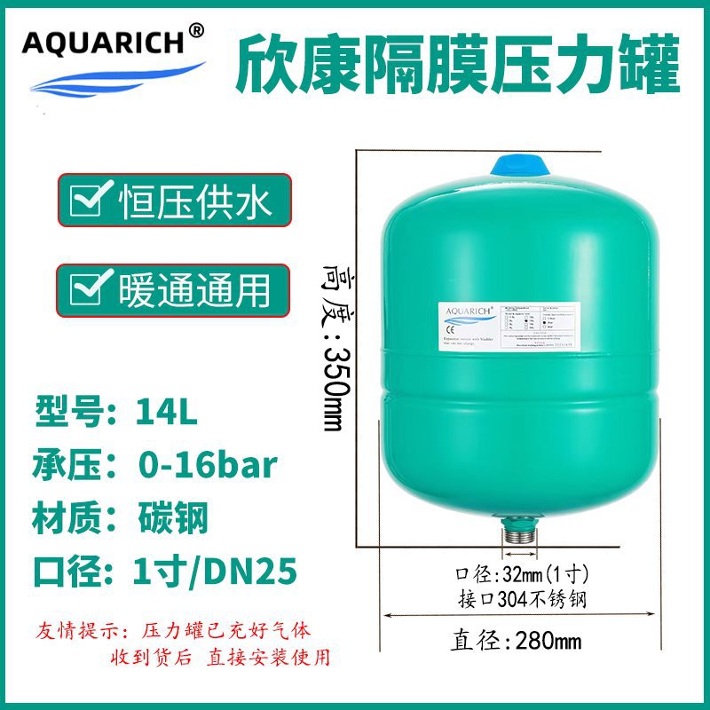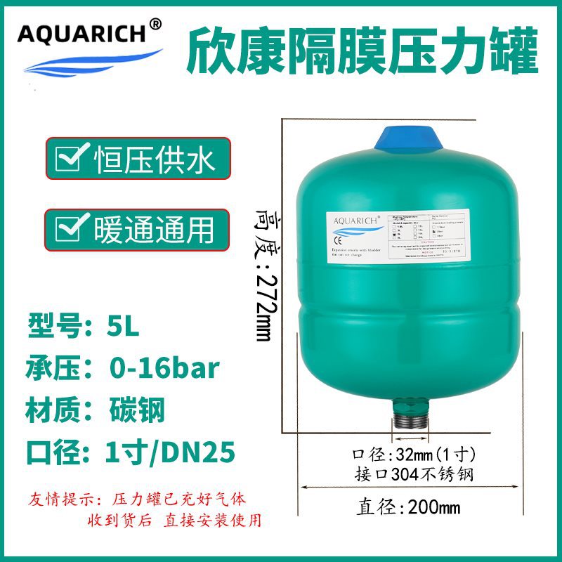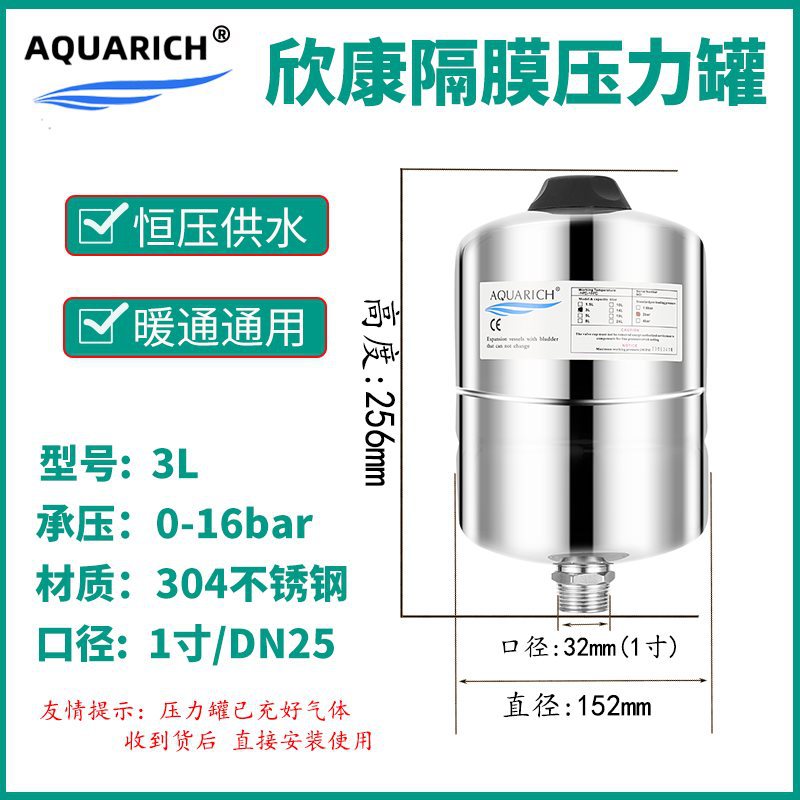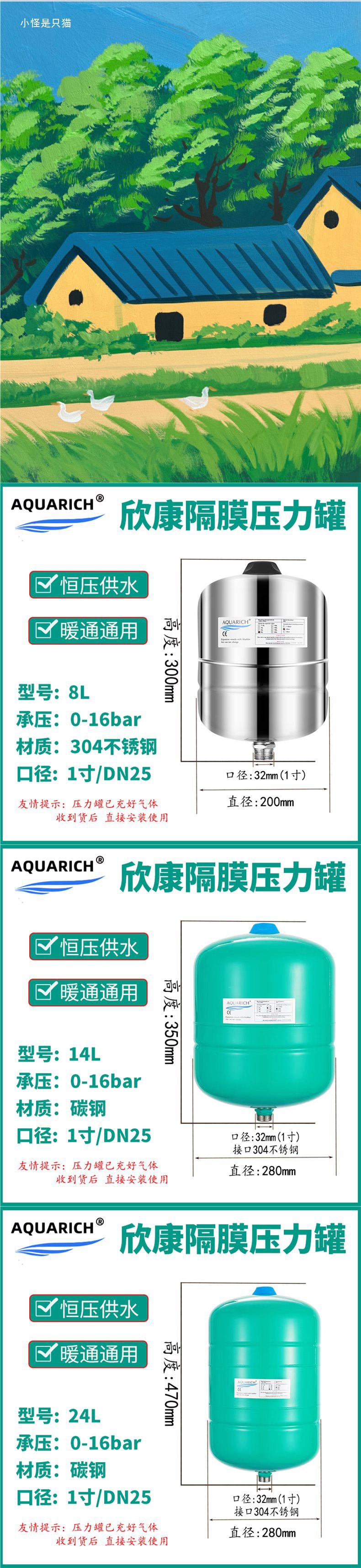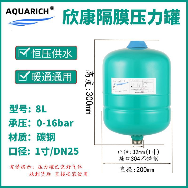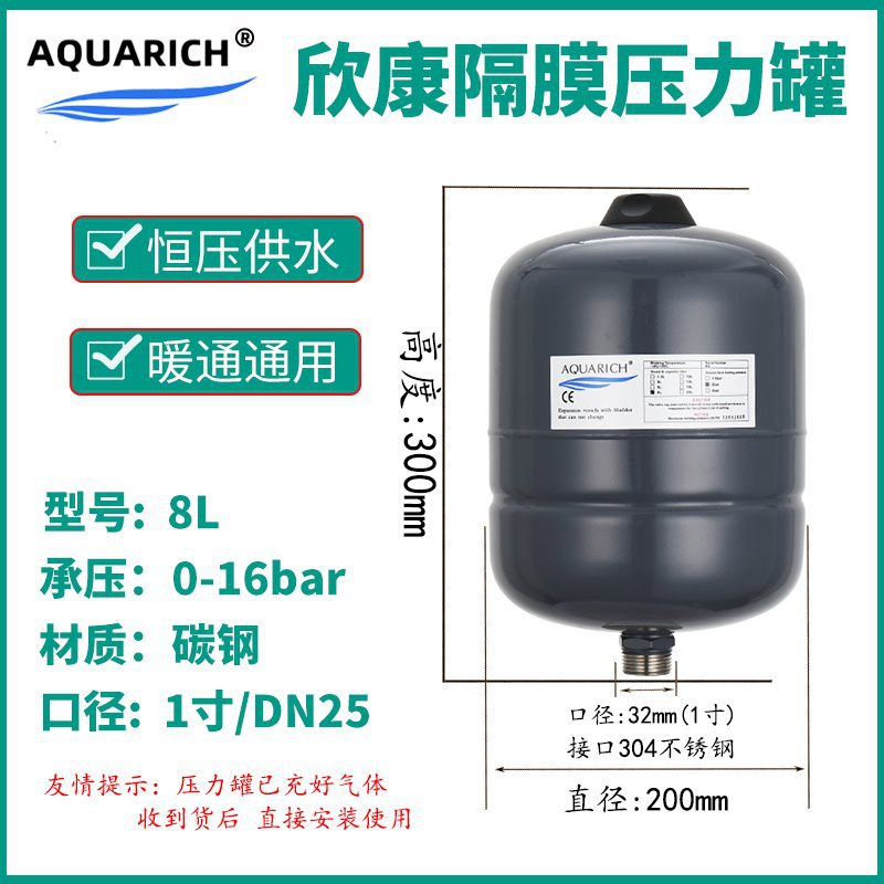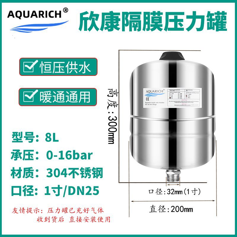 AQUARICH 8 리터 스테인레스 스틸 다이어프램 압력 탱크 Xinkang 수직 확장 탱크 가변 주파수 워터 펌프 액세서리스토어 가기