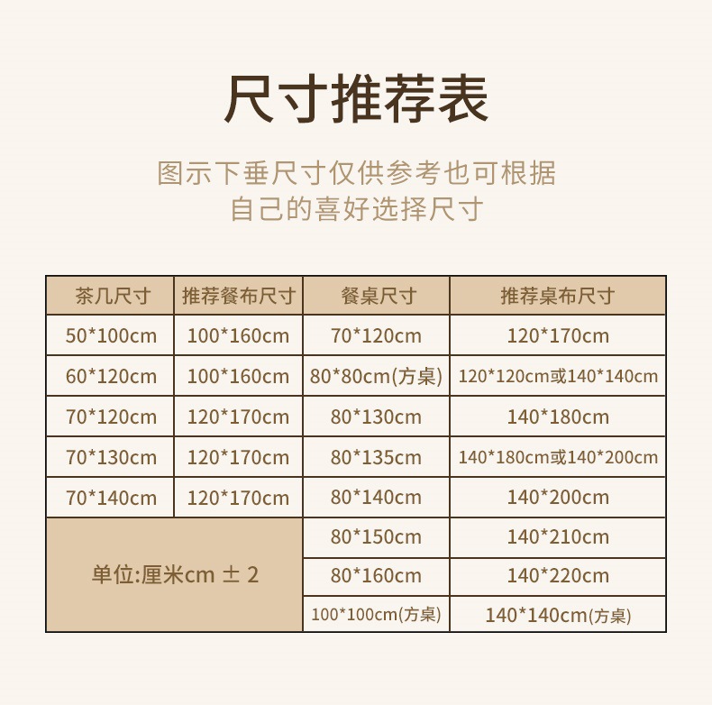 • 120*120cm (작은 사각형 테이블에 적합)