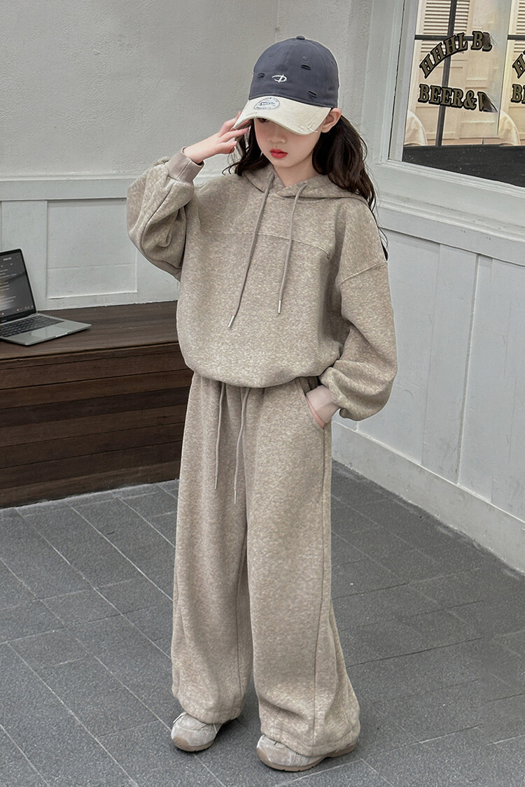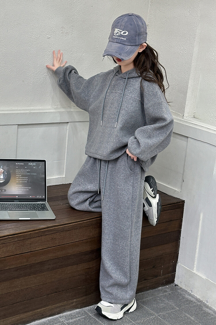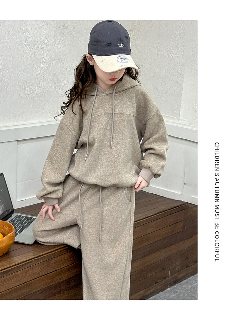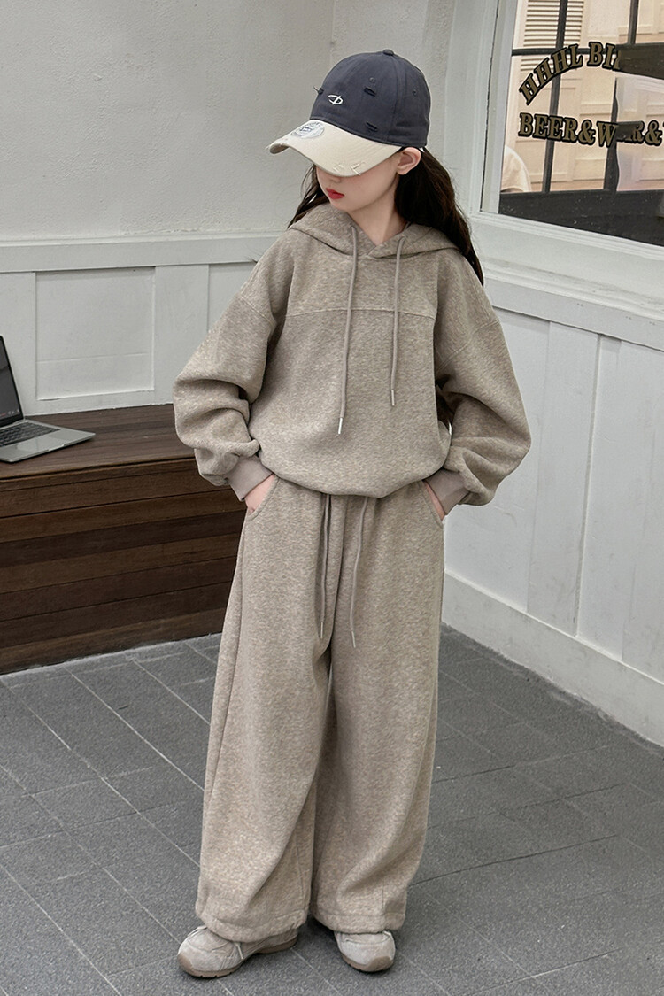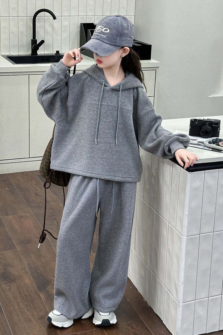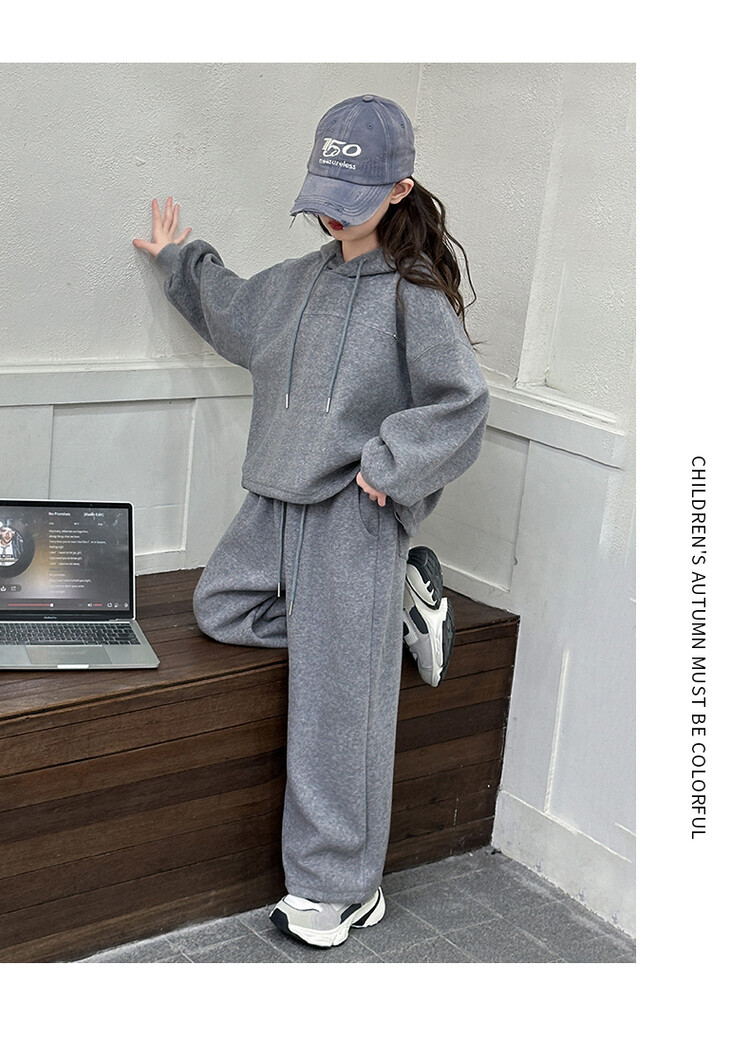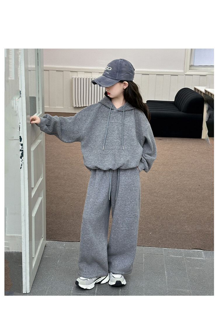 소녀의 캐주얼 양털 세트 후드 스웨트 와이드 레그 팬츠 가을과 겨울 큰 소녀의 유행 스포츠 투피스 유행 세트