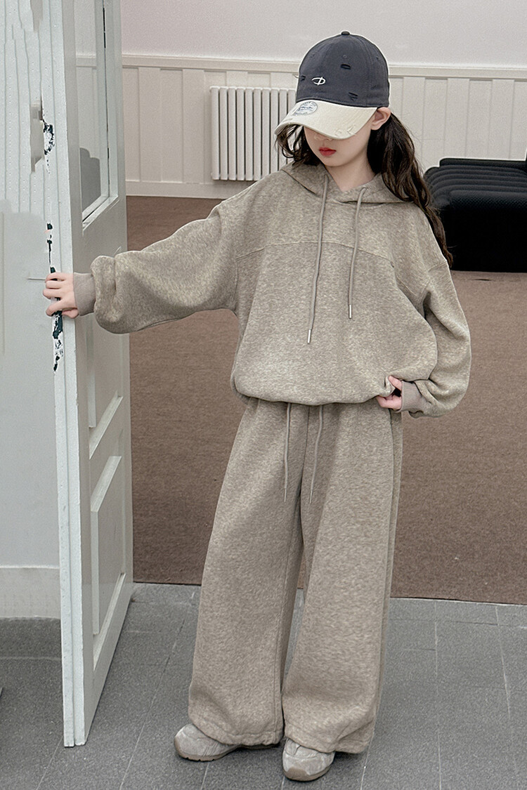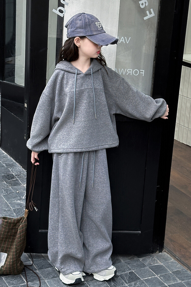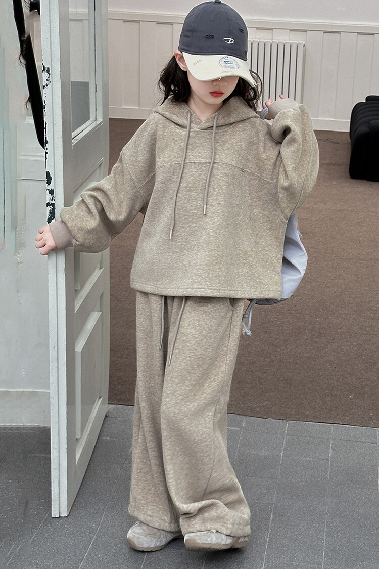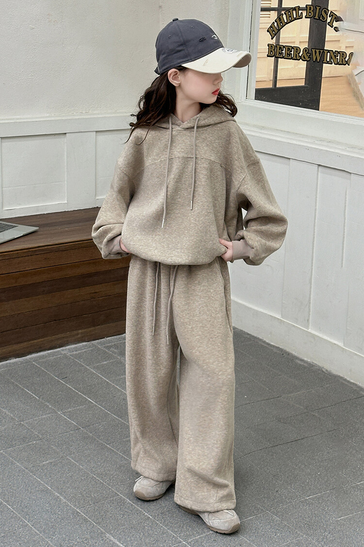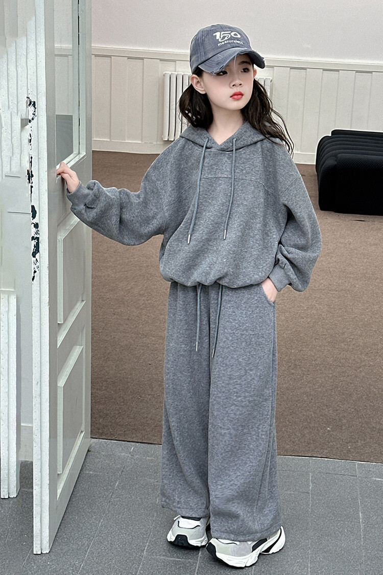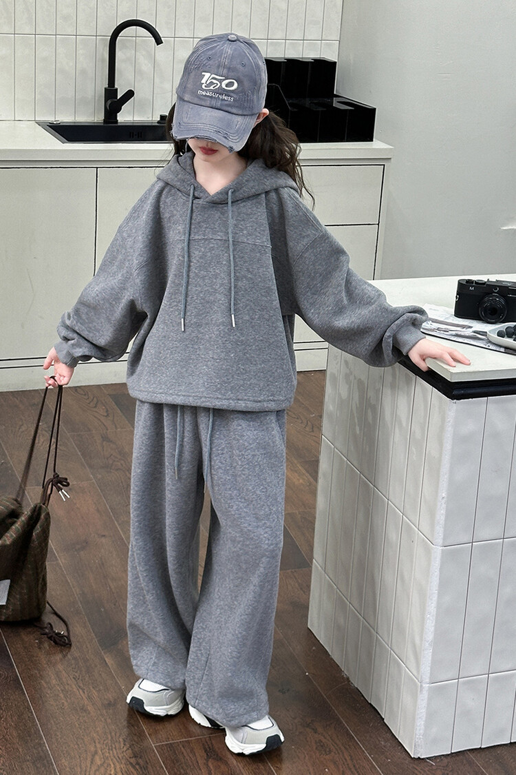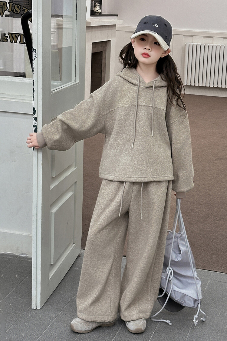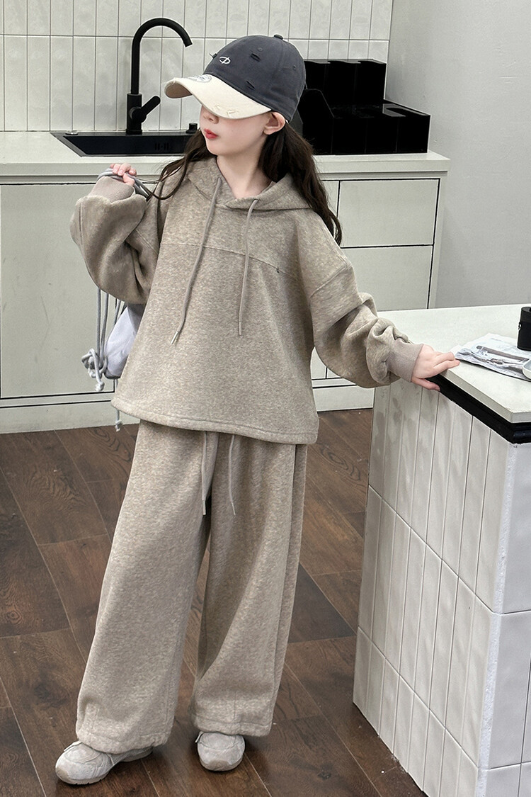 소녀의 캐주얼 양털 세트 후드 스웨트 와이드 레그 팬츠 가을과 겨울 큰 소녀의 유행 스포츠 투피스 유행 세트