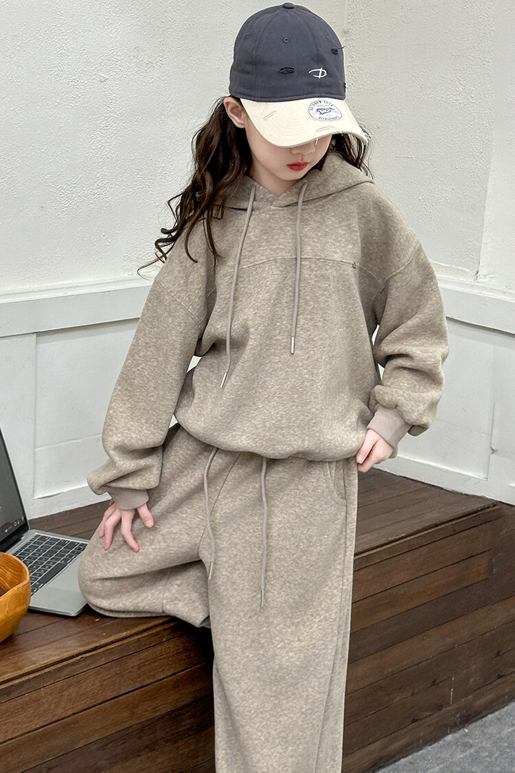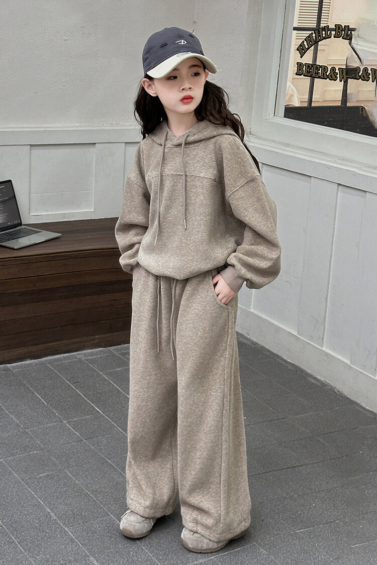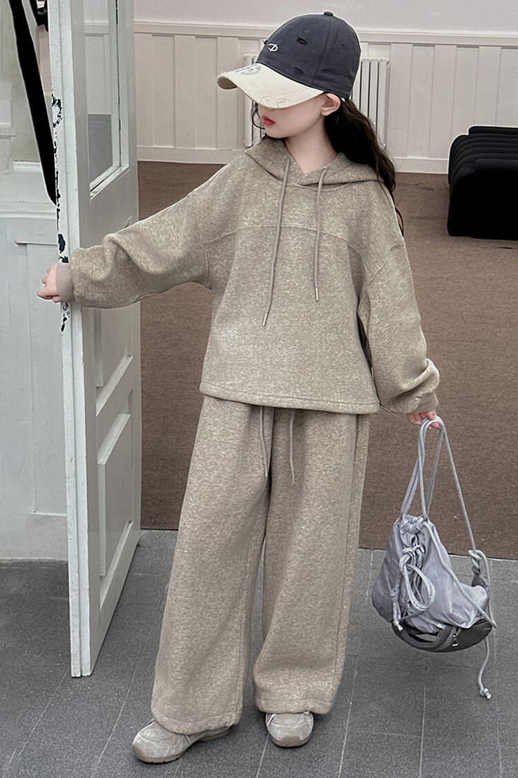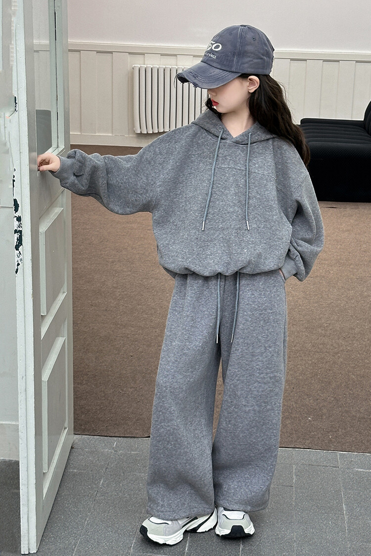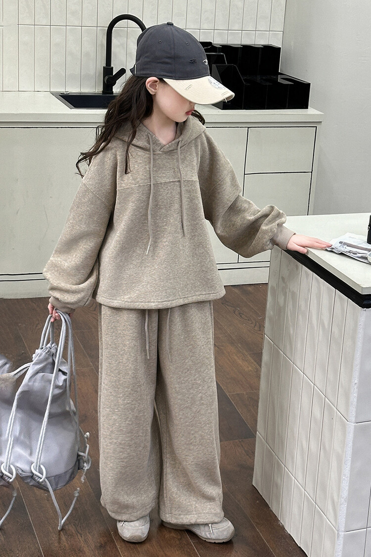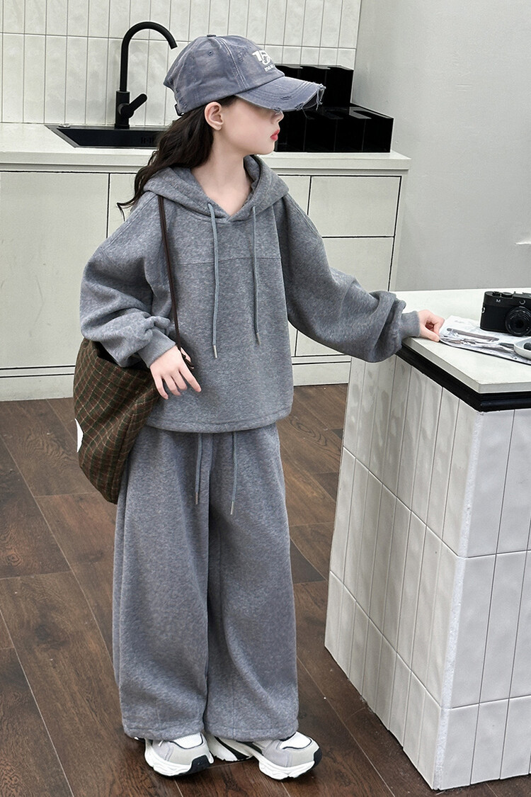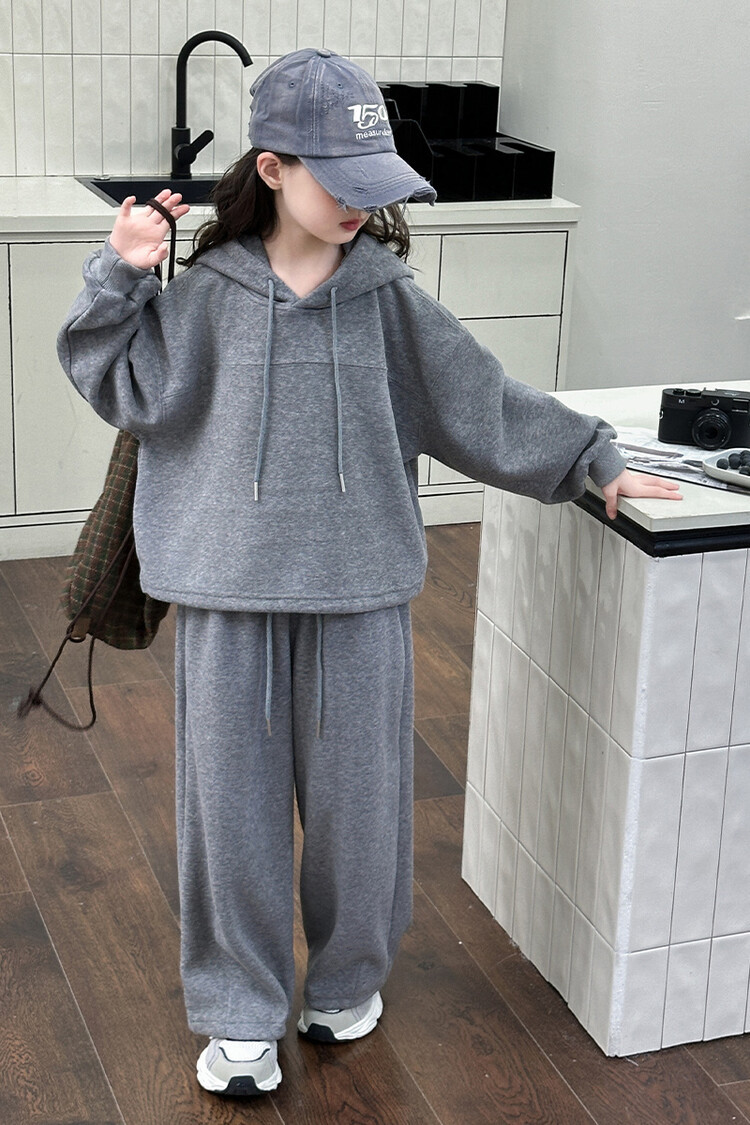 소녀의 캐주얼 양털 세트 후드 스웨트 와이드 레그 팬츠 가을과 겨울 큰 소녀의 유행 스포츠 투피스 유행 세트