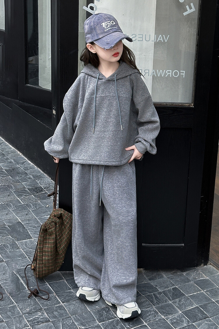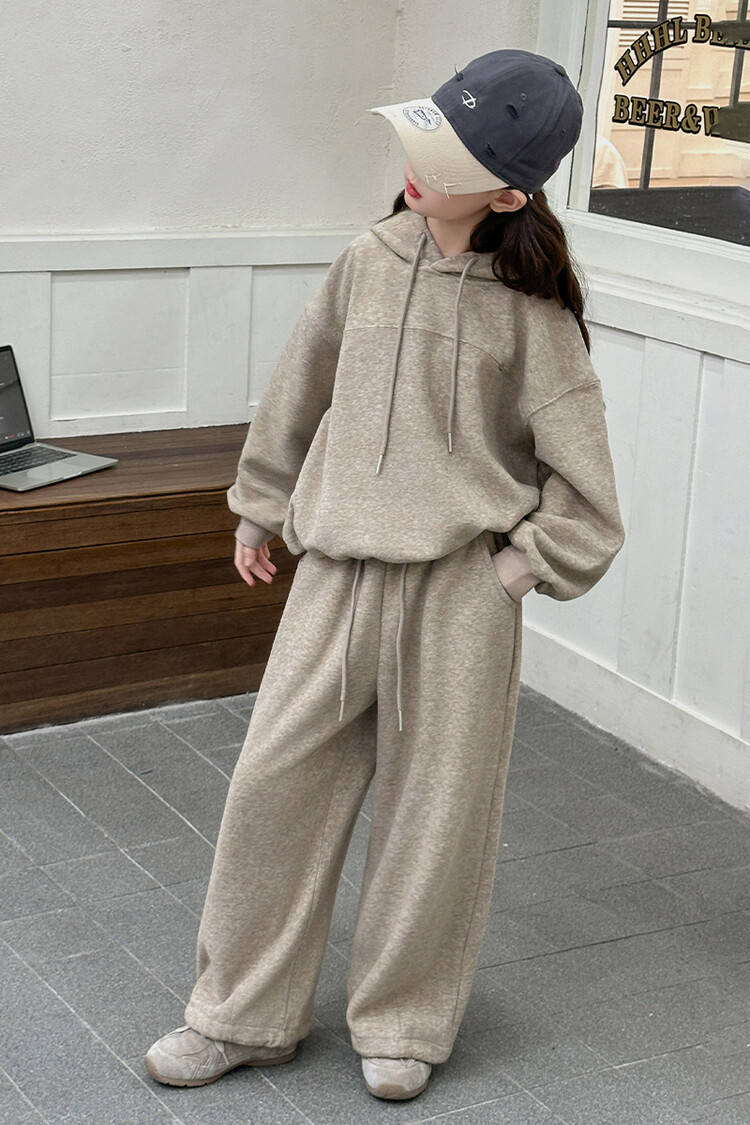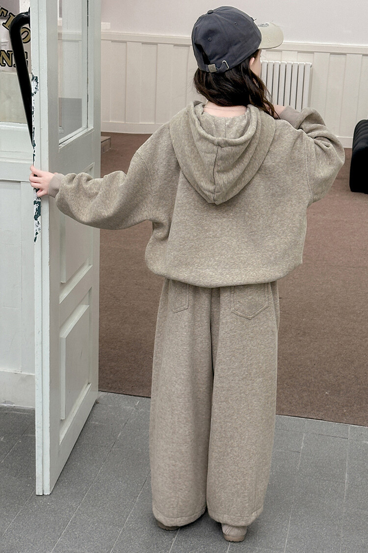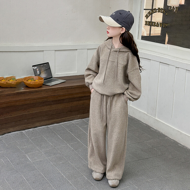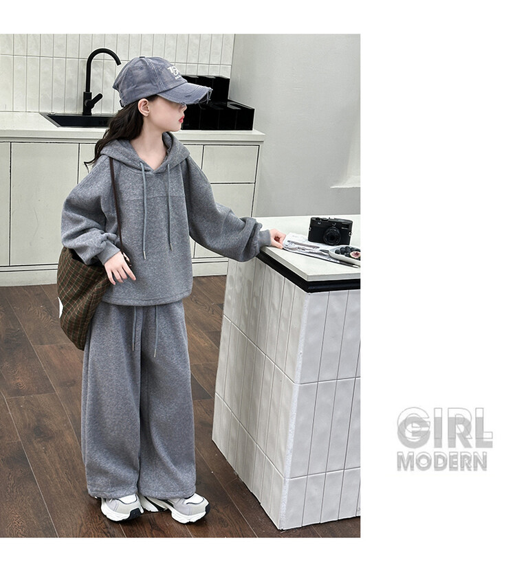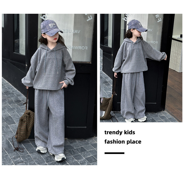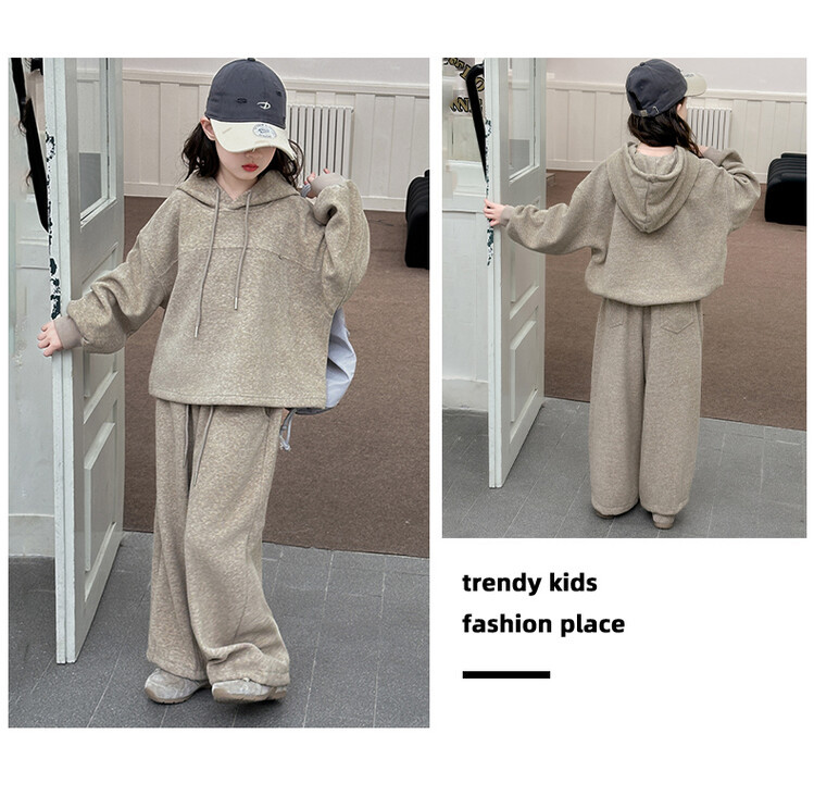 소녀의 캐주얼 양털 세트 후드 스웨트 와이드 레그 팬츠 가을과 겨울 큰 소녀의 유행 스포츠 투피스 유행 세트스토어 가기