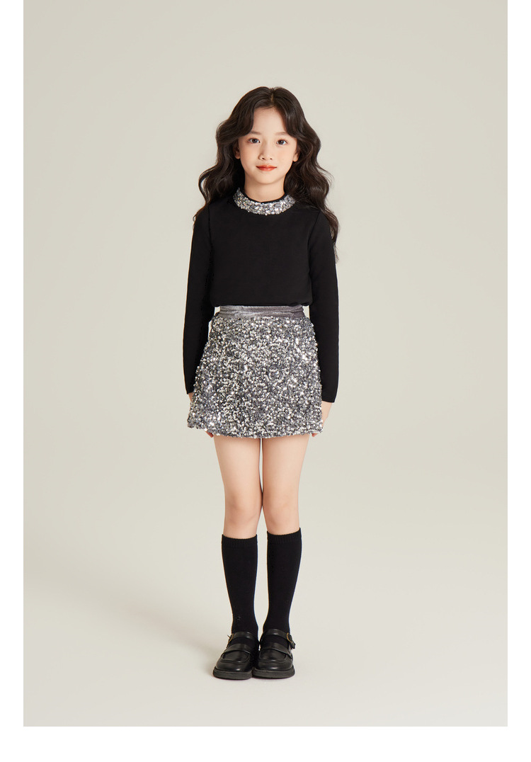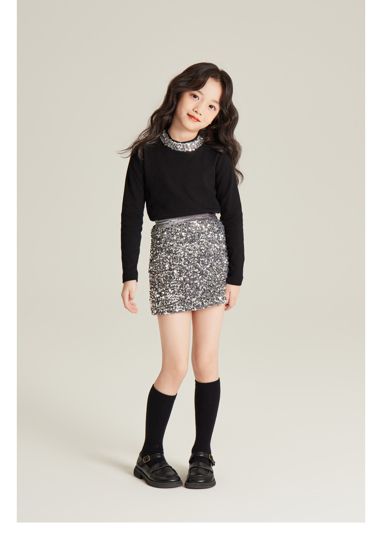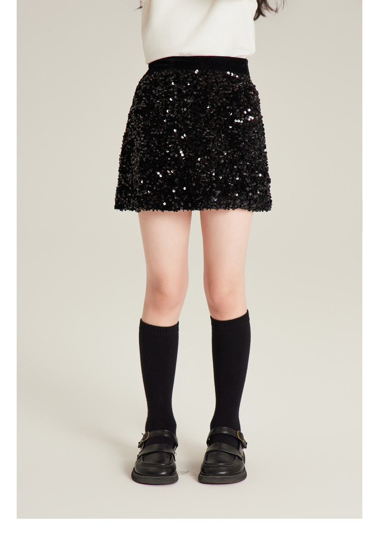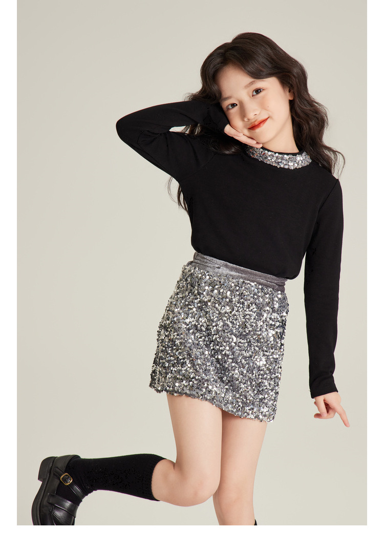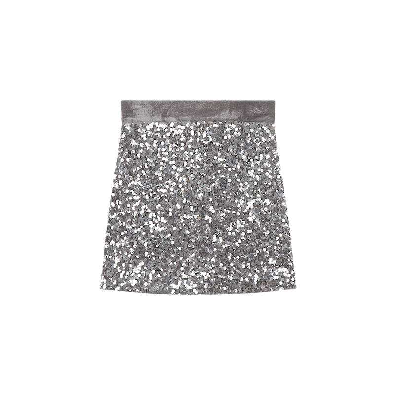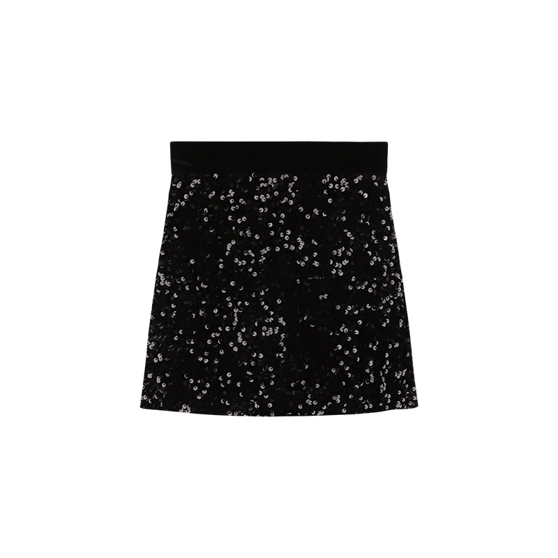 Amybaby 여자 스커트 가을 2024 새로운 패션 벨벳 스팽글 빛나는 엉덩이 스커트 A 라인 스커트