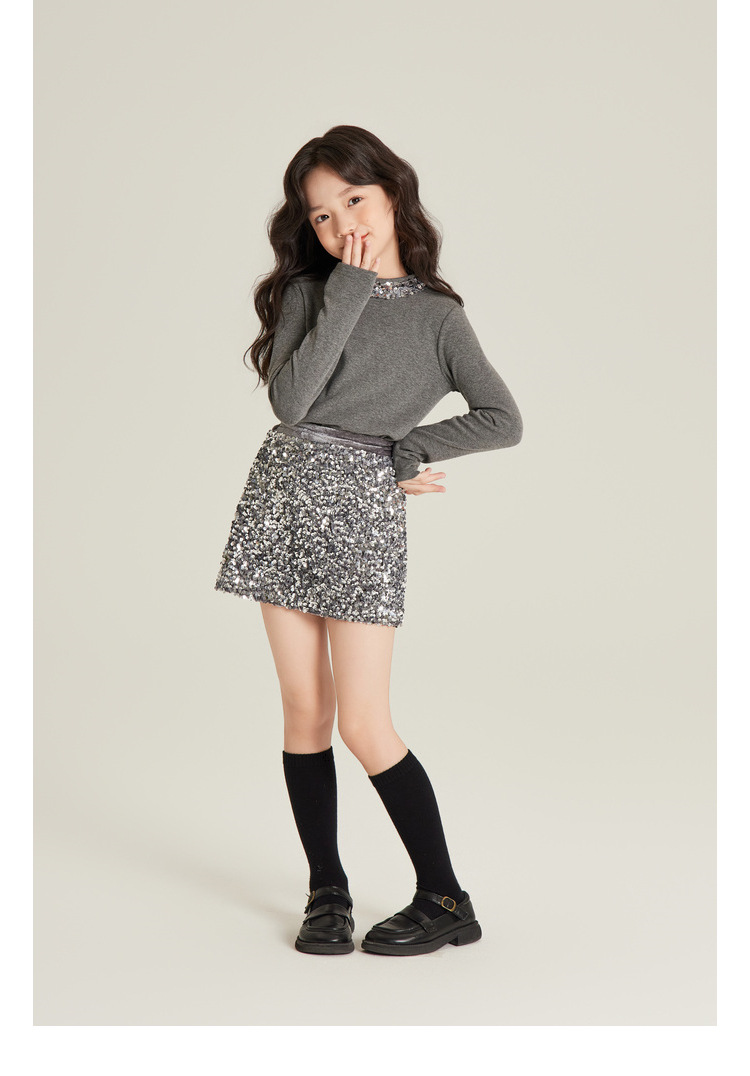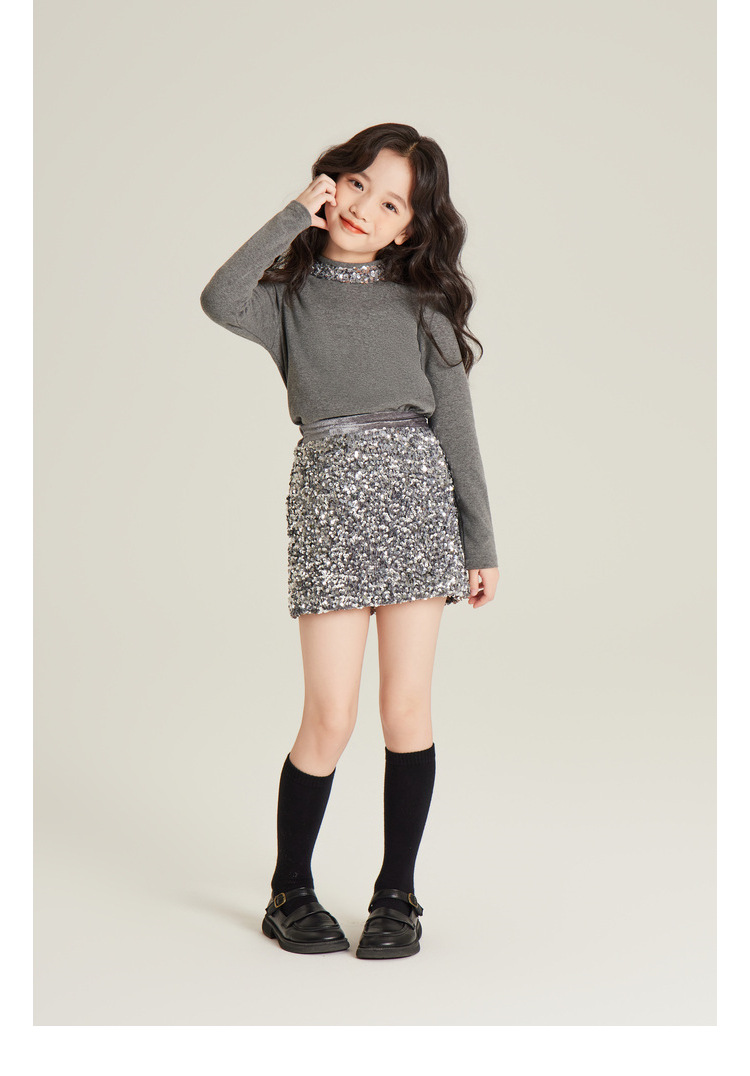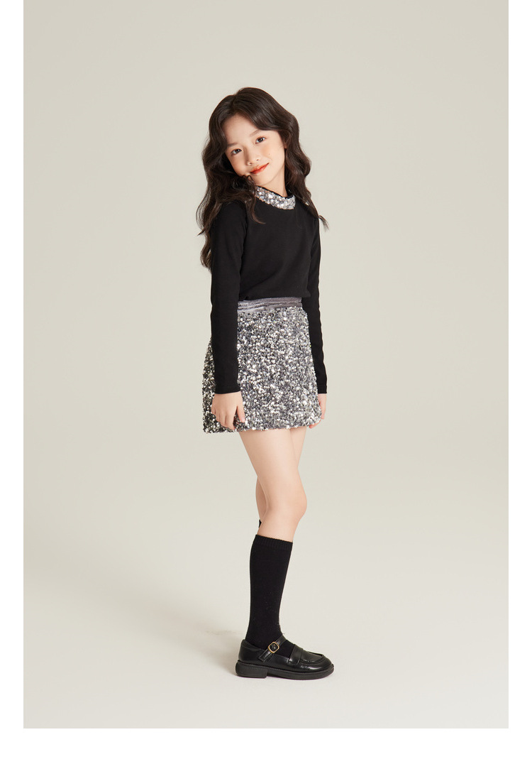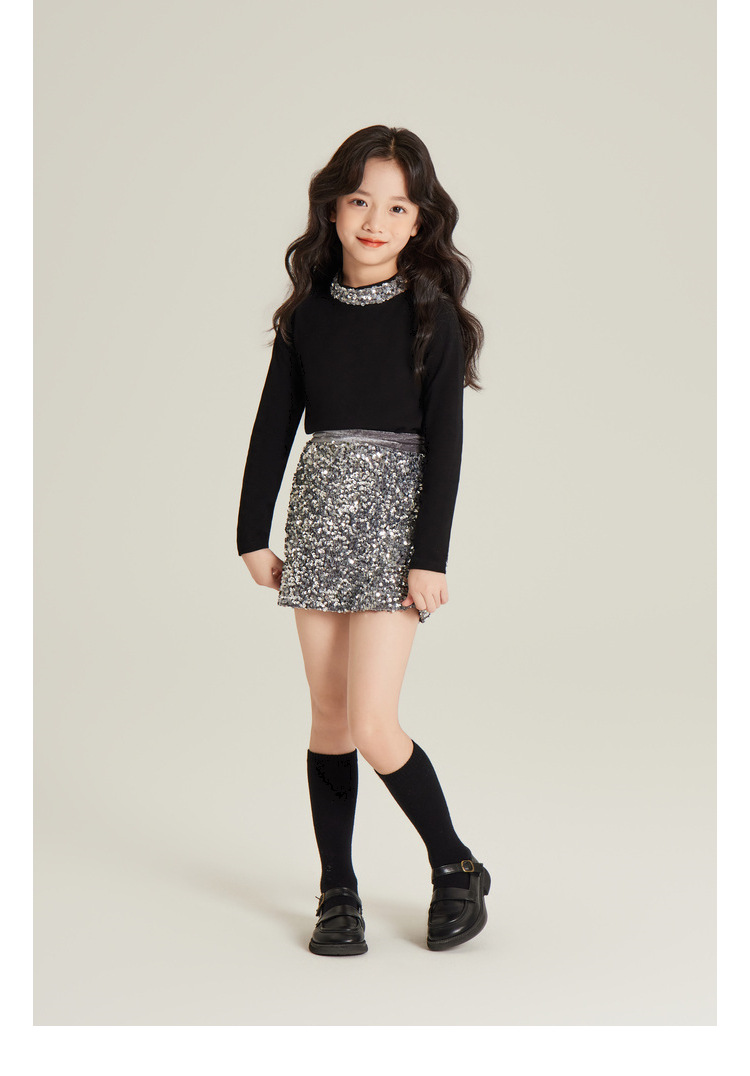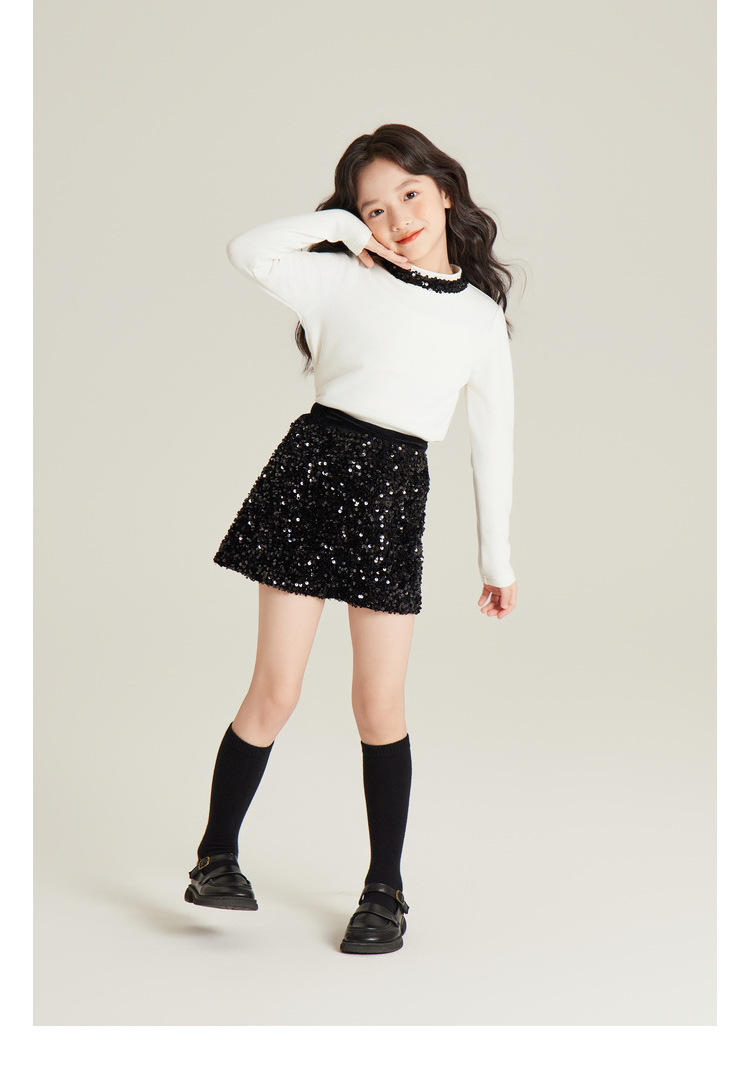 Amybaby 여자 스커트 가을 2024 새로운 패션 벨벳 스팽글 빛나는 엉덩이 스커트 A 라인 스커트