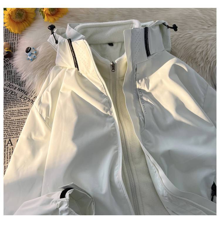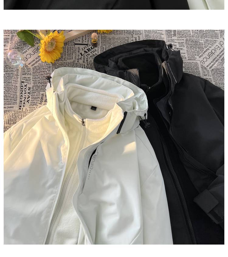 남자 겨울 3 대 1 분리 가능한 야외 코튼 재킷 기모 두꺼운 등산 세트 기능성 스타일 재킷