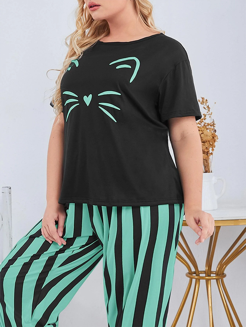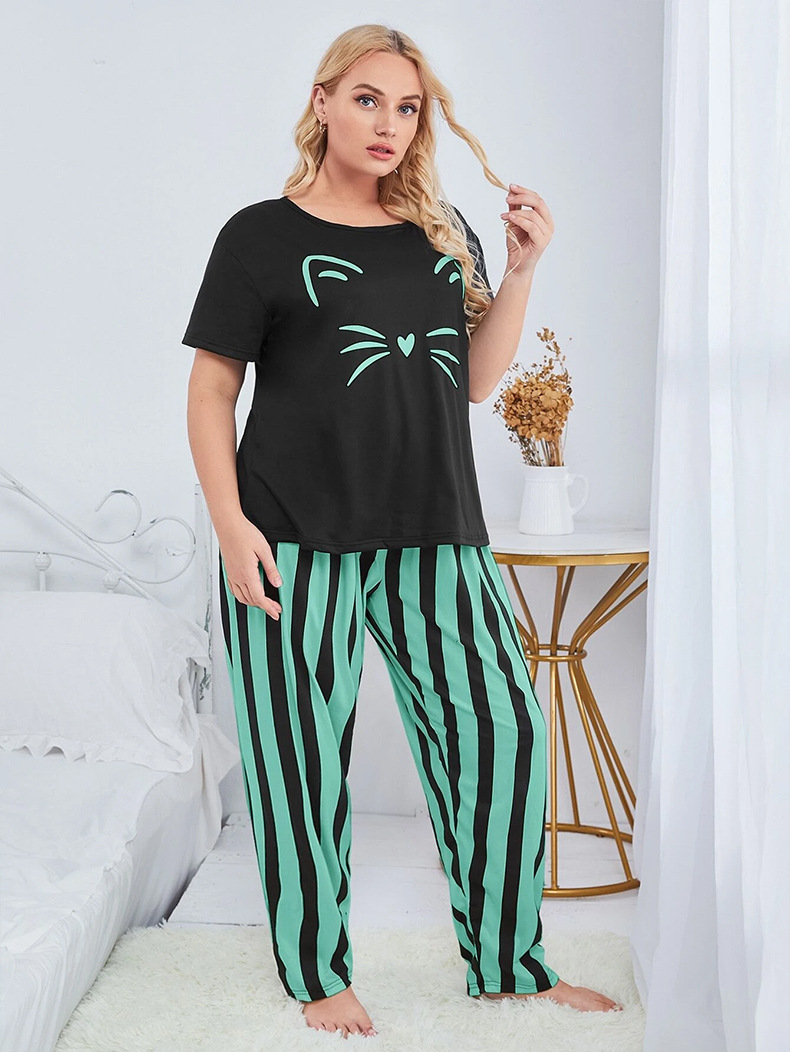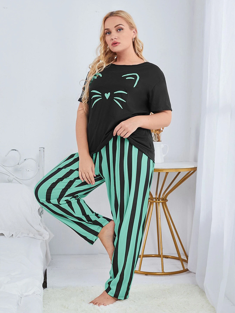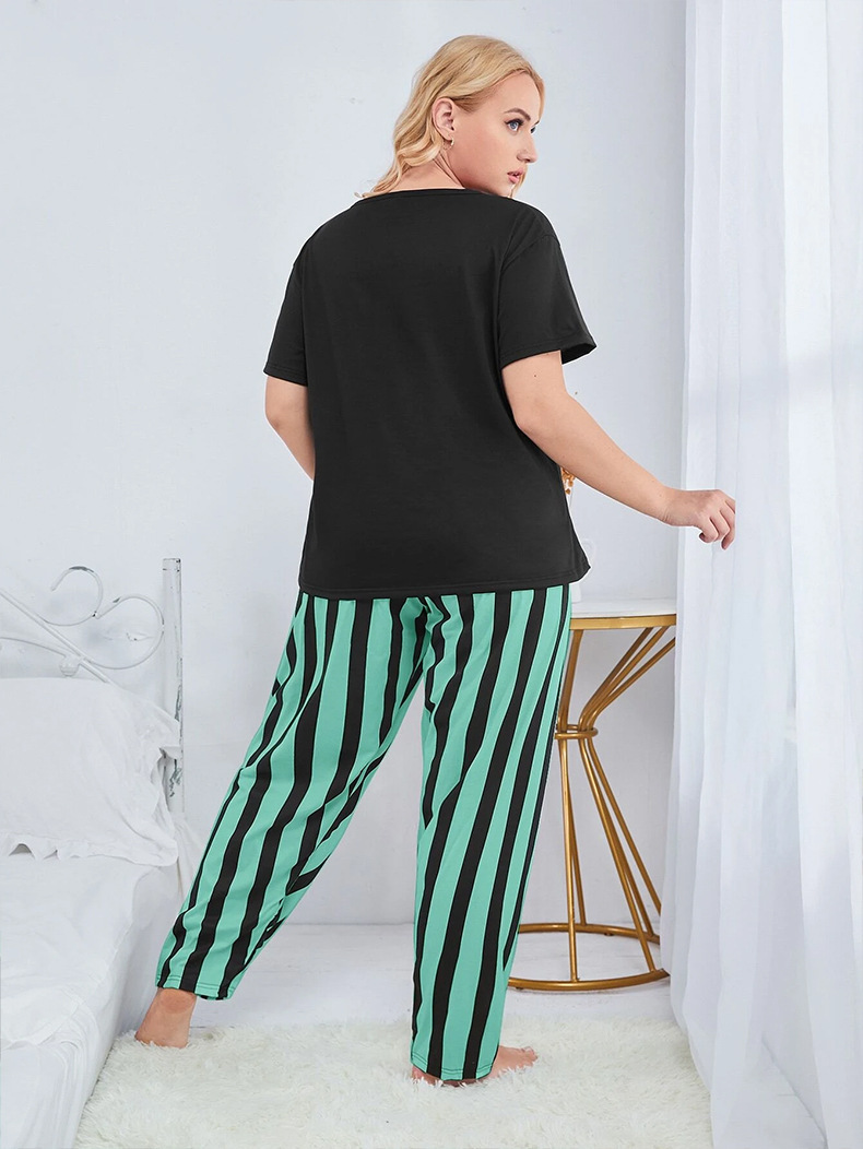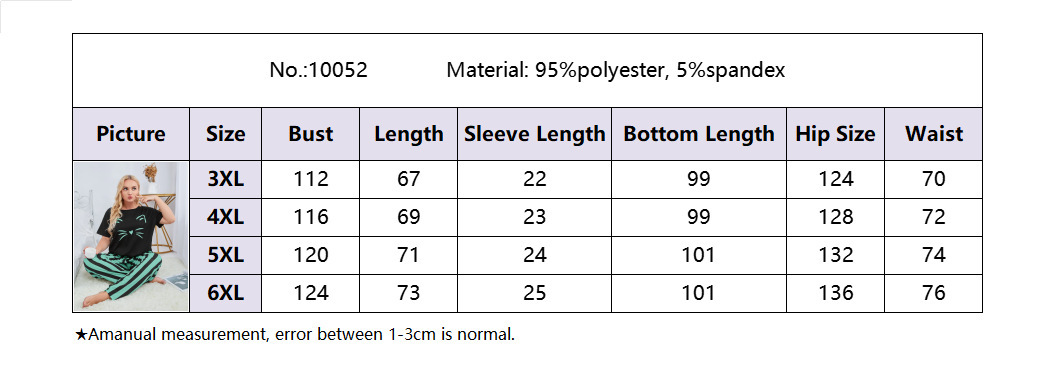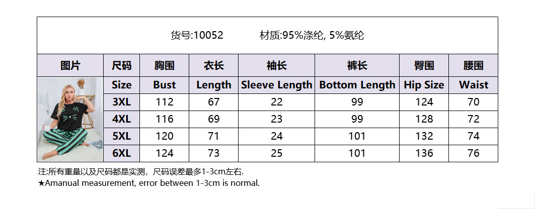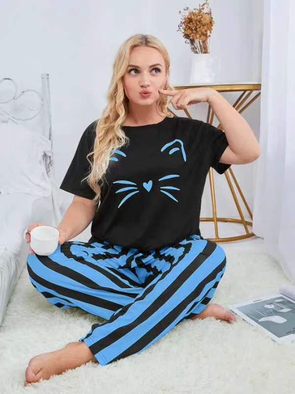 러시아 국경 간 2024 여성용 새 잠옷 플러스 사이즈 워터마크 탑 스트라이프 바지 홈웨어