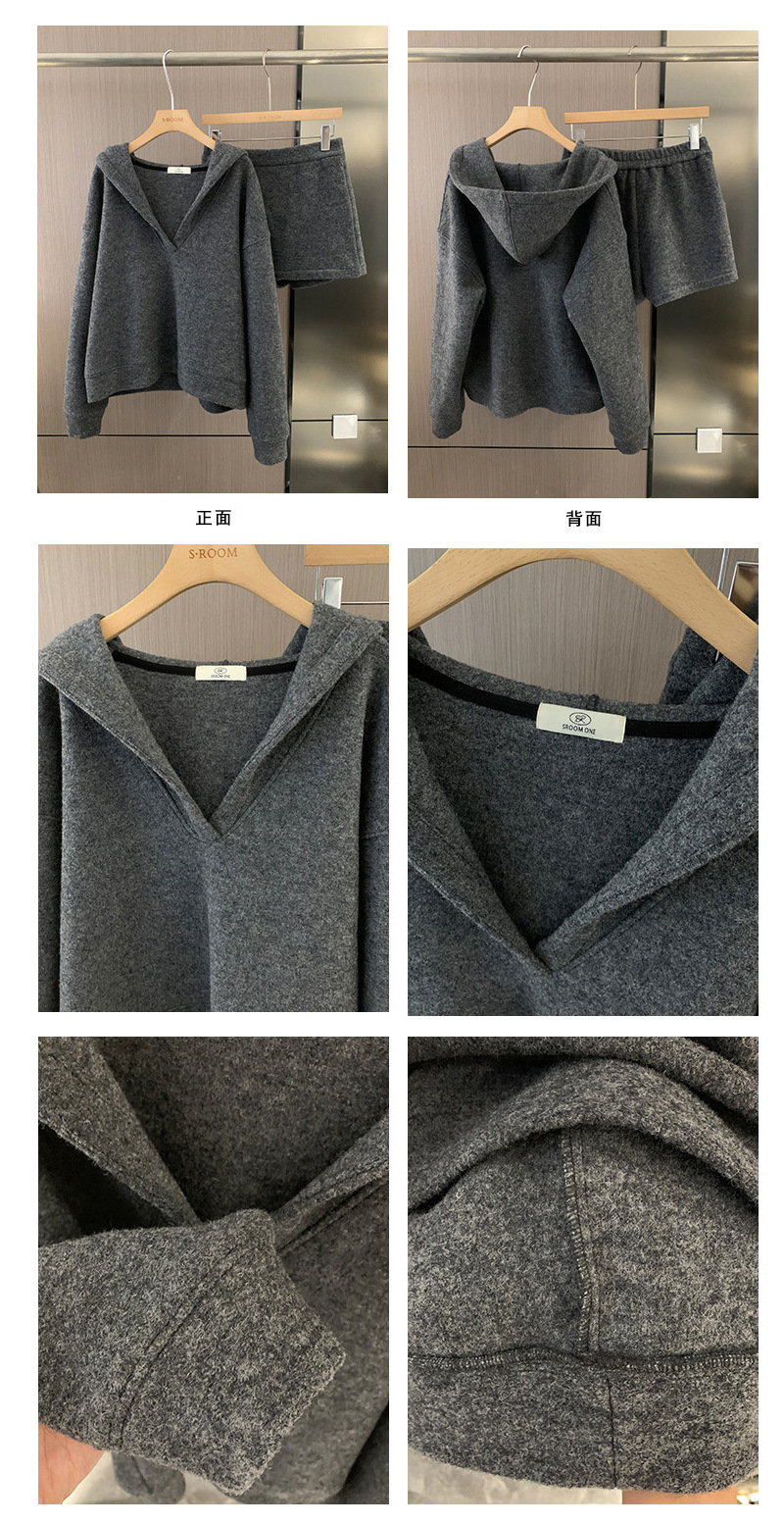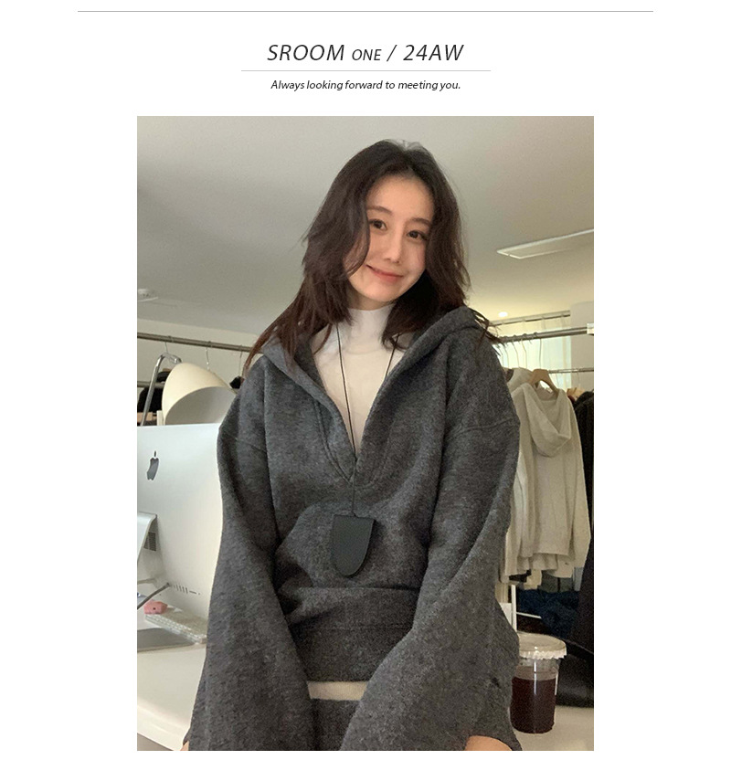 SROOM 13 라인 여성용 게으른 느슨한 V 넥 모직 원피스 24 가을과 겨울 우아한 울 바지 스커트 투피스 세트스토어 가기