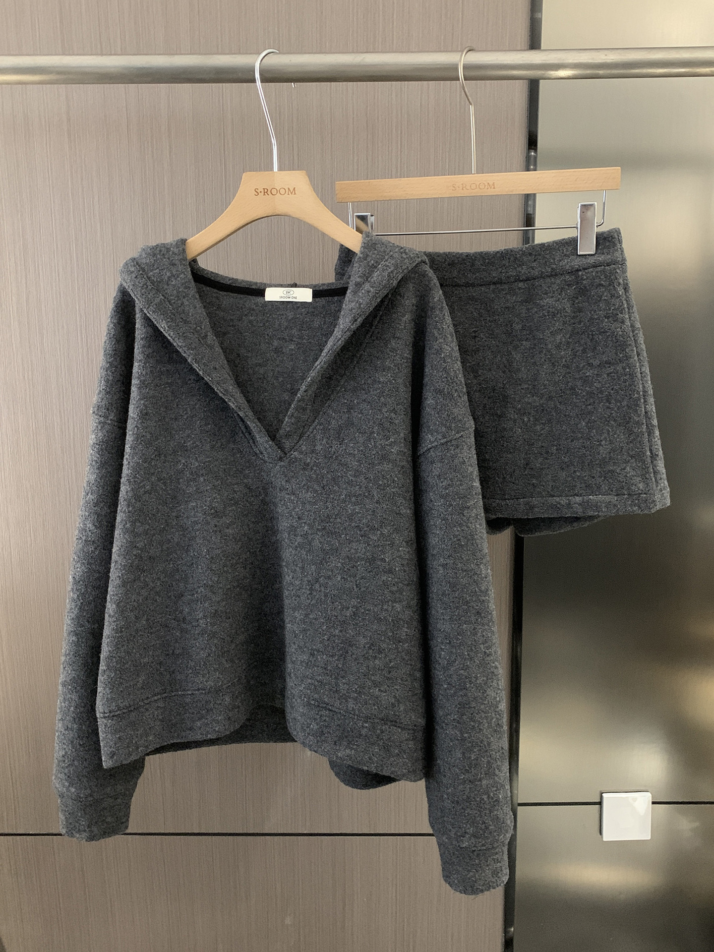 SROOM 13 라인 여성용 게으른 느슨한 V 넥 모직 원피스 24 가을과 겨울 우아한 울 바지 스커트 투피스 세트