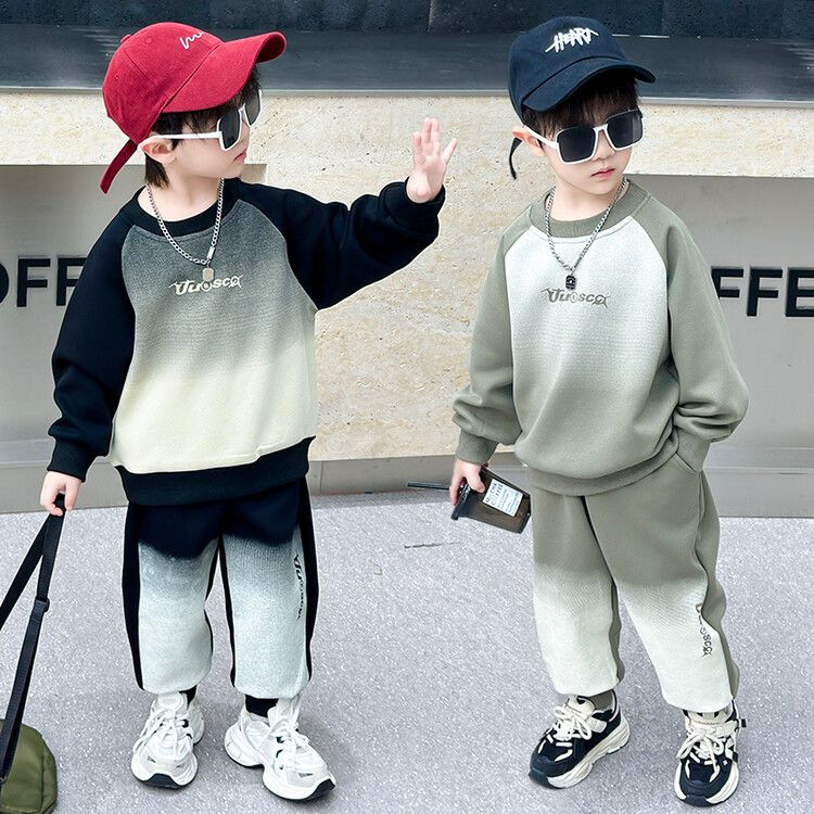 소년 스포츠 세트 봄과 가을 2024 새로운 소년의 멋진 잘 생긴 운동복 투피스 어린이 가을 운동복스토어 가기