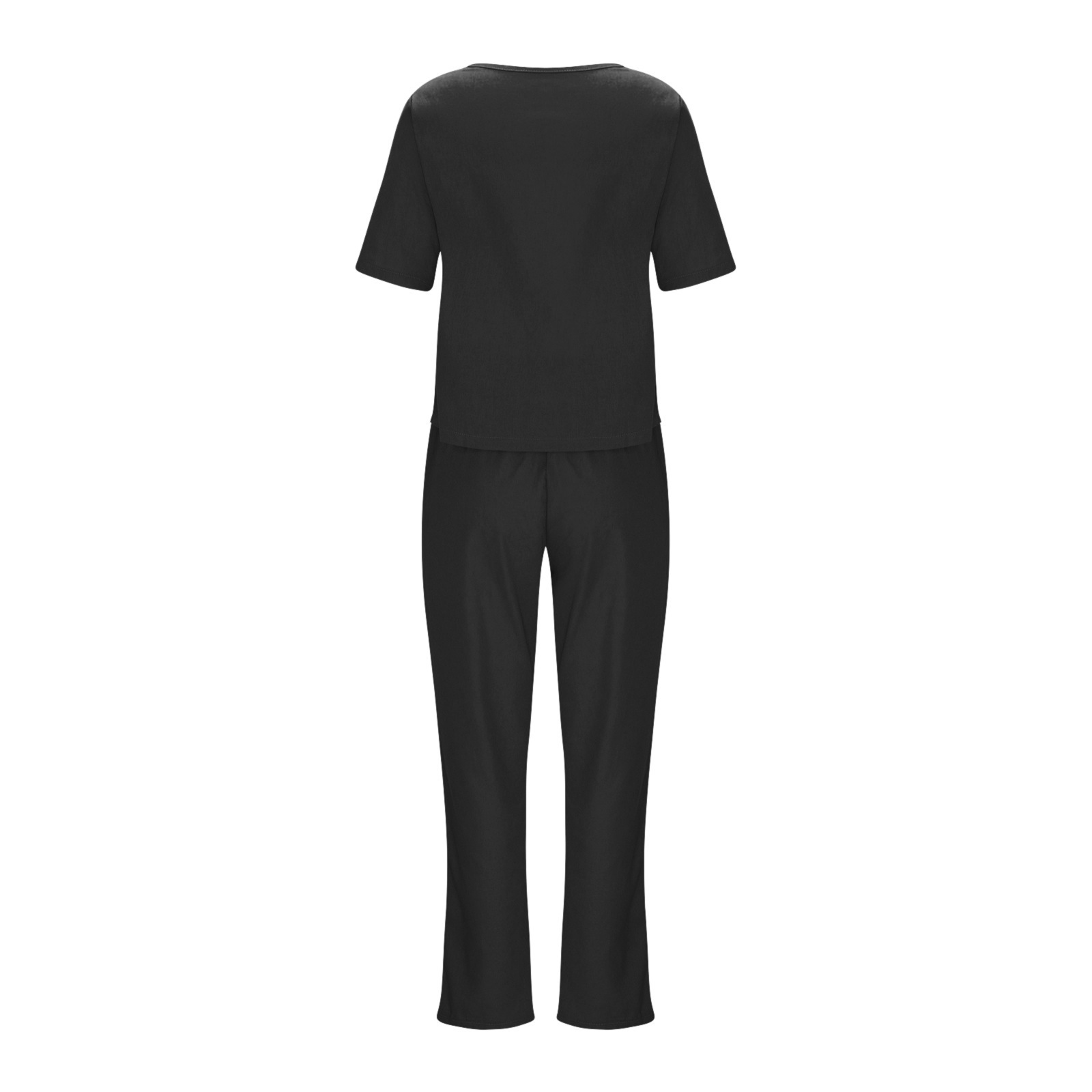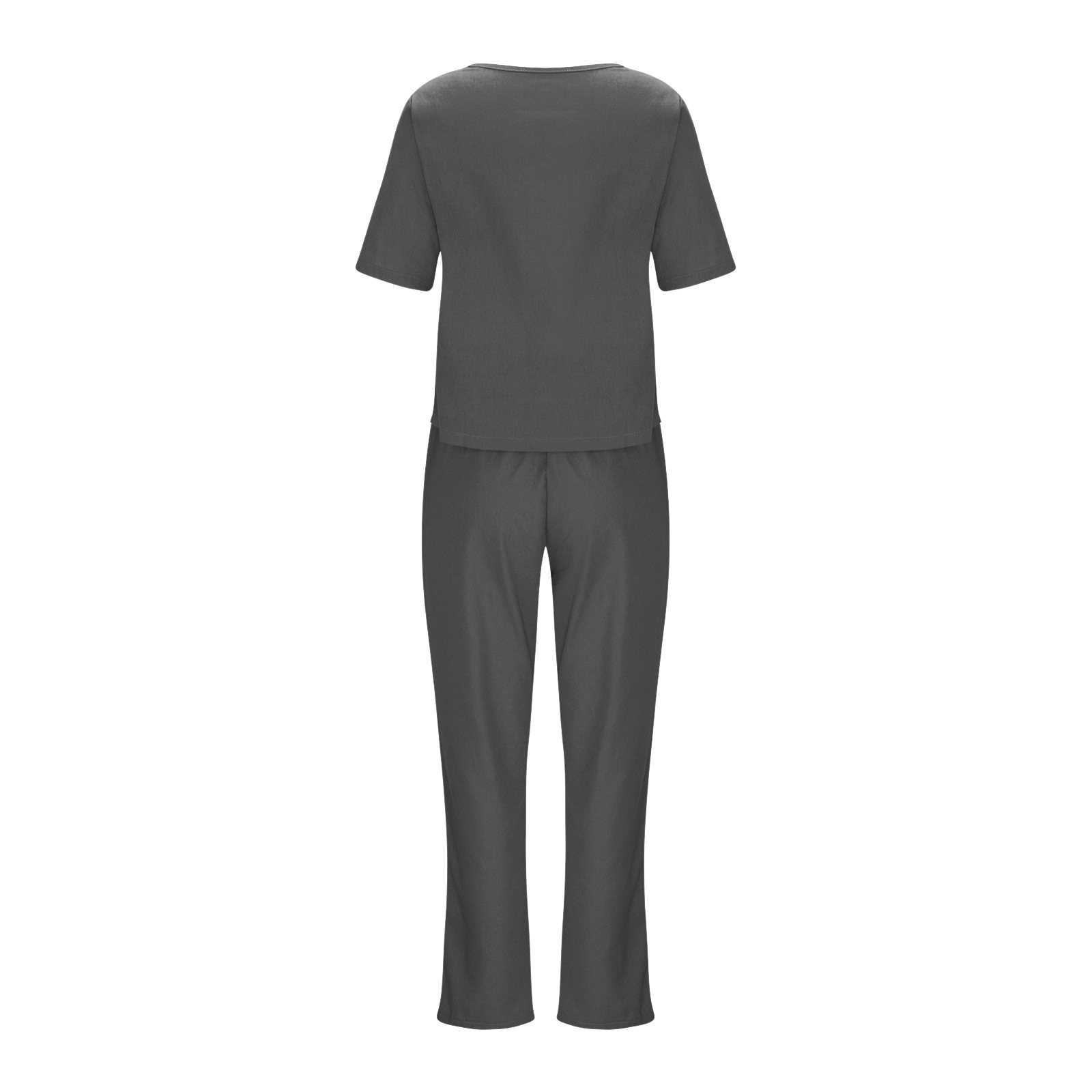 국경을 넘나 드는 유럽과 미국의 여성면 및 린넨 여름 세트 반 소매 O 칼라 슈퍼 대형 블라우스 e 넓은 다리 바지 복고풍 세트 홈 의류