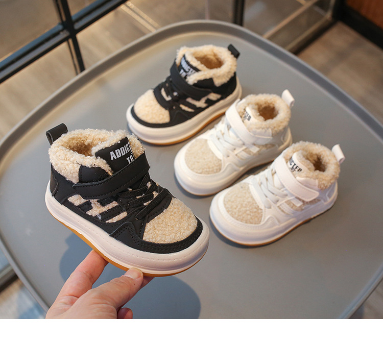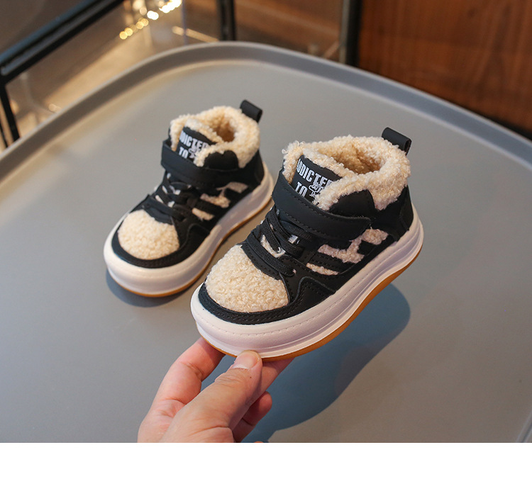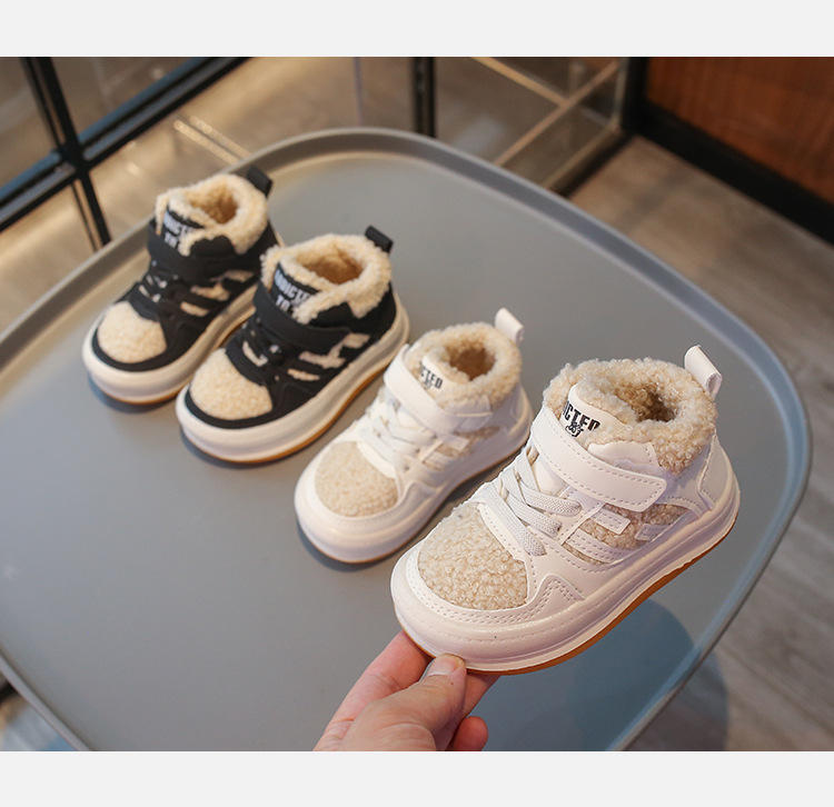 소년 소녀를위한 2024 겨울 따뜻한 운동화 아기 소녀 솔리드 컬러 코튼 로우 탑 캐주얼 유아 신발 폭발