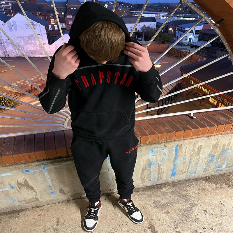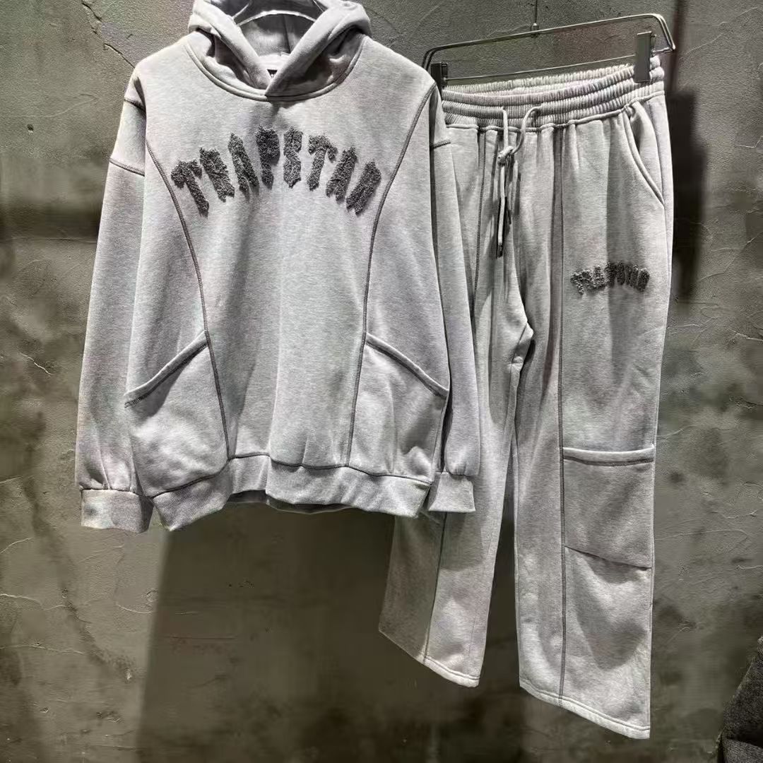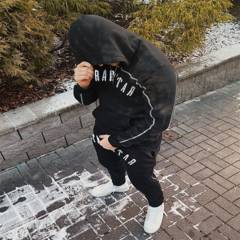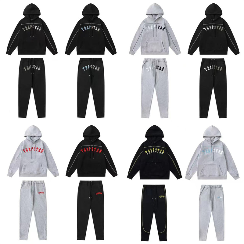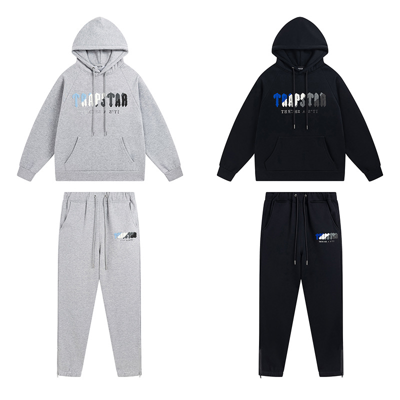 광주 도매 Trapstar 그라디언트 편지 위장 수건 자수 기모 후드 스웨터 바지 캐주얼 세트스토어 가기