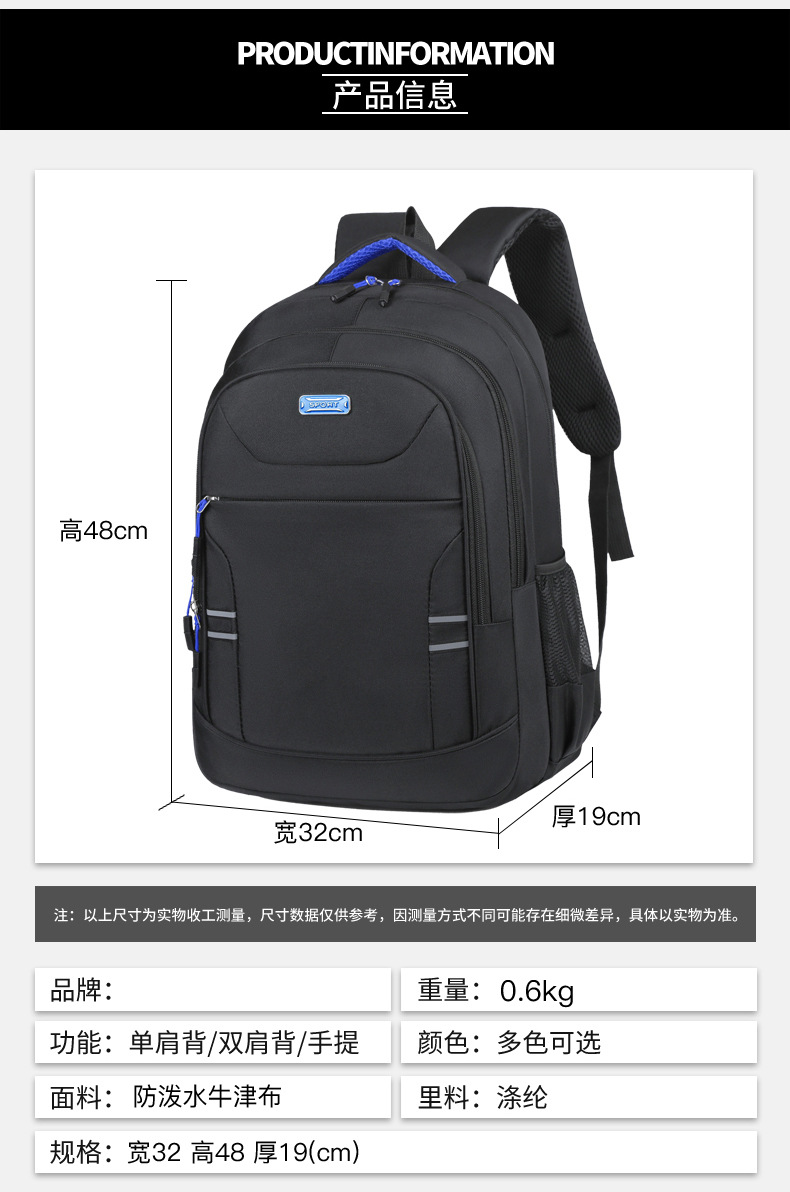 국경 간 배낭 패션 중학교 고등학교 고등학생 옥스포드 헝겊 Schoolbag 대용량 여행 배낭 컴퓨터 배낭