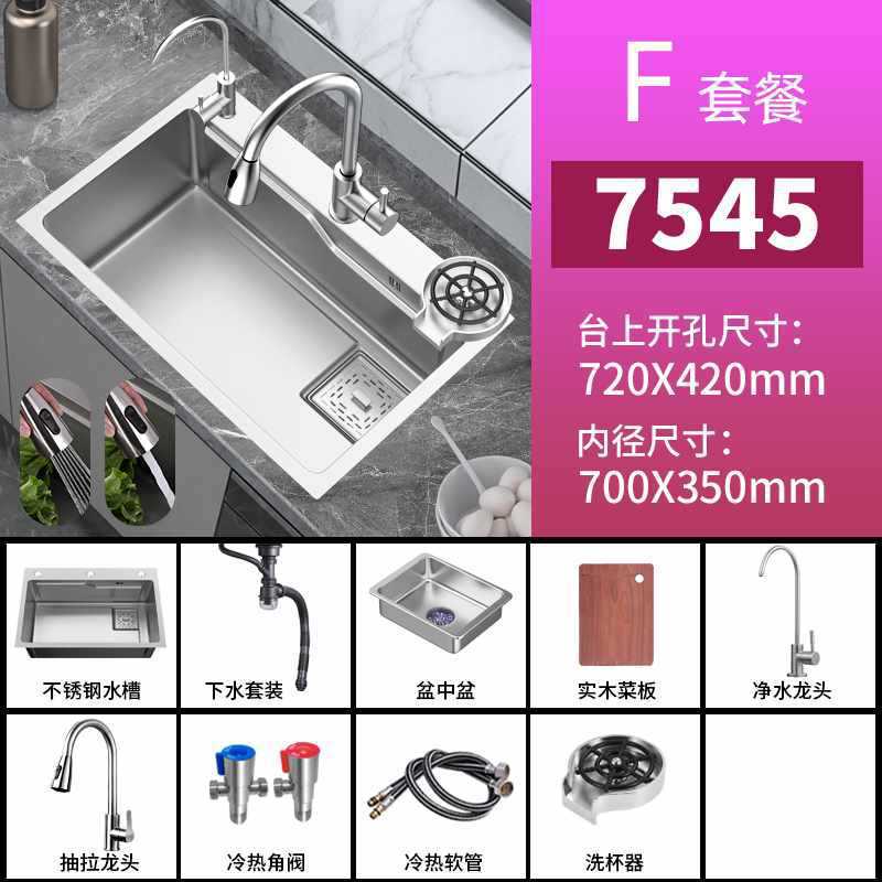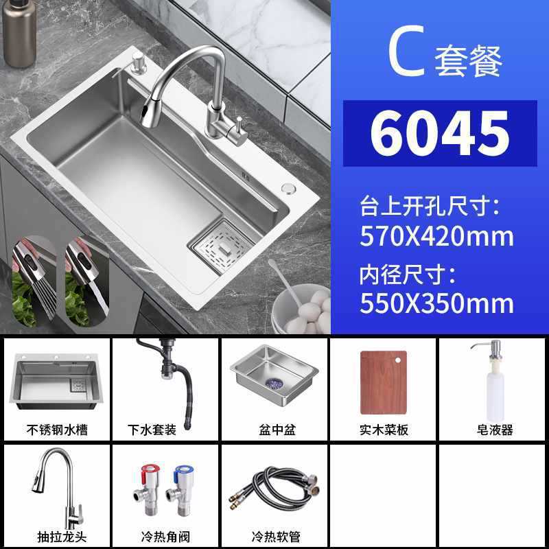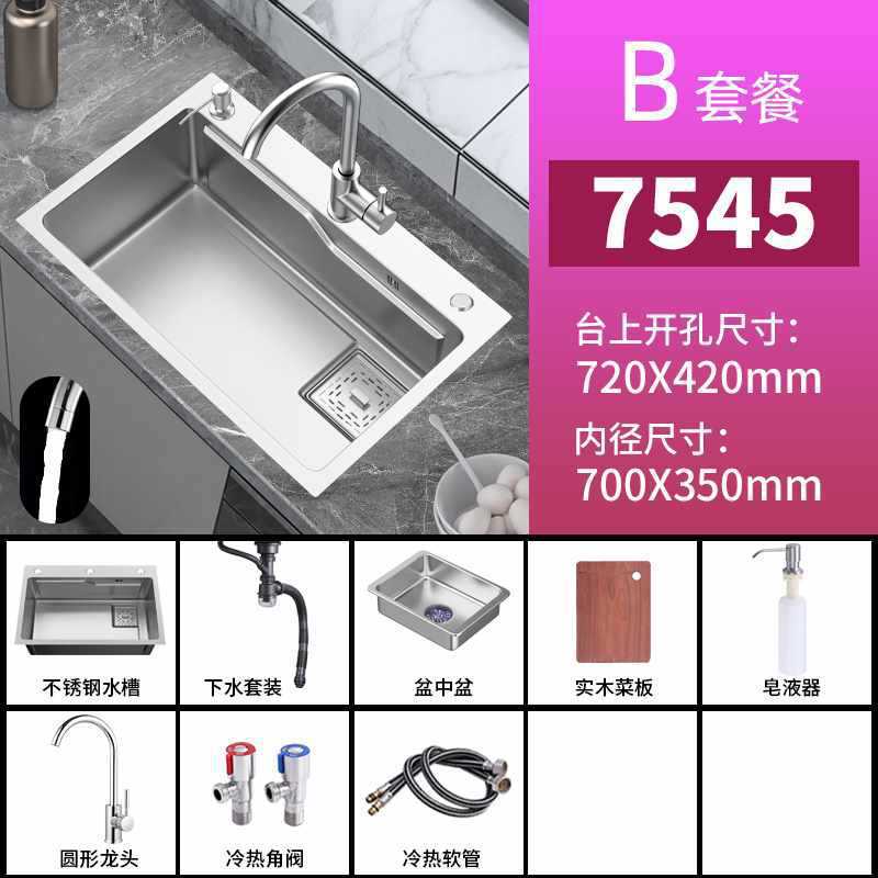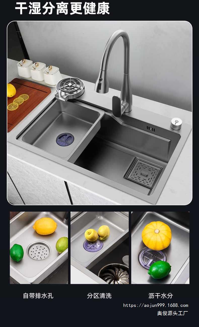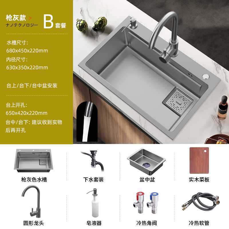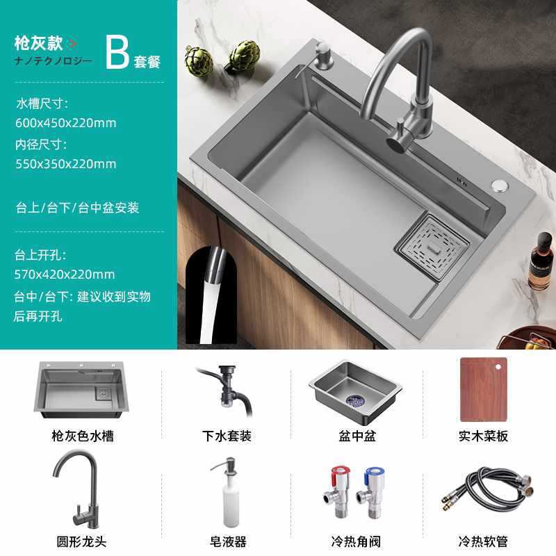 총 회색 SUS304 스테인레스 스틸 나노 주방 싱크 손 비행 비 큰 단일 싱크 폭포 야채 싱크 싱크스토어 가기
