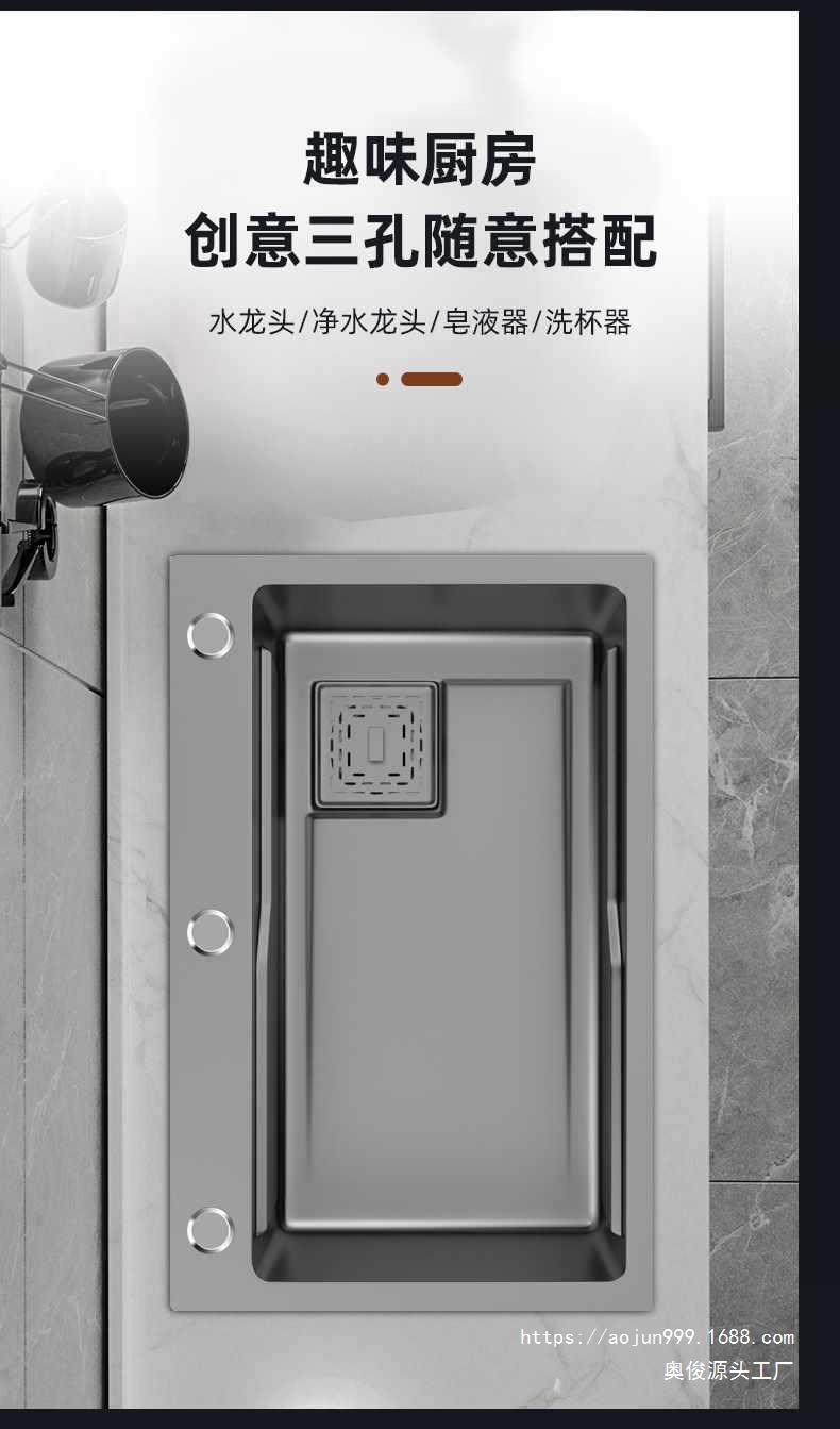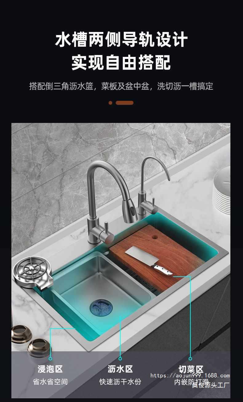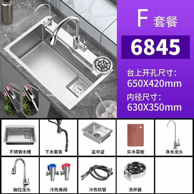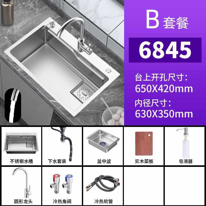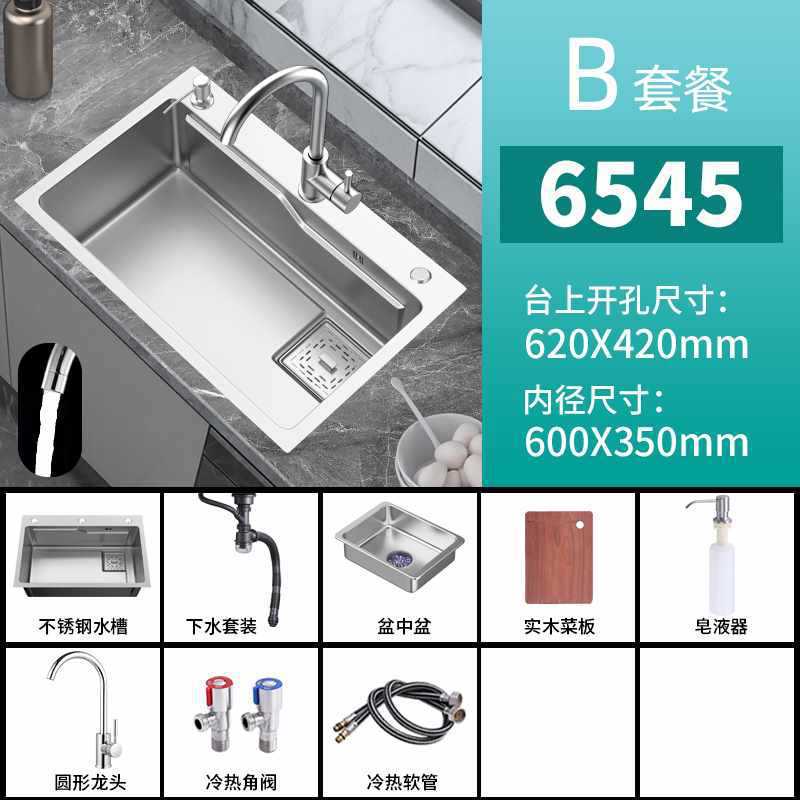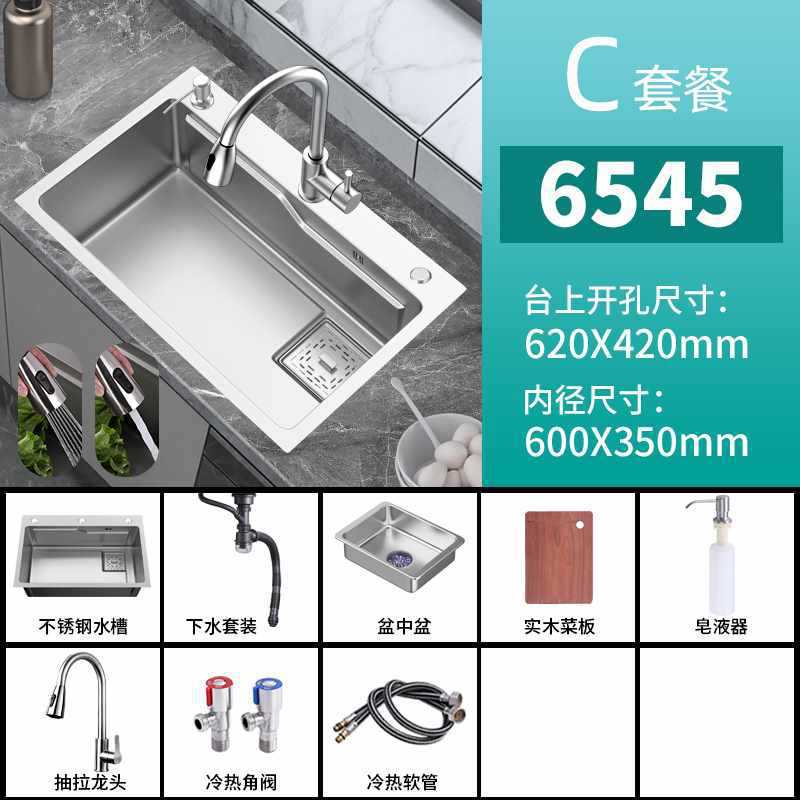 총 회색 SUS304 스테인레스 스틸 나노 주방 싱크 손 비행 비 큰 단일 싱크 폭포 야채 싱크 싱크스토어 가기