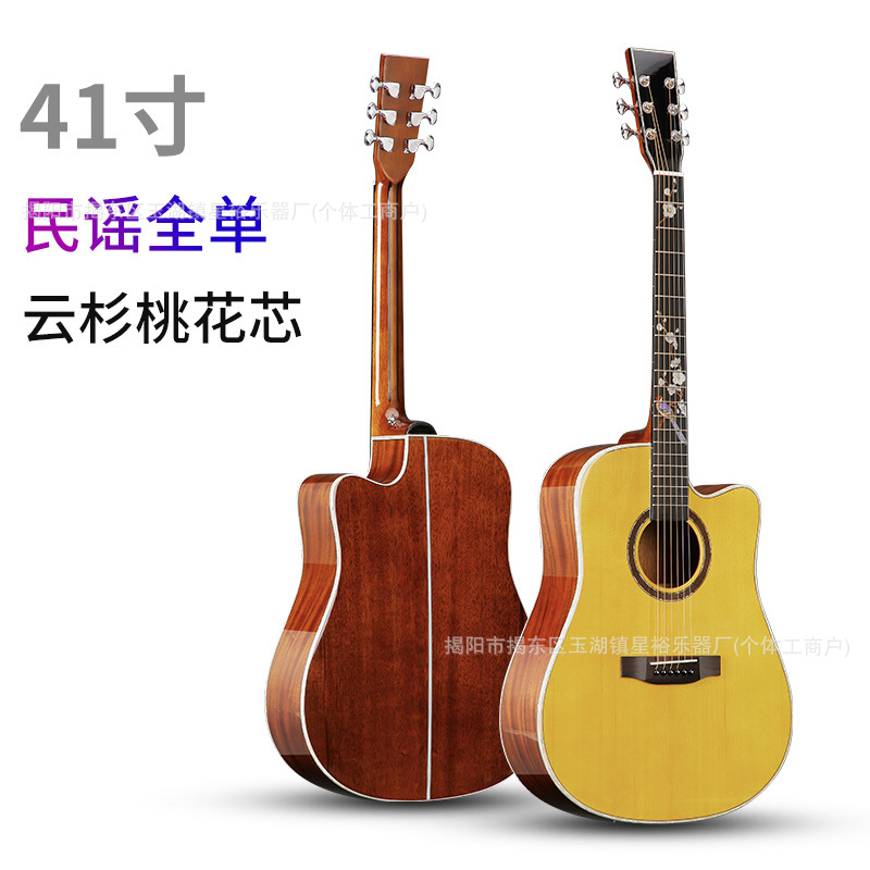 41 인치 가문비 나무 복숭아 꽃 심장 전체 단일 민속 어쿠스틱 기타 어쿠스틱 전기 상자 및 진동 공장 도매 까치 조각 꽃